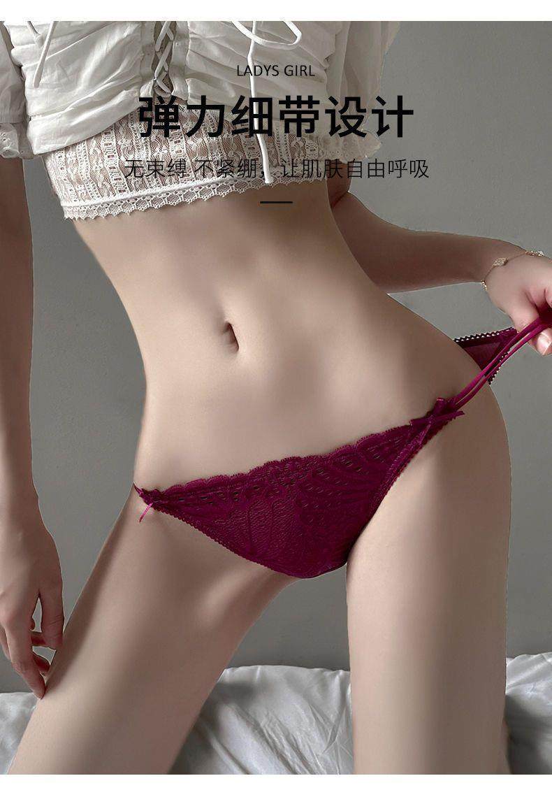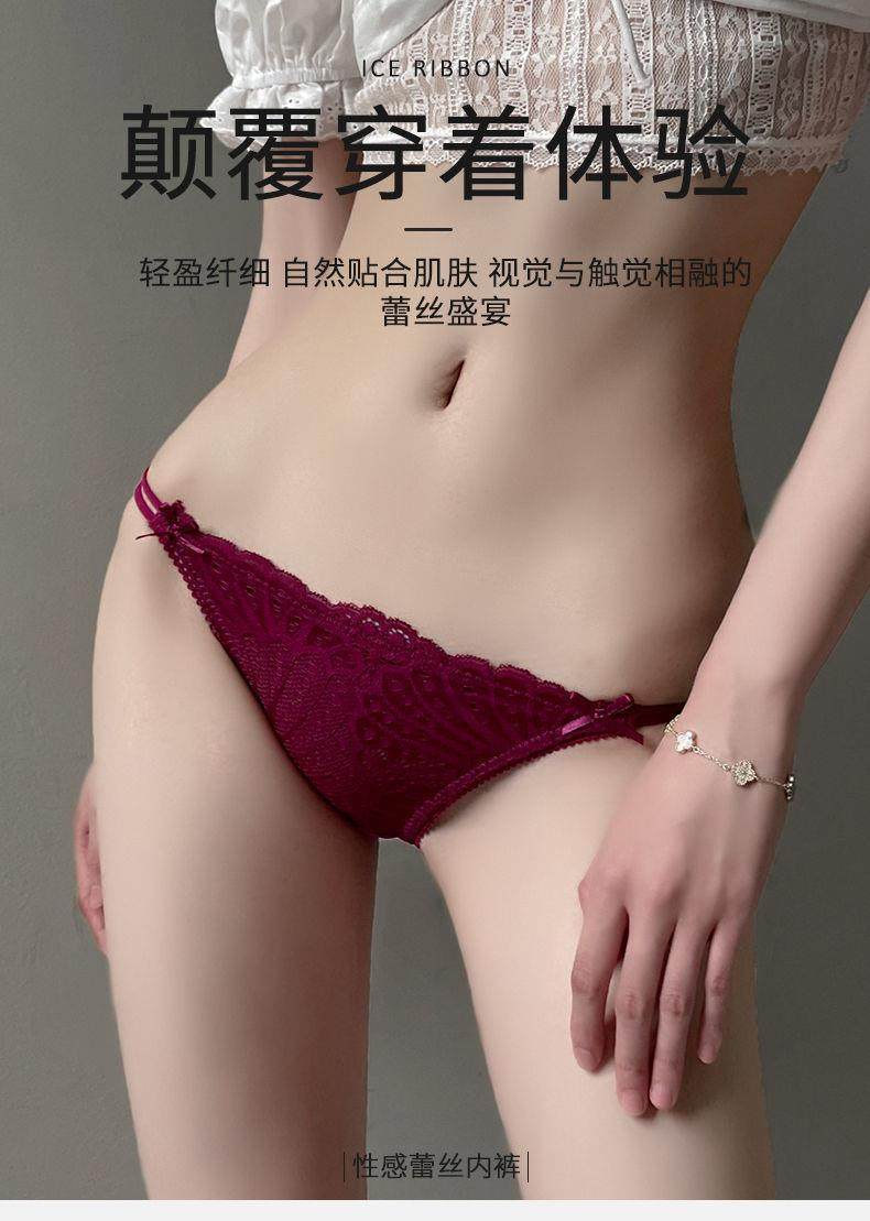 Sexy Lace Panties for Women, Pure Cotton Crotch, Young Ladies, Red, Zodiac Year, Mid-Low Waist, Ice Silk, Seamless, Thin, Triangle Style for Women