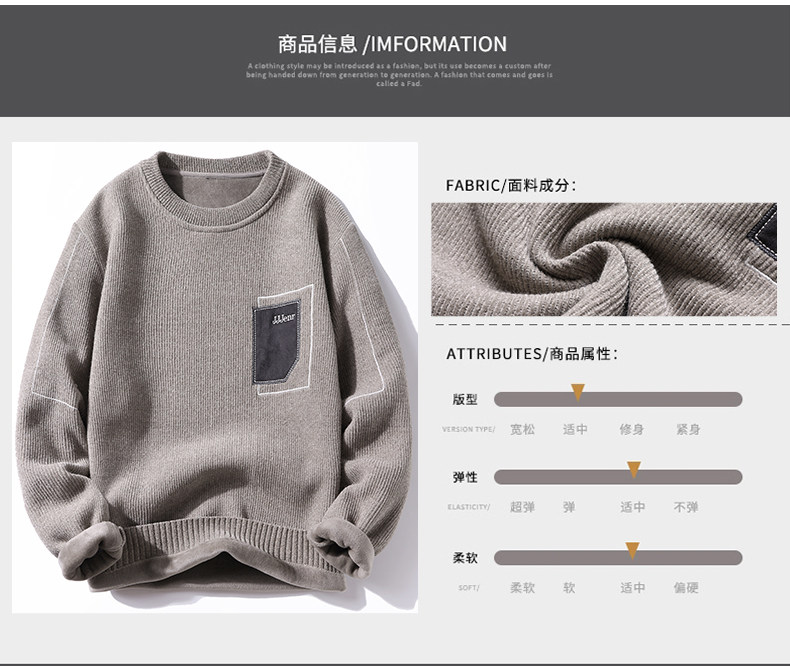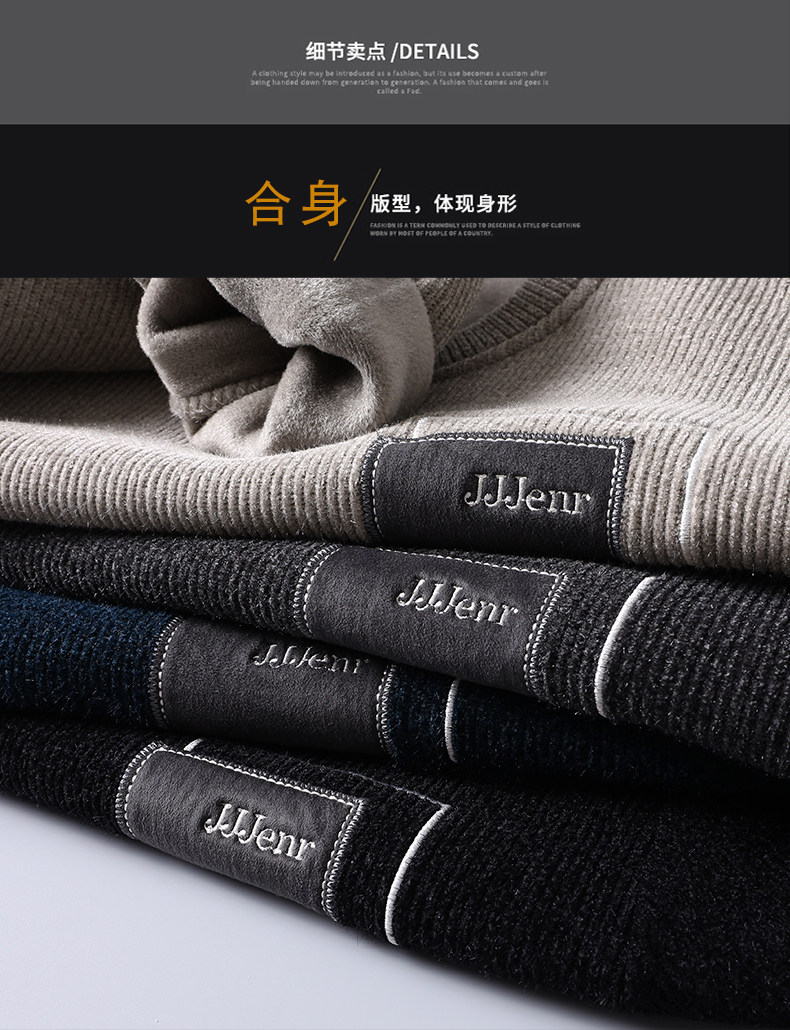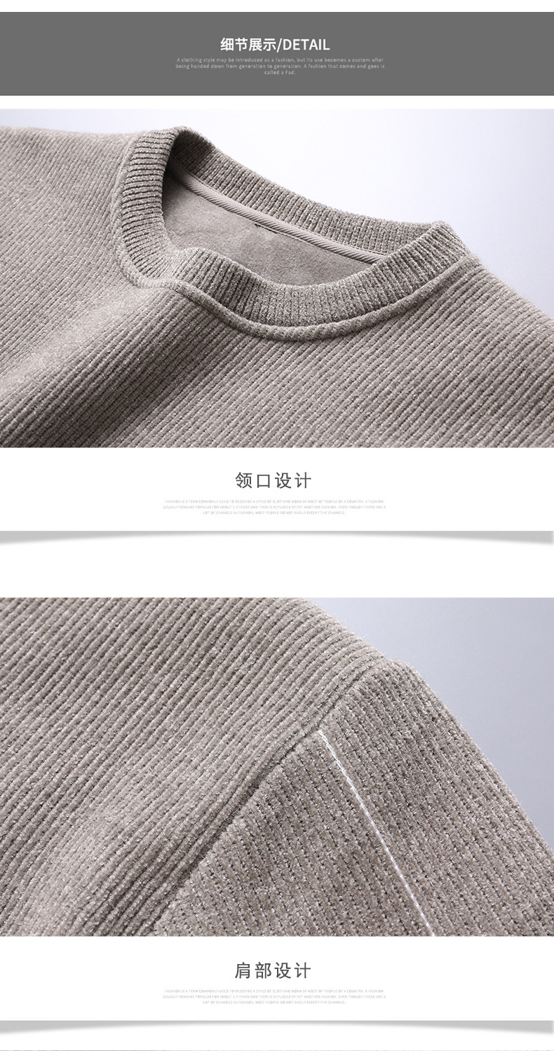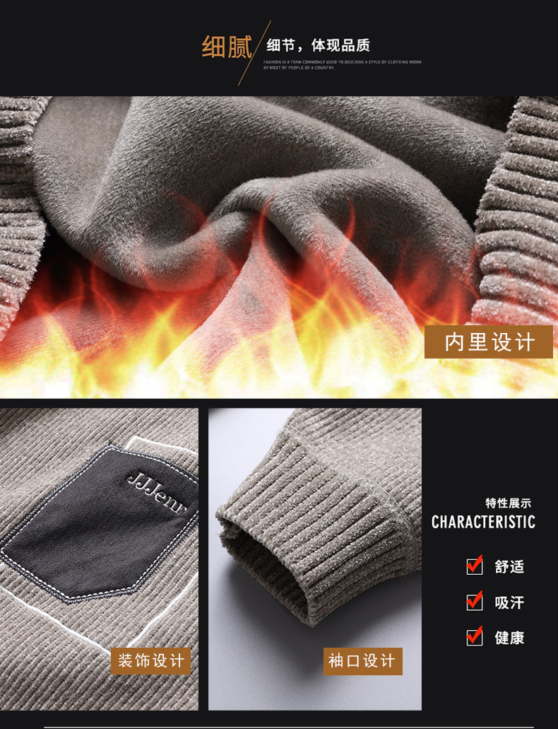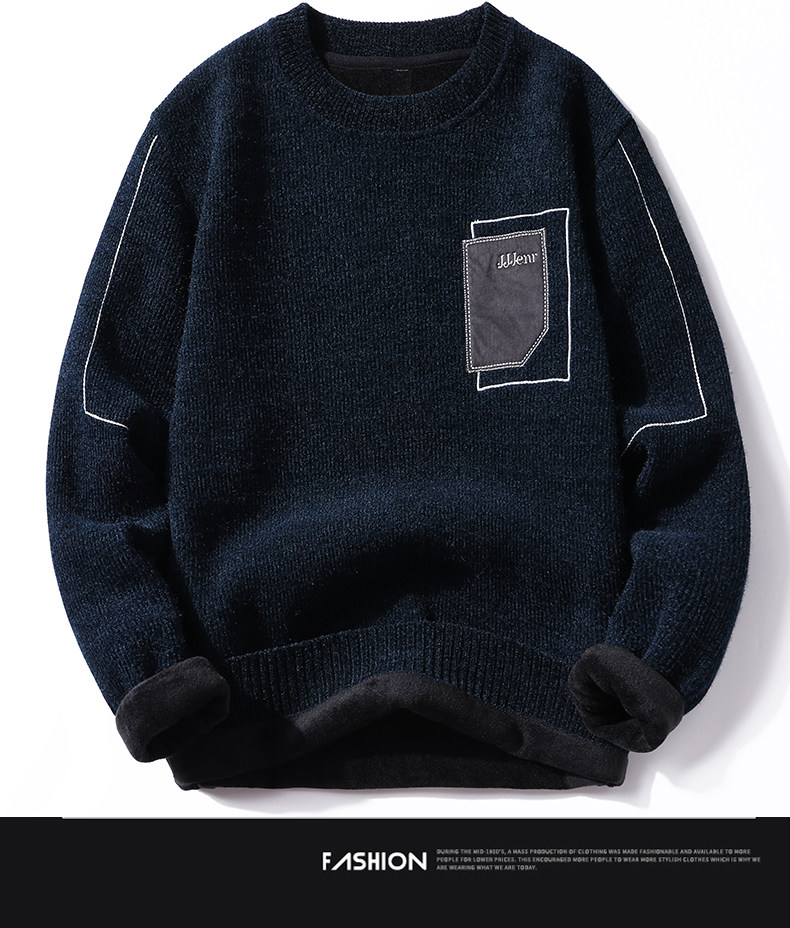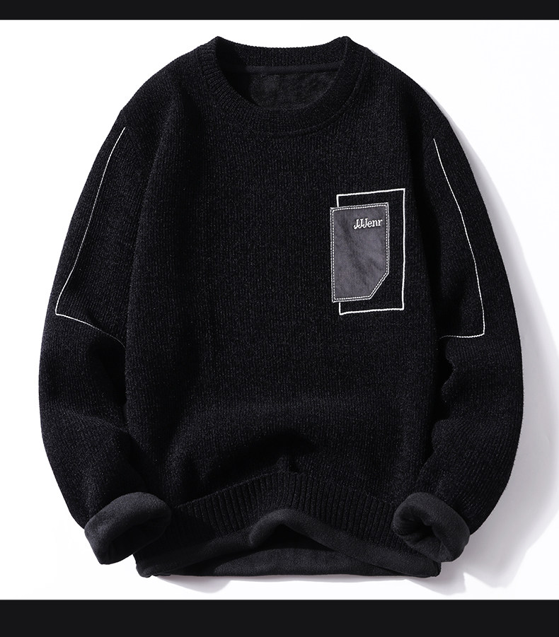 Woodpecker Men's Sweater Autumn and Winter New Chenille Warm Fleece-Lined Underwear Knitwear Round Neck Base Layer Knit Shirt for Men