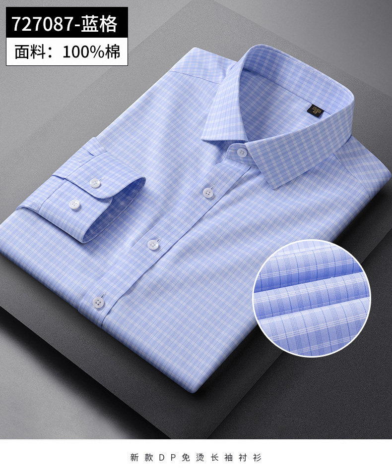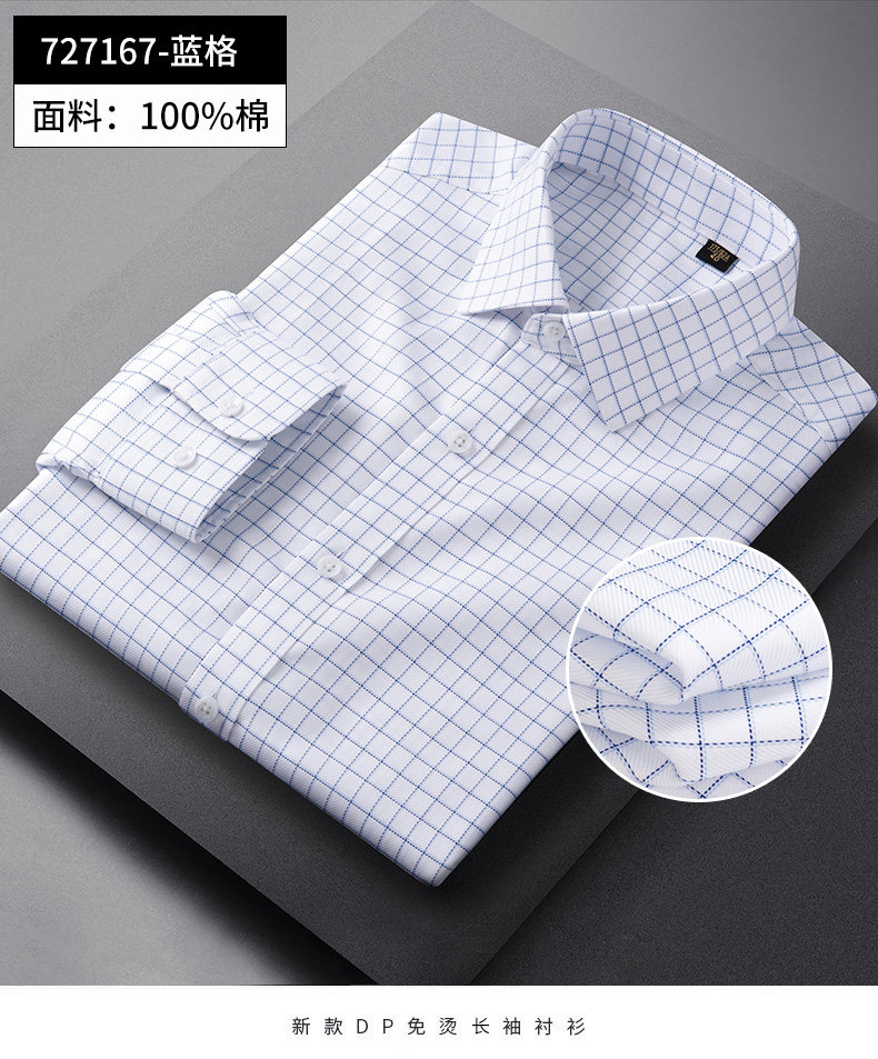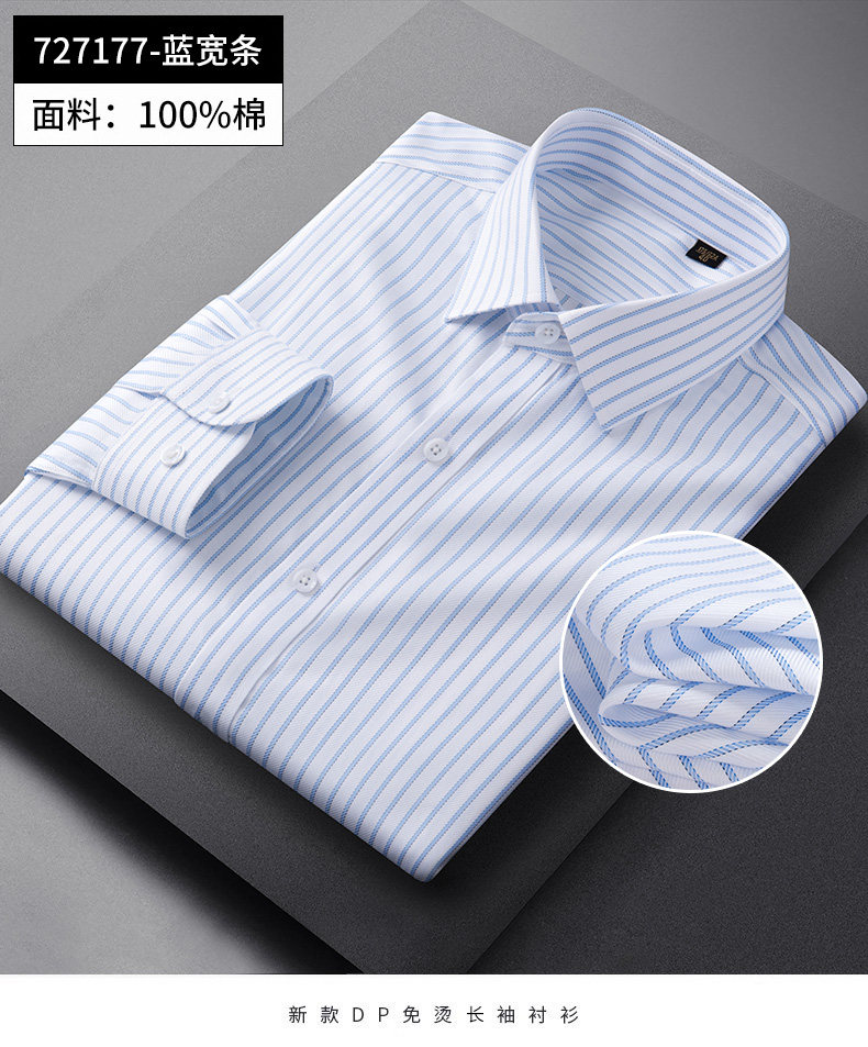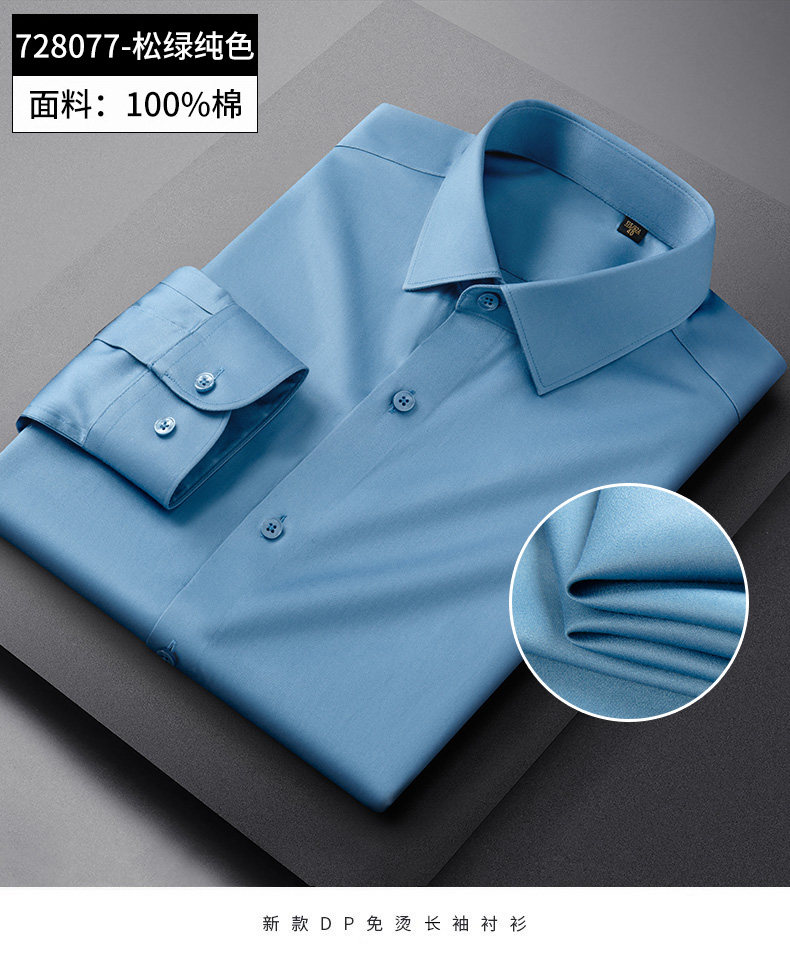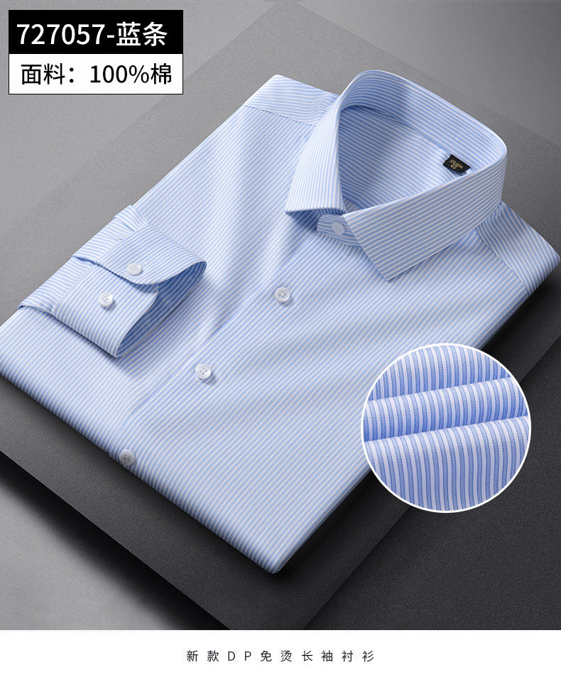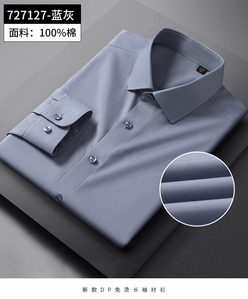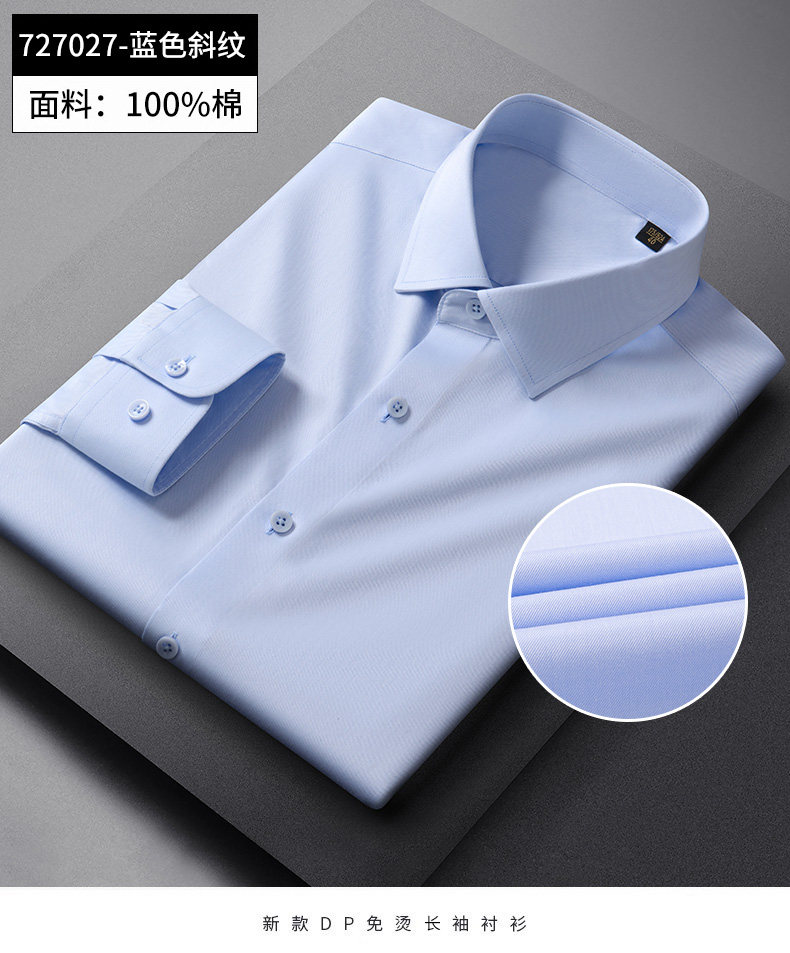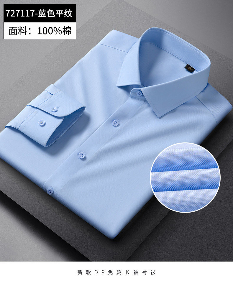 【200 Count 4-Strand Pure Cotton Dp Non-Iron】Prince Dragon New Long-Sleeve Shirt Men's Autumn Business Blue Shirt