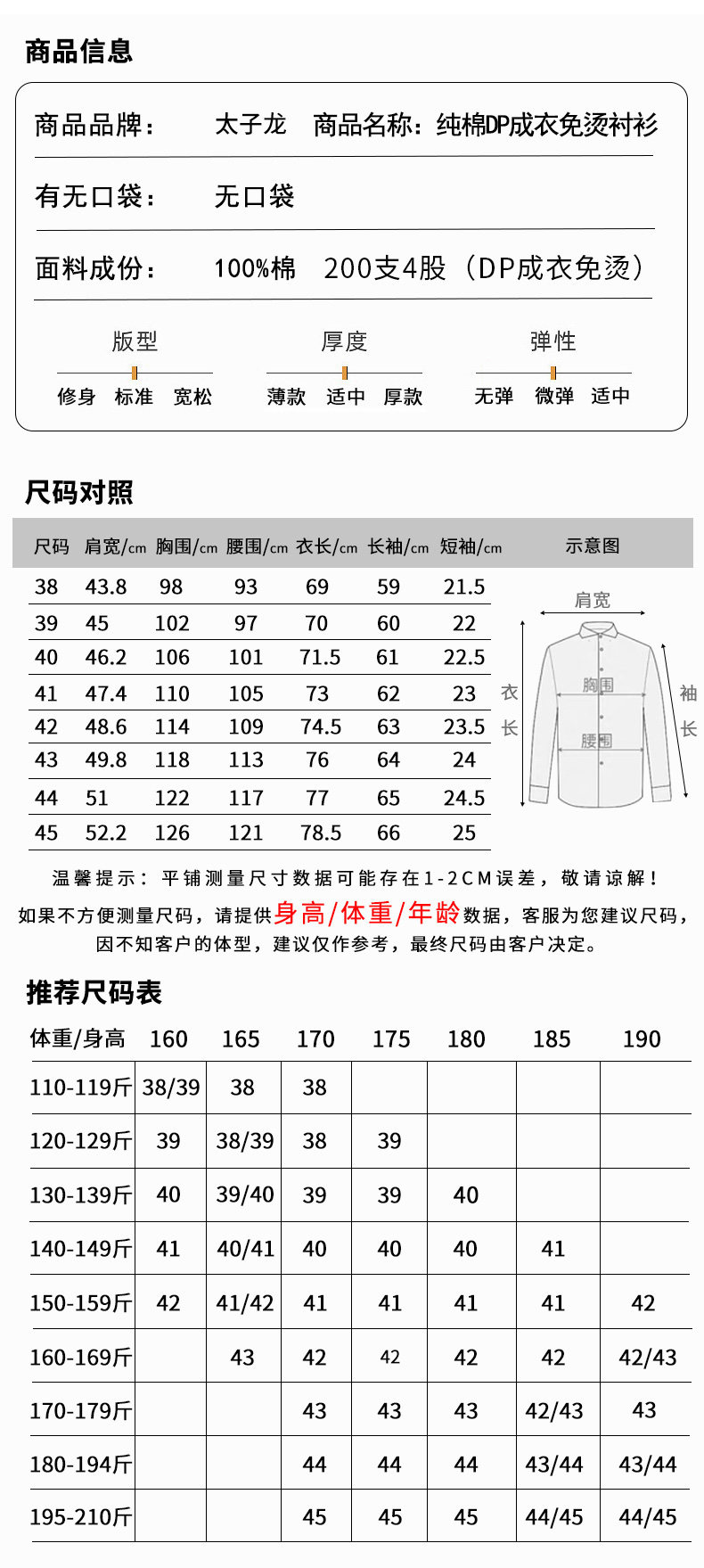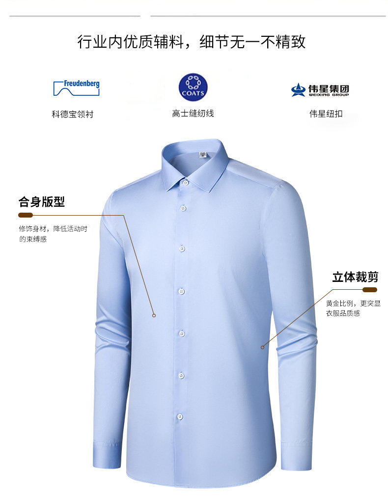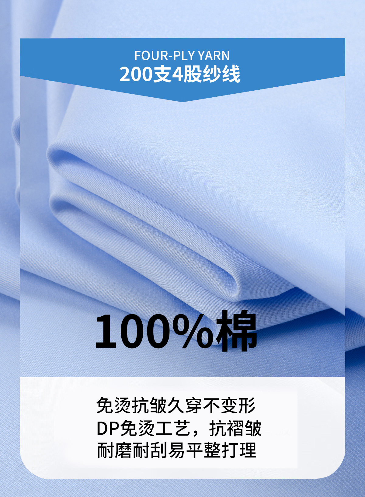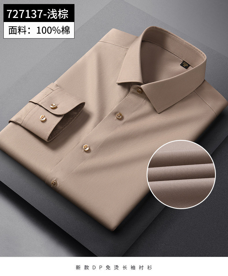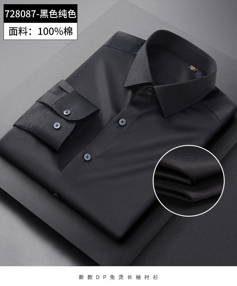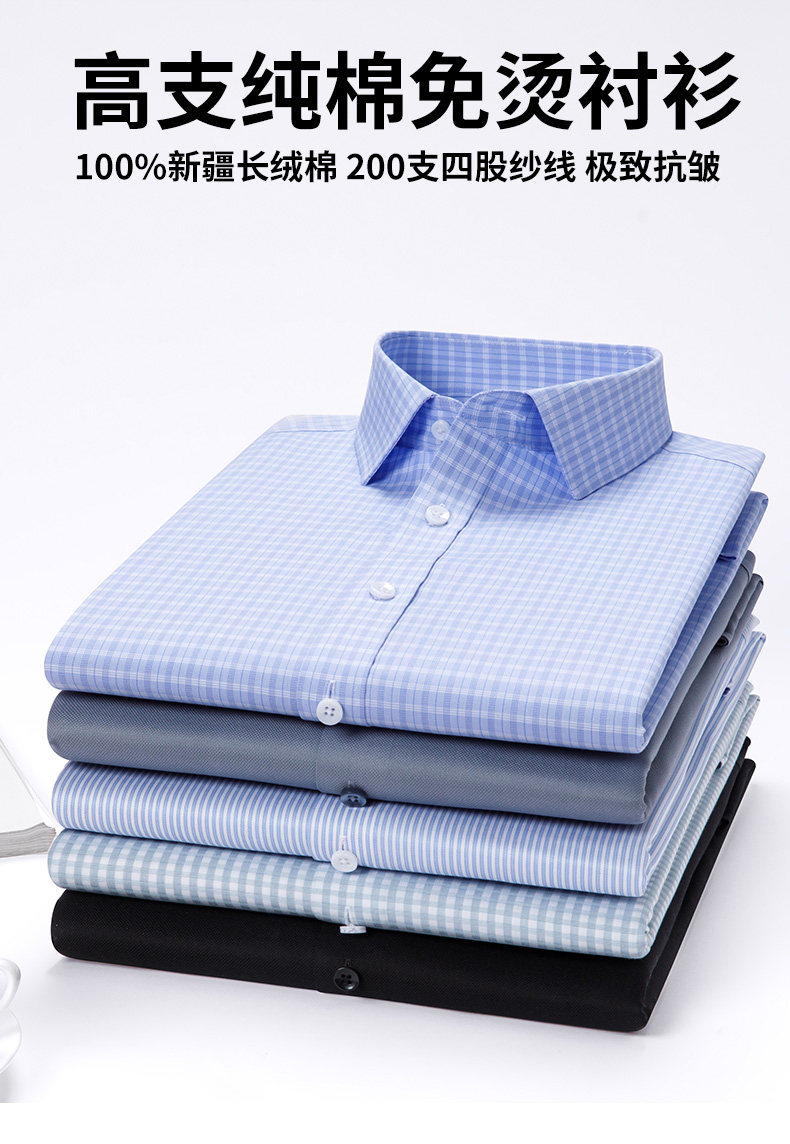 【200 Count 4-Strand Pure Cotton Dp Non-Iron】Prince Dragon New Long-Sleeve Shirt Men's Autumn Business Blue Shirt