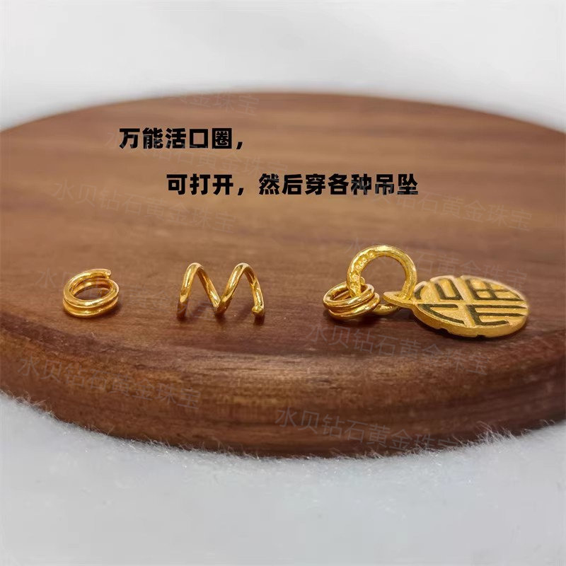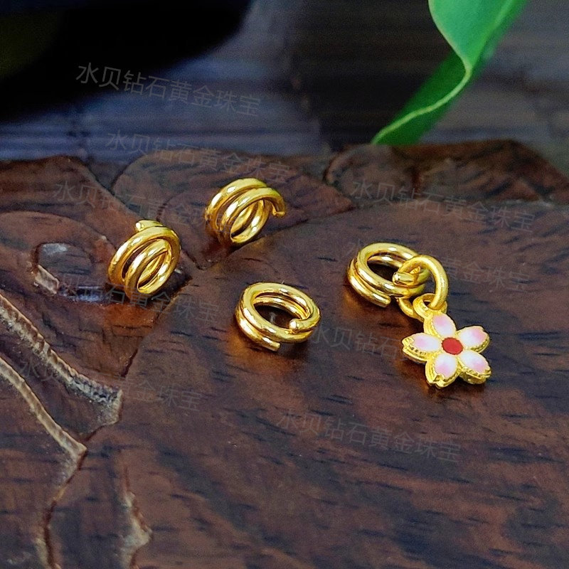 Pure Gold 999 Universal Ring, Pure Gold Double-Open Adjustable Ring, Gold Spring Clasp Bracelet Connector, DIY Small Round Clasp