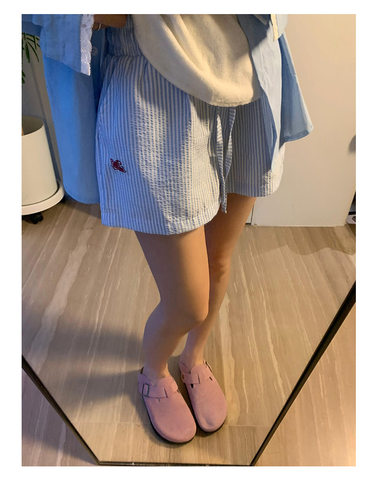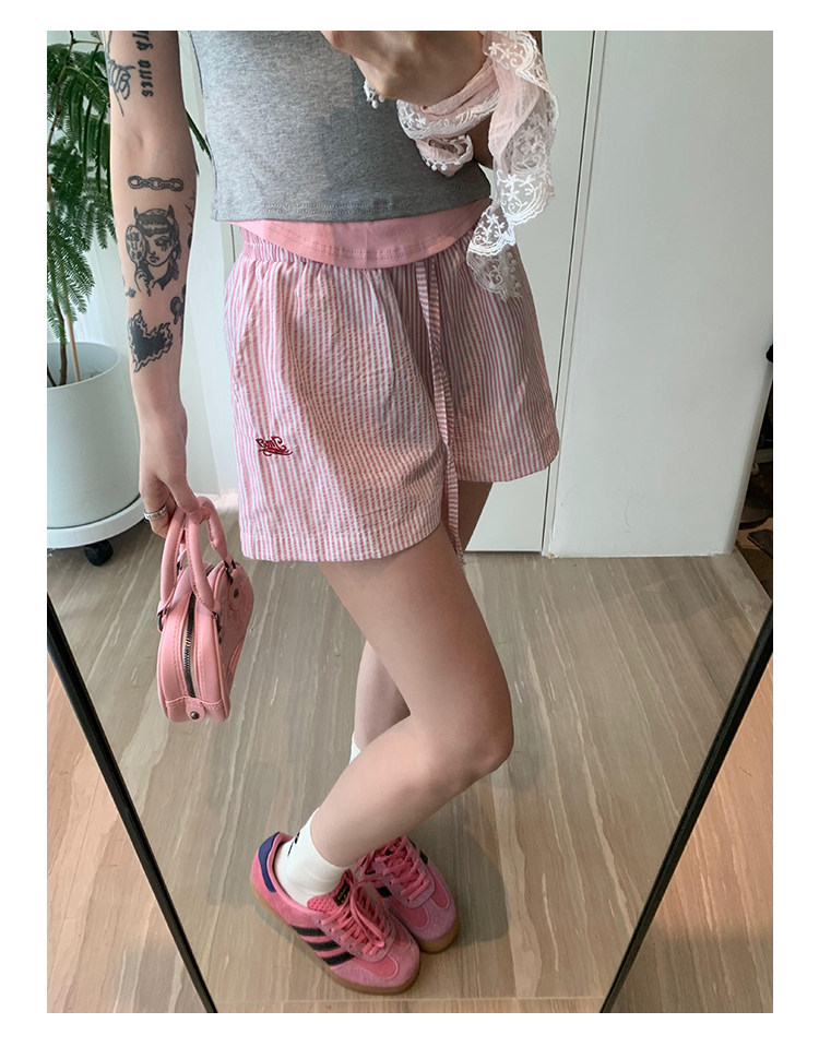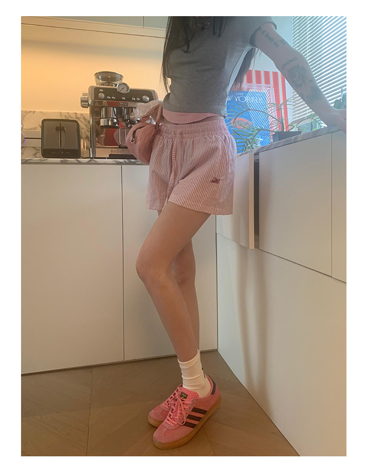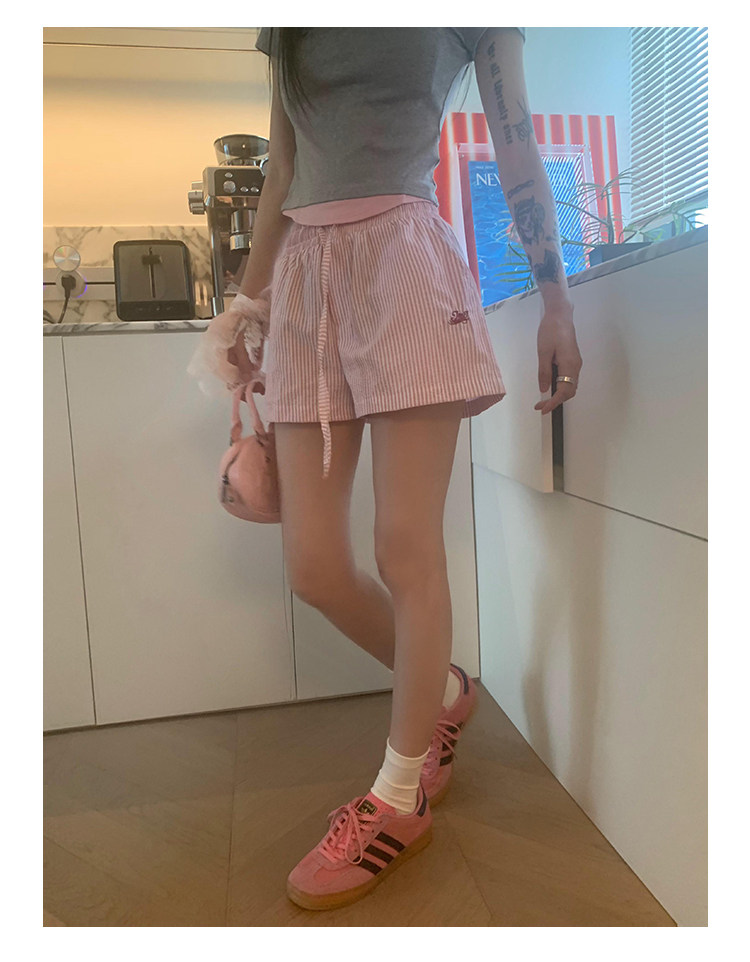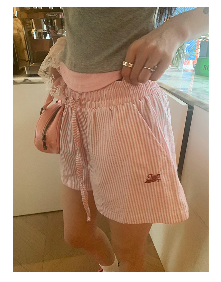 Jmj 2025 Vertical Stripesd Drawstring Letter Embroidered Wide-Leg Shorts for Men and Women Loose Summer Hot Pants Casual Three-Quarter Pants