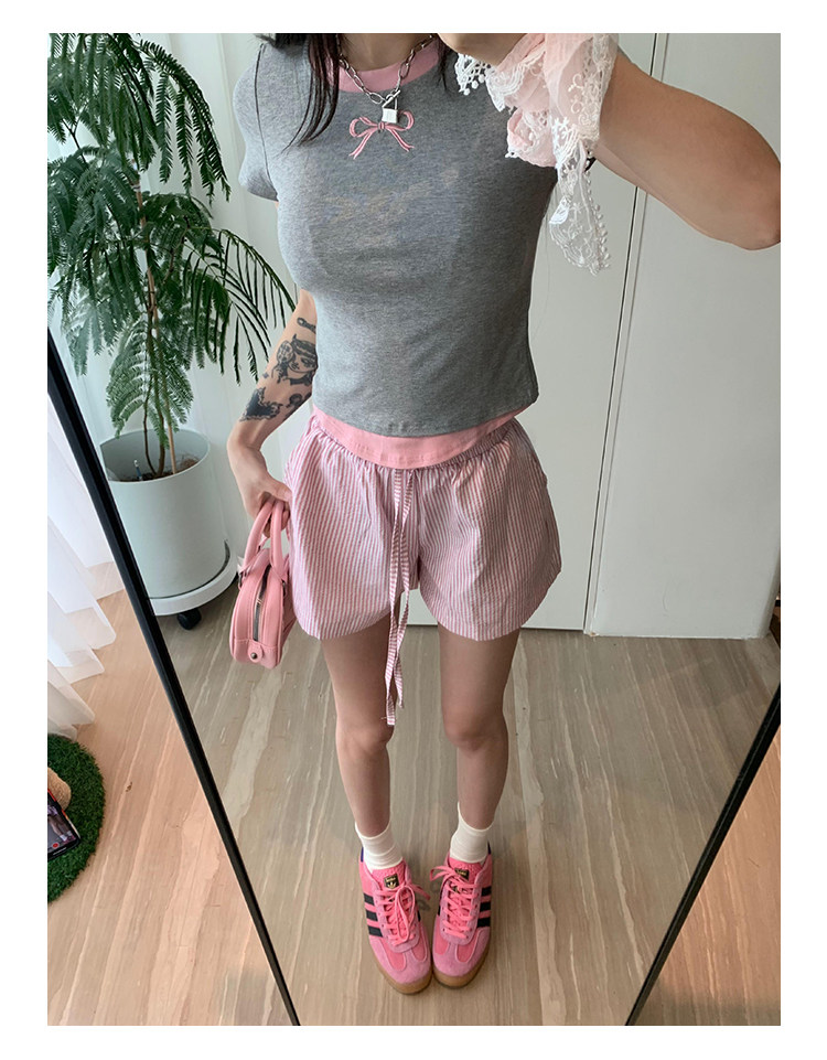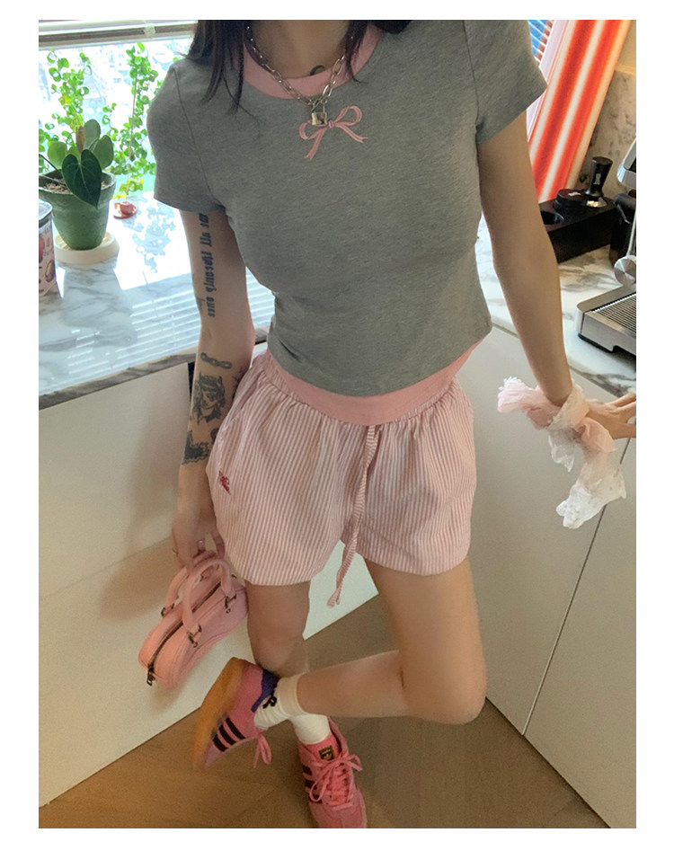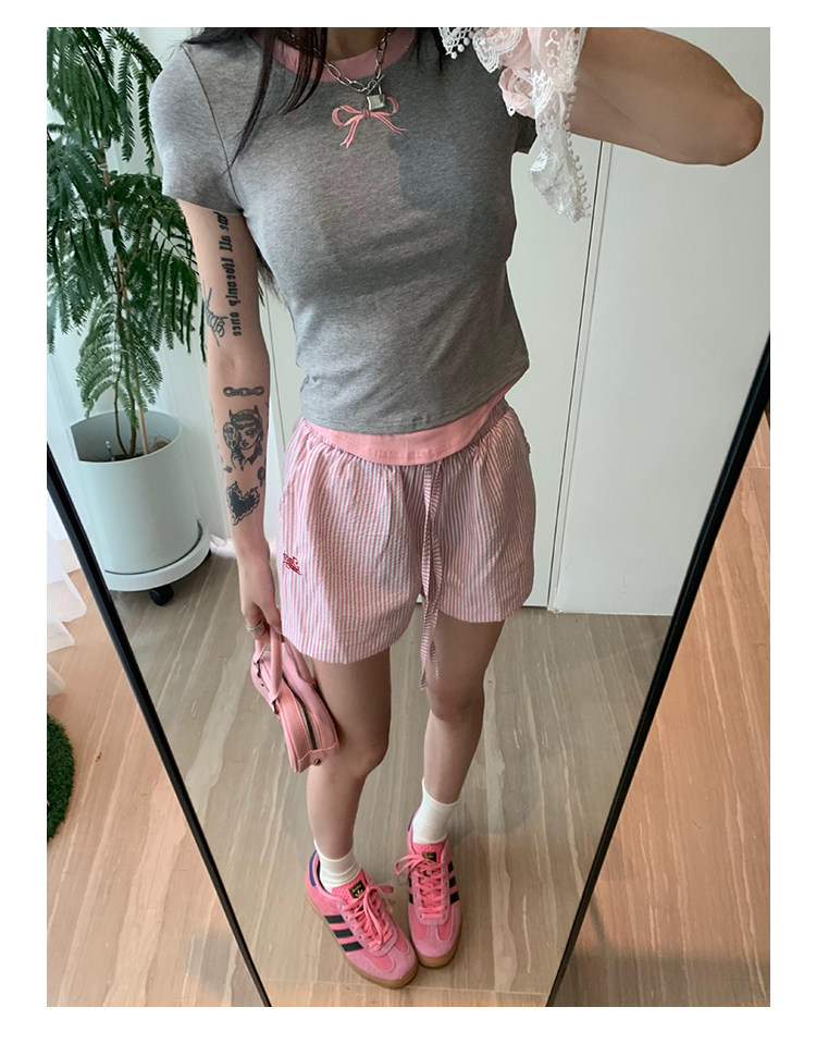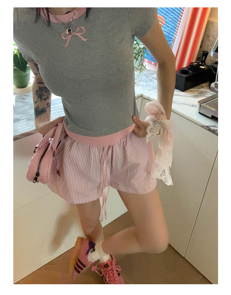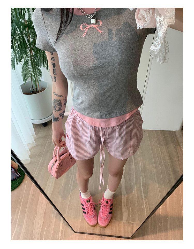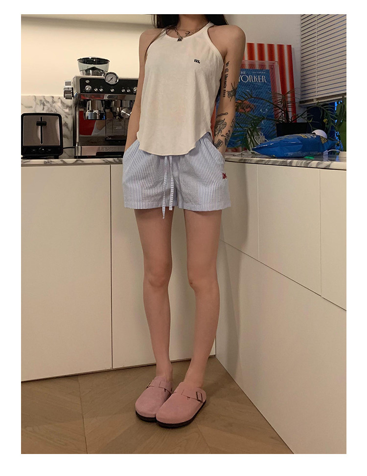 Jmj 2025 Vertical Stripesd Drawstring Letter Embroidered Wide-Leg Shorts for Men and Women Loose Summer Hot Pants Casual Three-Quarter Pants