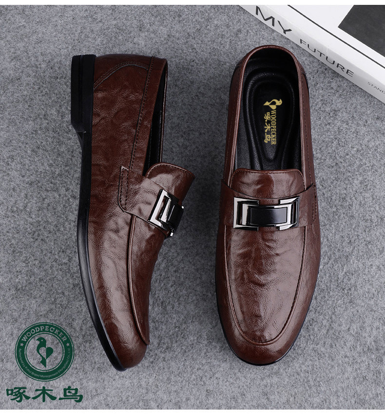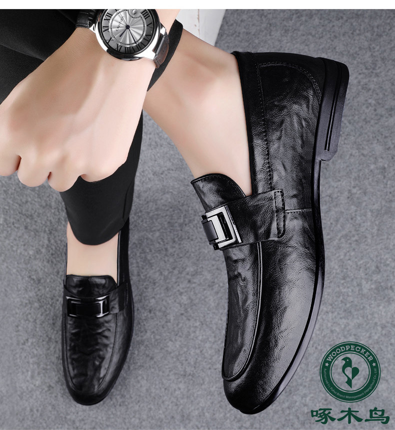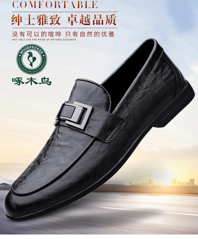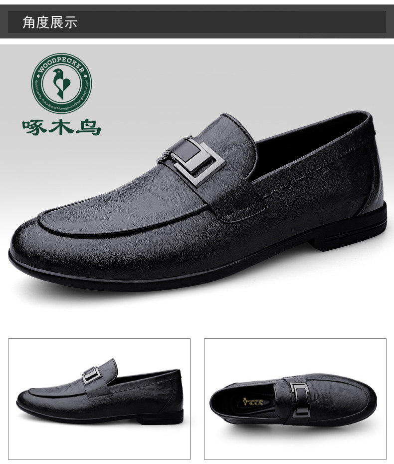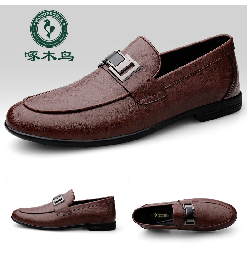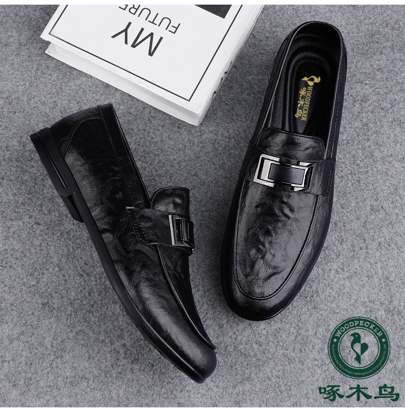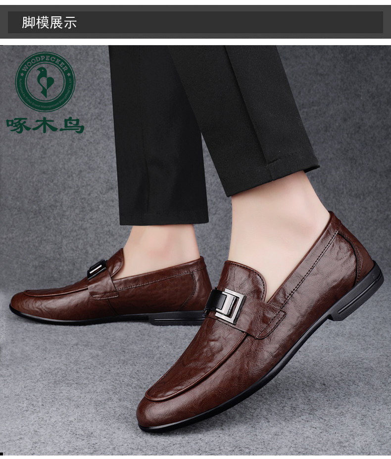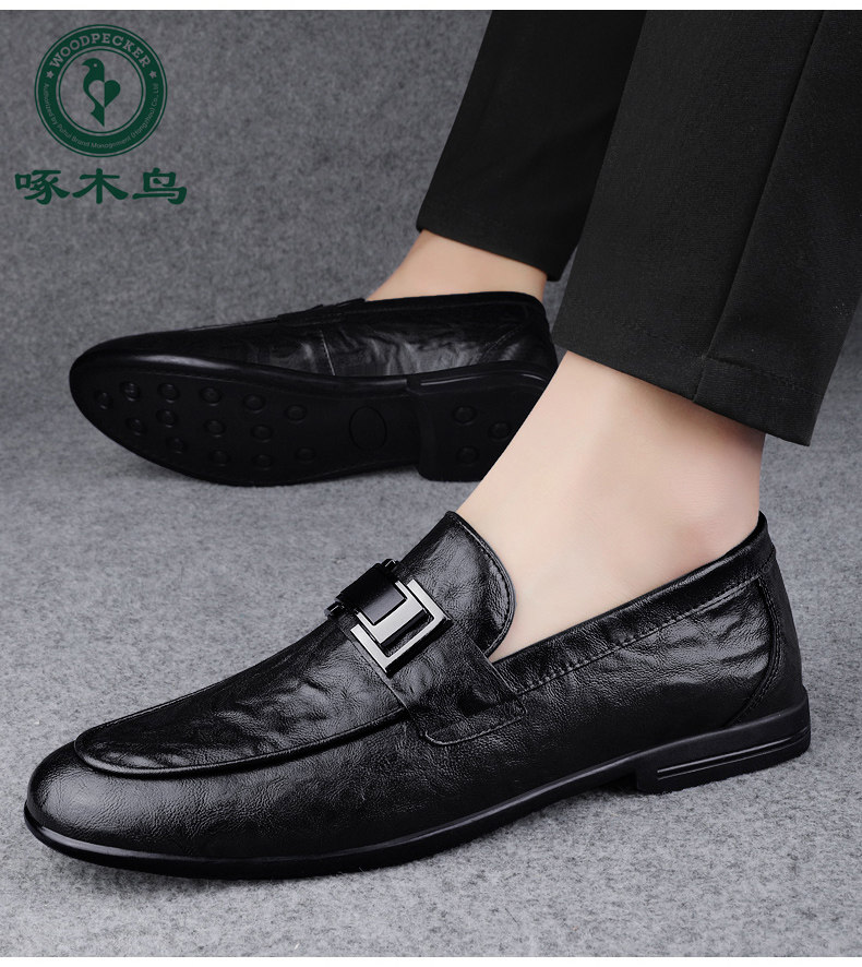 Woodpecker Men's Leather Shoes Spring New Genuine Leather Breathable Slip-On Loafers Business Casual Dad Work Shoes