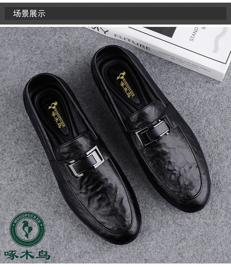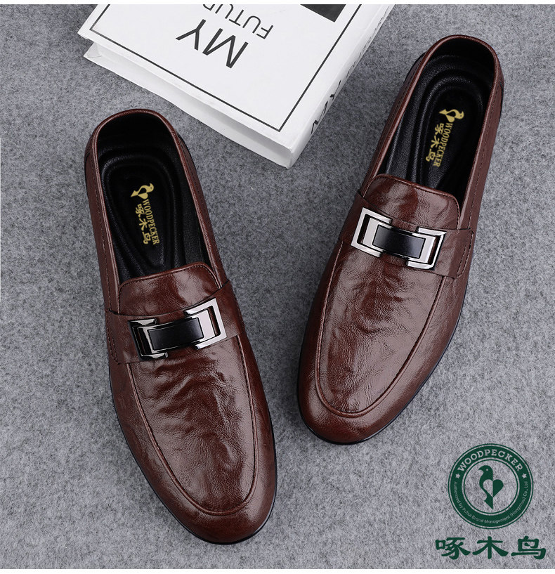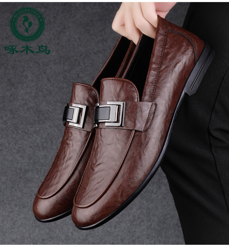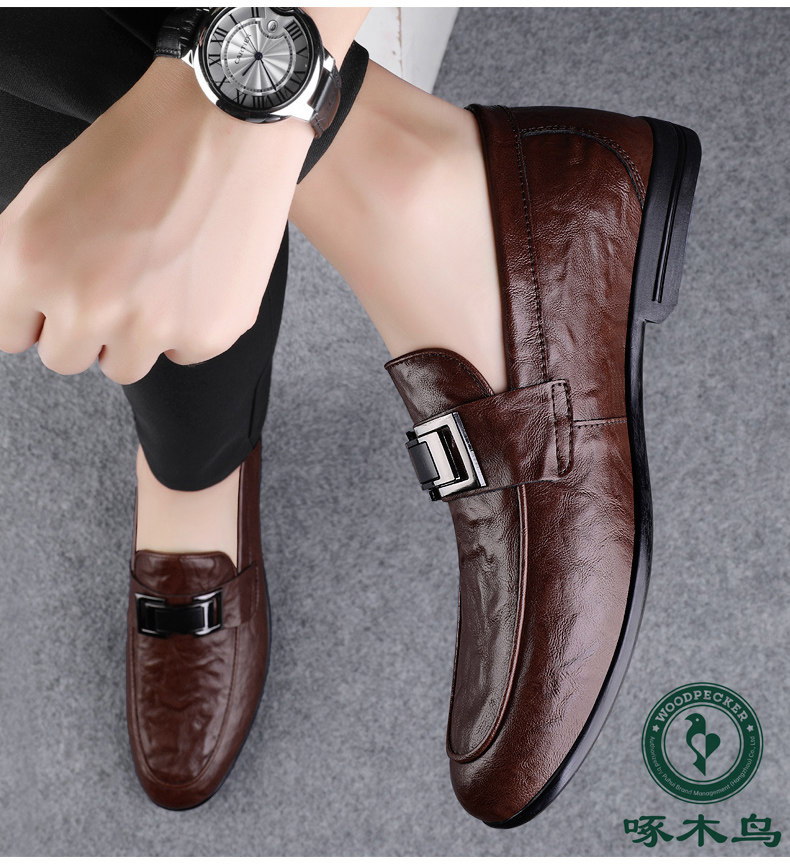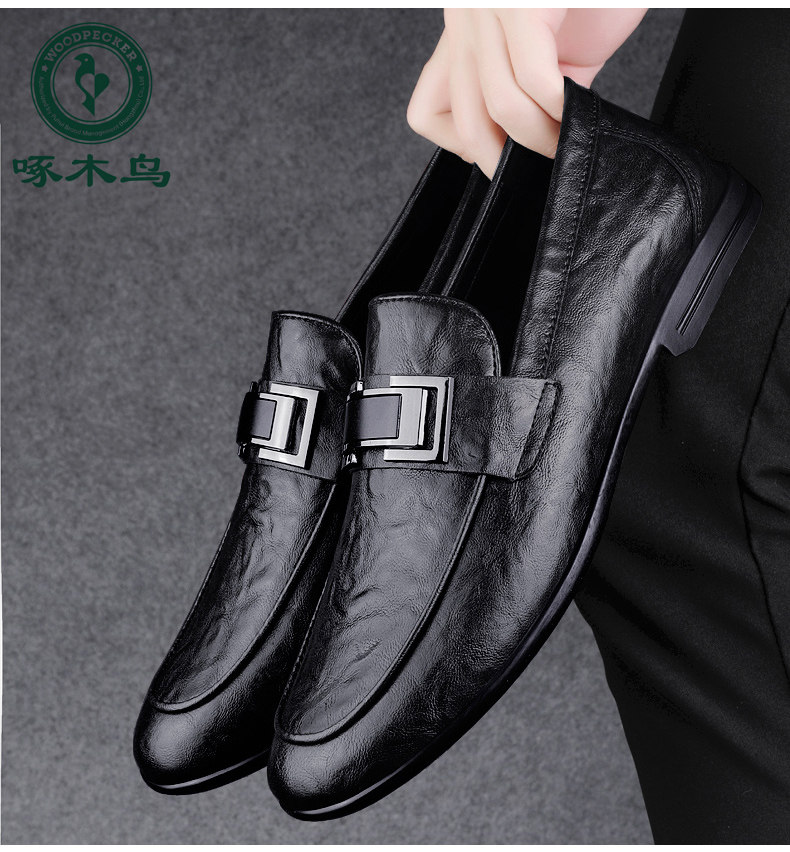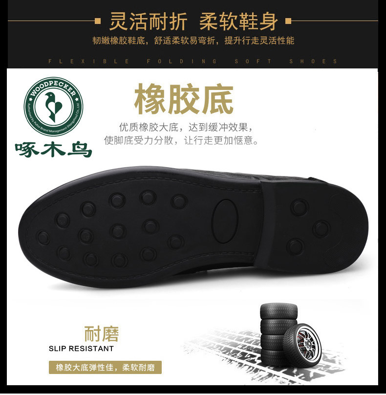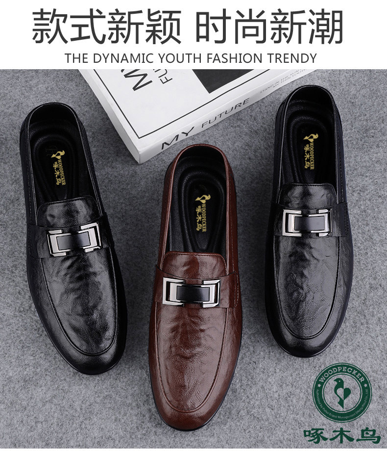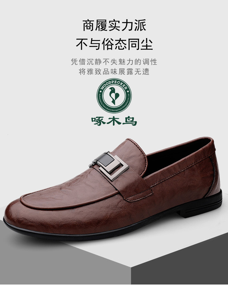 Woodpecker Men's Leather Shoes Spring New Genuine Leather Breathable Slip-On Loafers Business Casual Dad Work Shoes