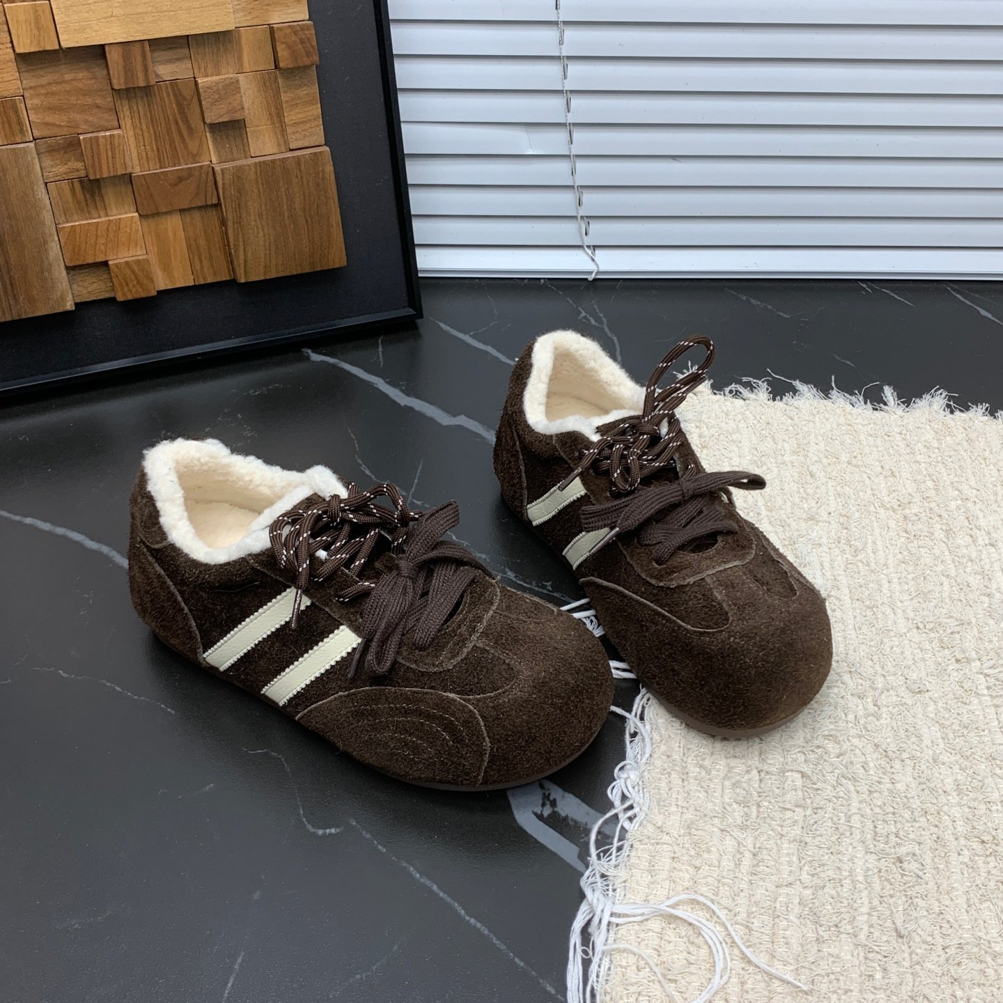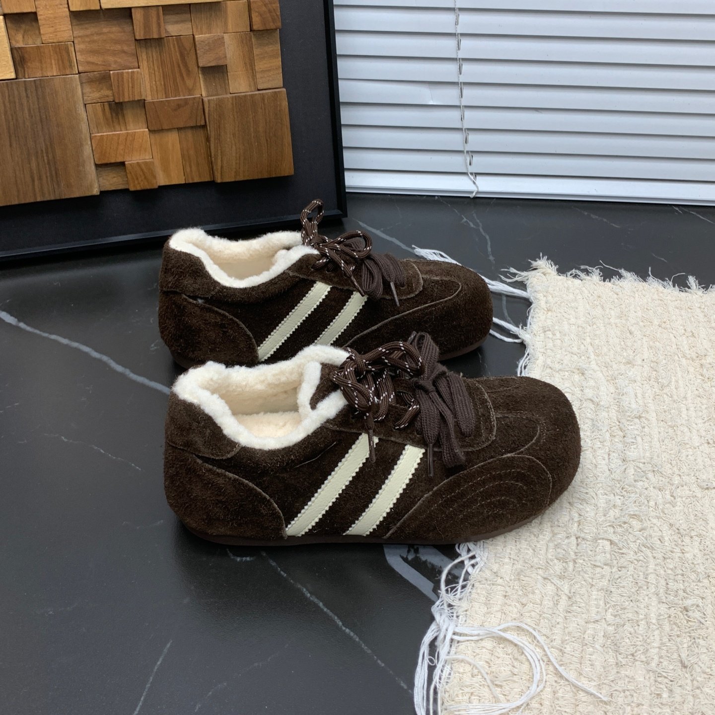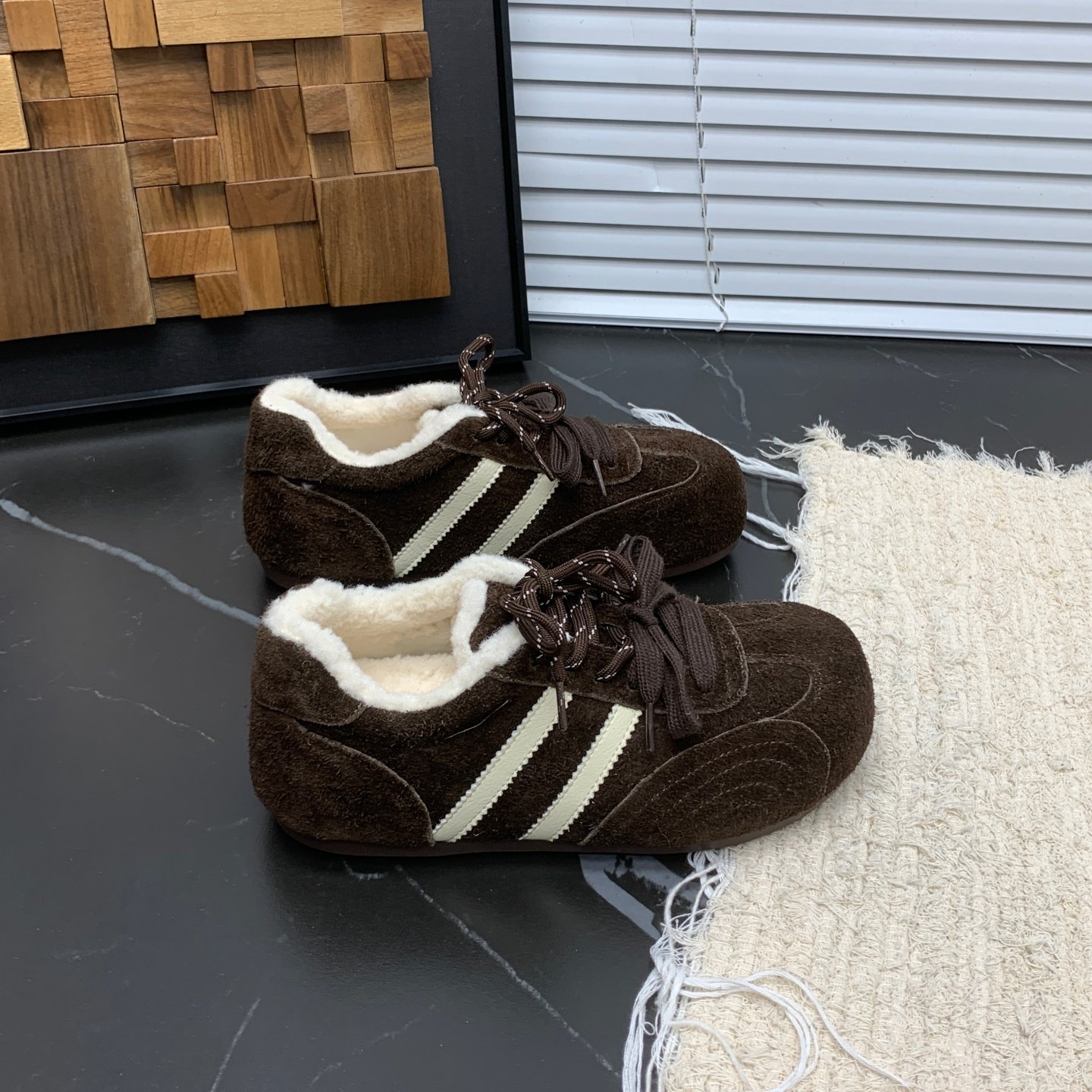 Hong Kong Thick-Soled Fleece-Lined German Training Shoes for Women, New Winter Cotton Shoes, Niche Genuine Leather Sneakers, Versatile Sports Casual Shoes