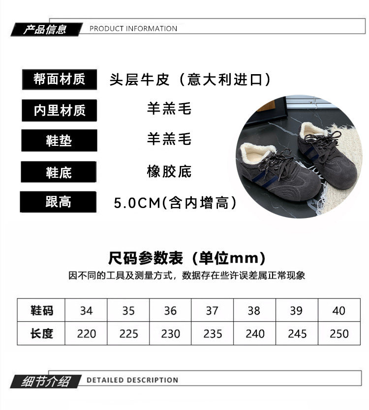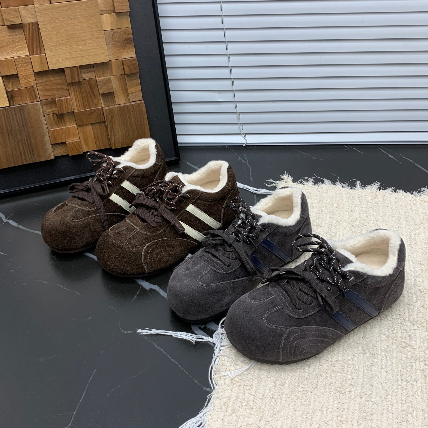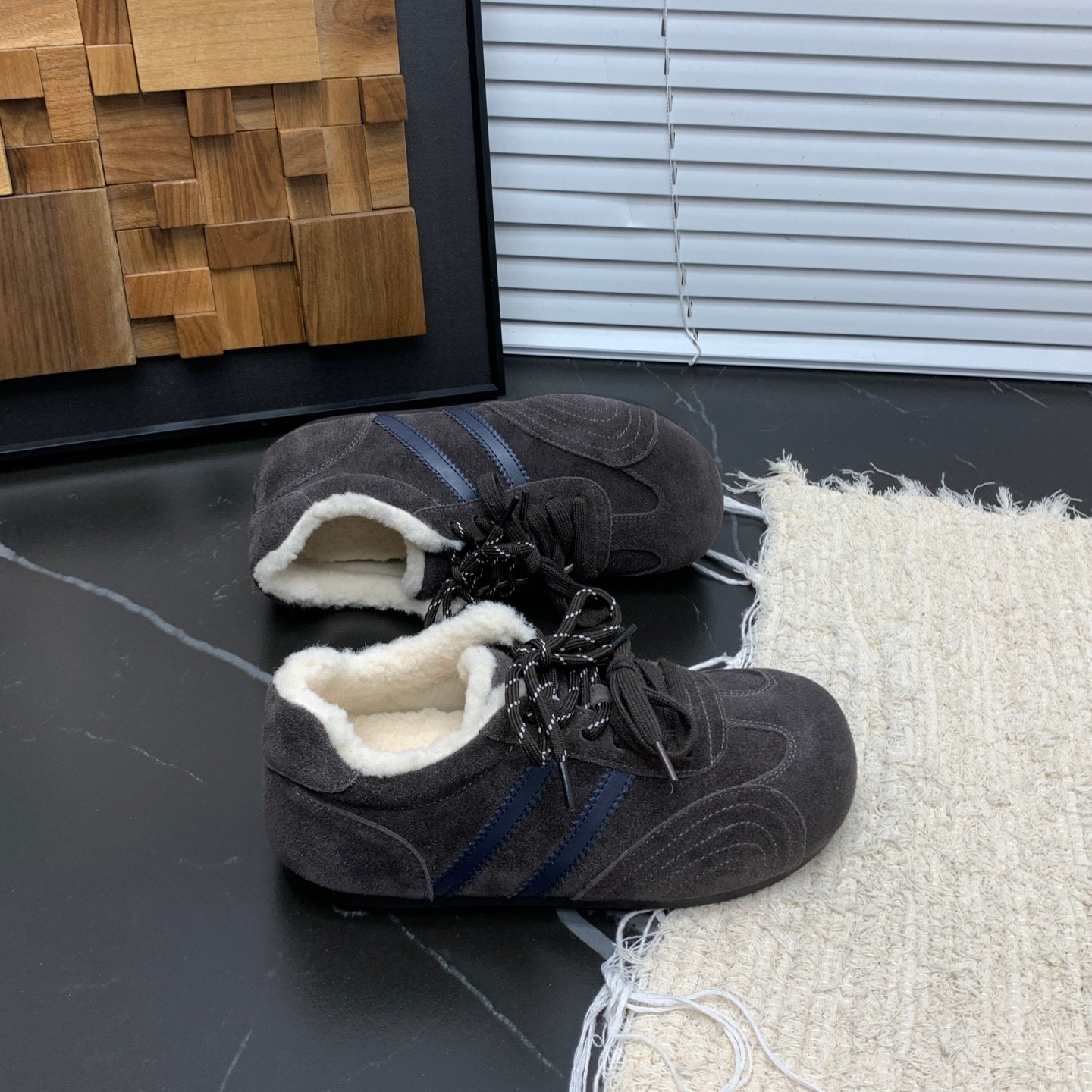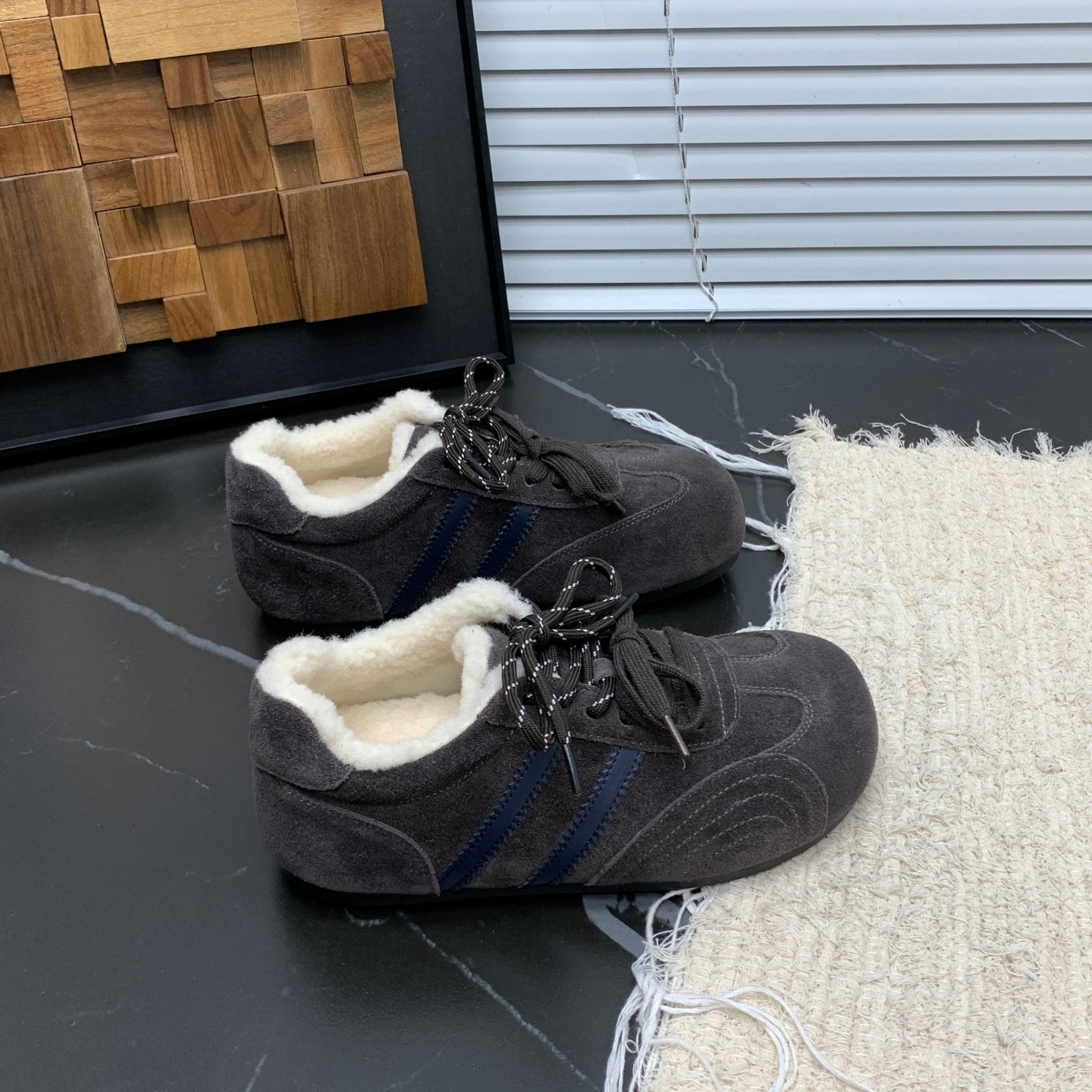 Hong Kong Thick-Soled Fleece-Lined German Training Shoes for Women, New Winter Cotton Shoes, Niche Genuine Leather Sneakers, Versatile Sports Casual Shoes