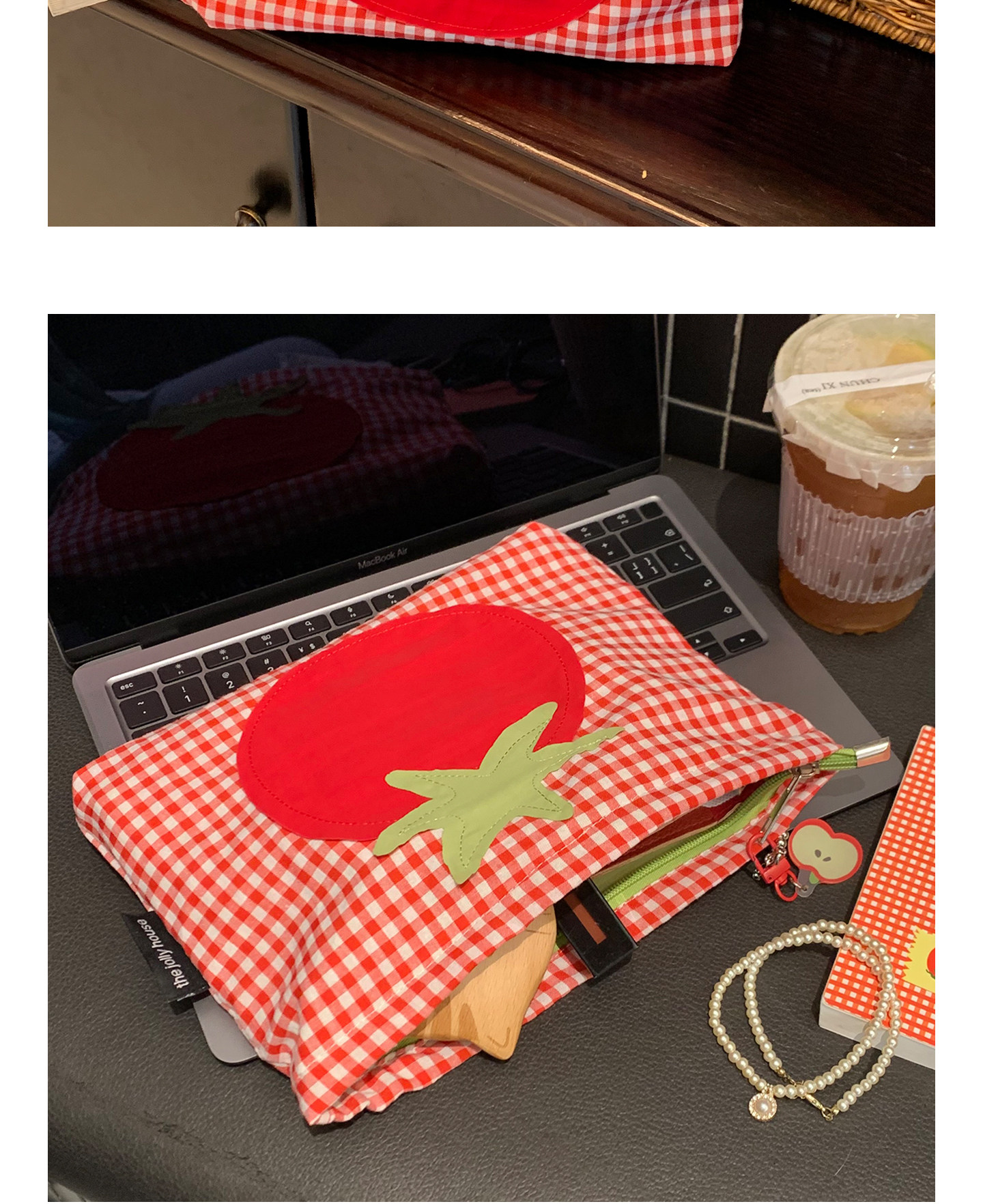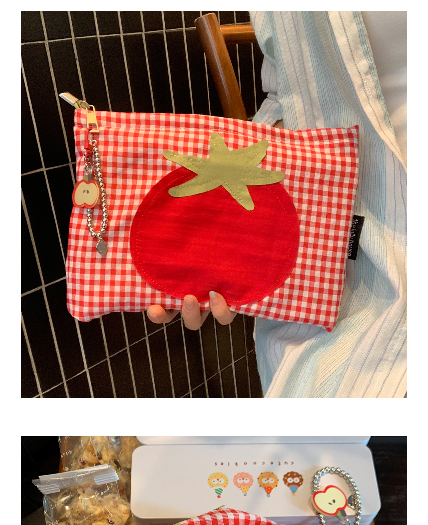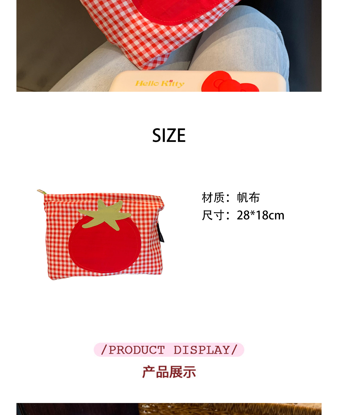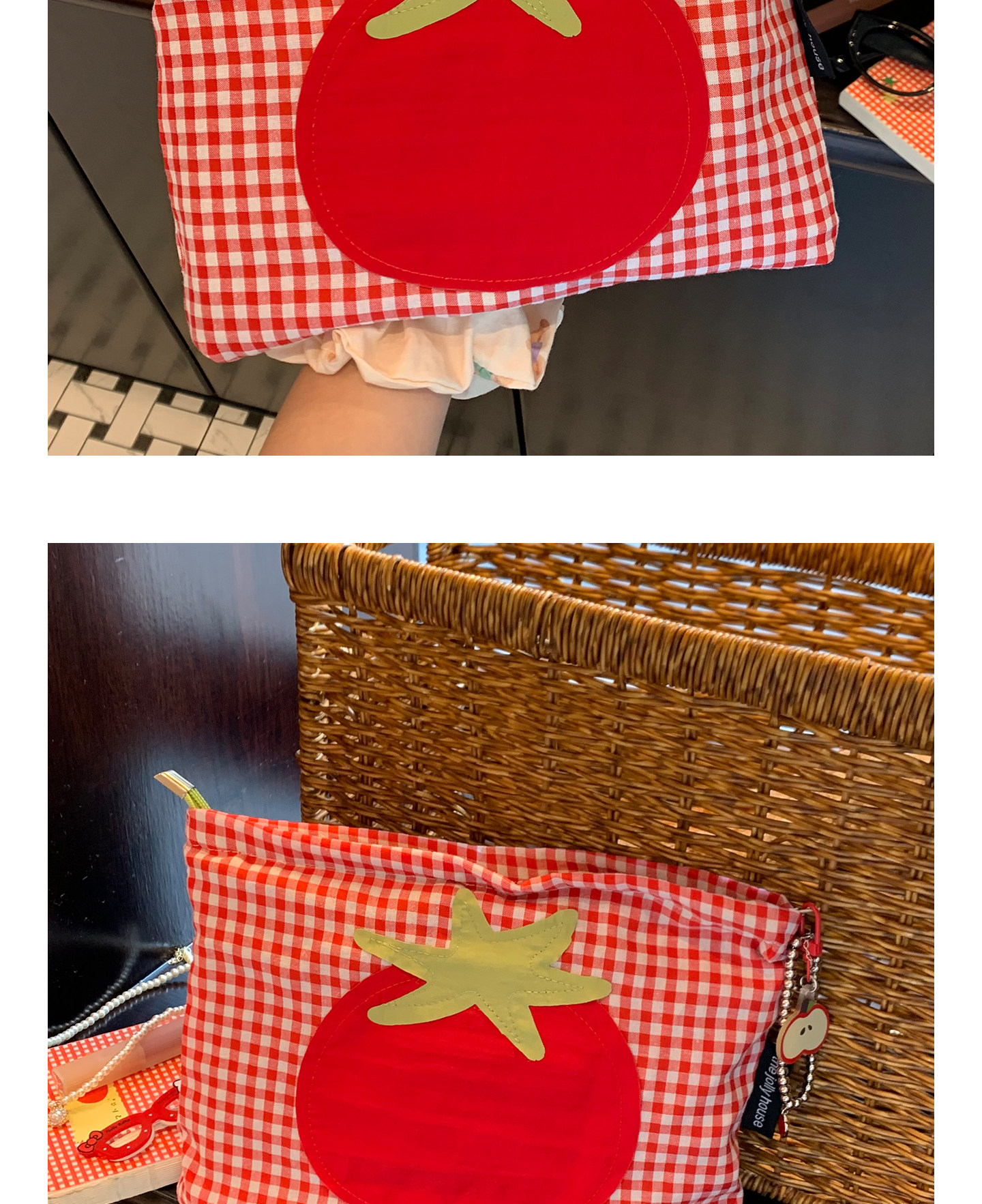 Red Checkered Tomato Canvas Clutch Bag for Women, Suitable for Daily Commuting to Work, Portable Toiletry Bag, Miscellaneous Items, and Makeup Storage Bag