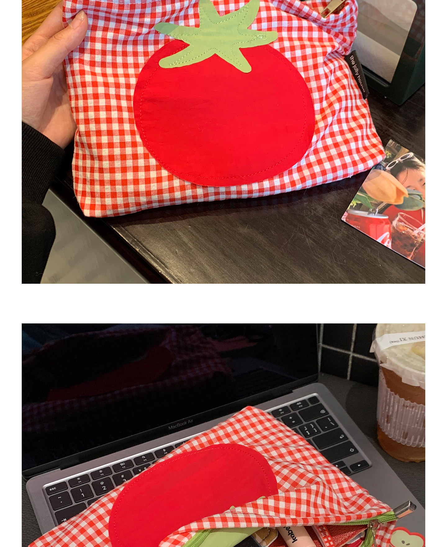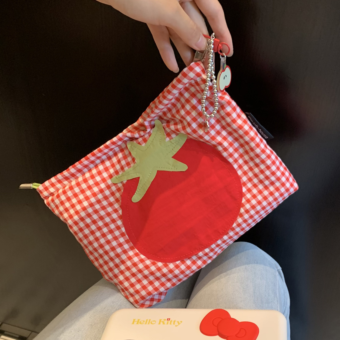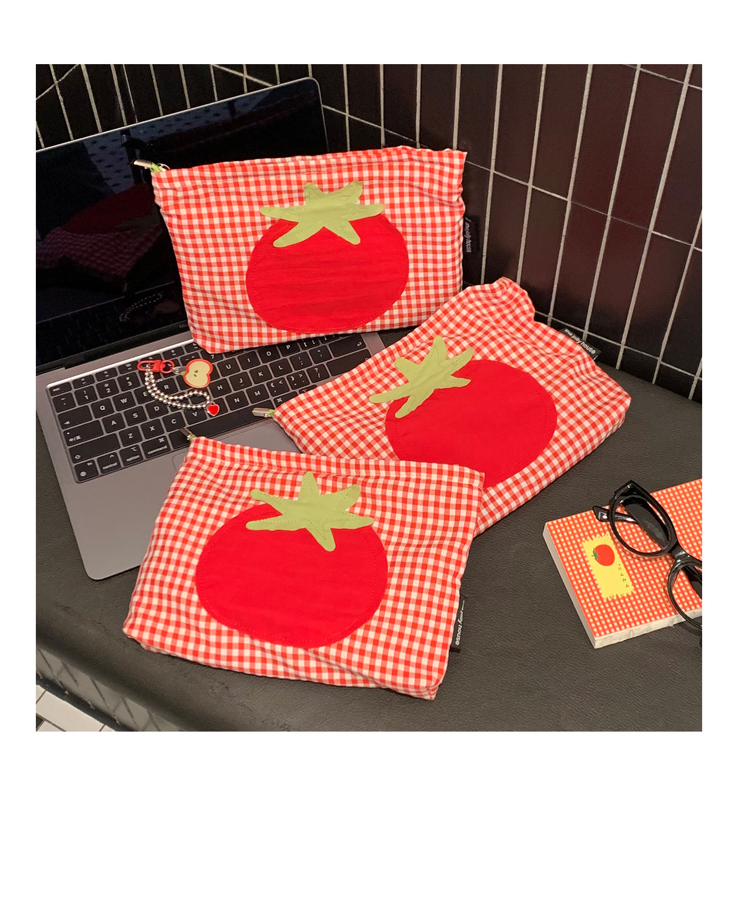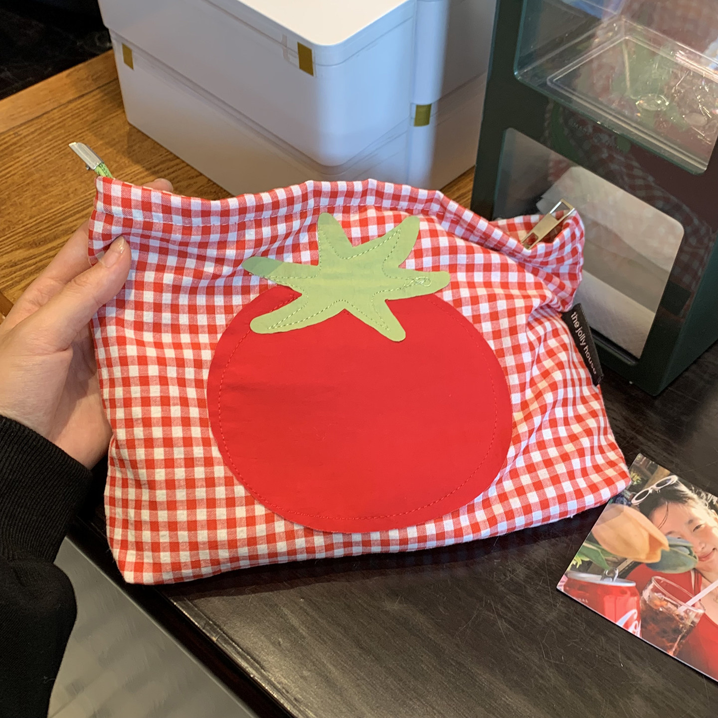 Red Checkered Tomato Canvas Clutch Bag for Women, Suitable for Daily Commuting to Work, Portable Toiletry Bag, Miscellaneous Items, and Makeup Storage Bag