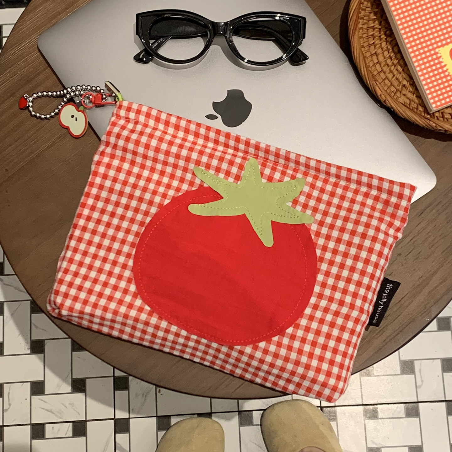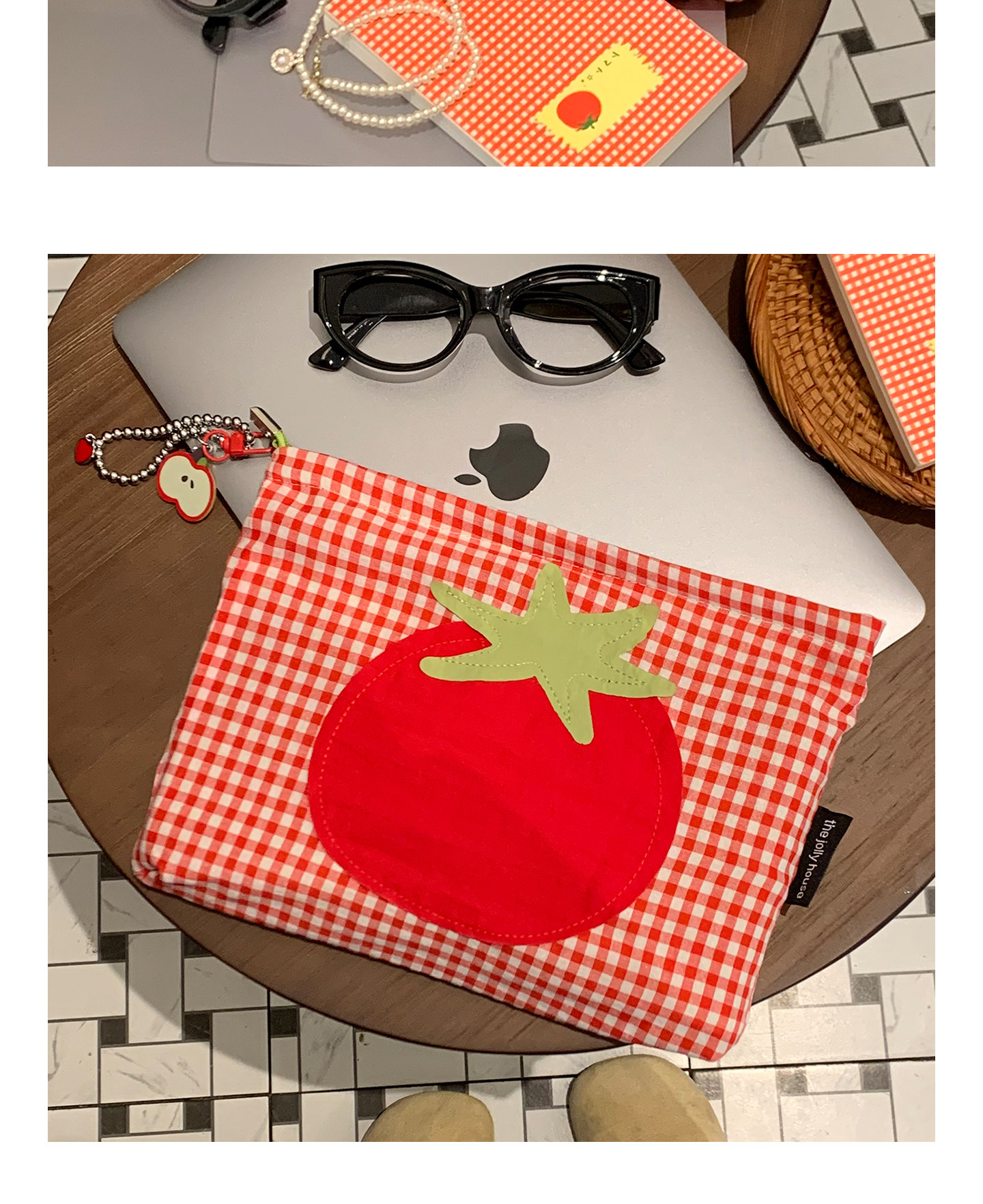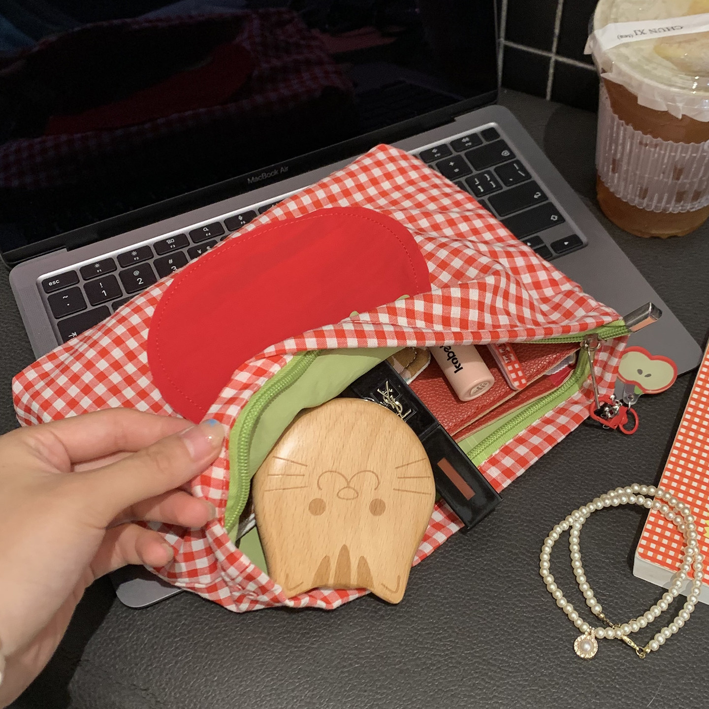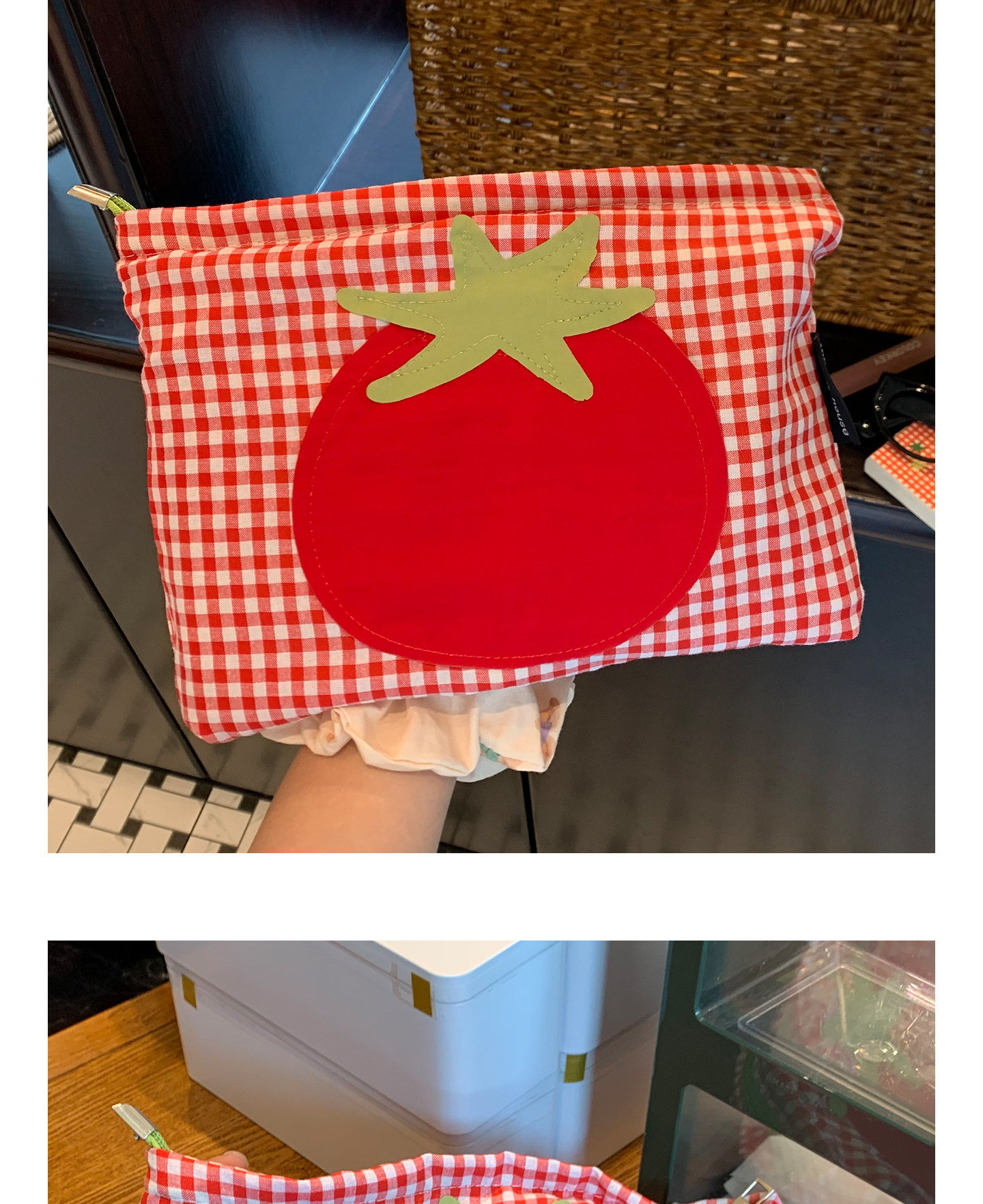 Red Checkered Tomato Canvas Clutch Bag for Women, Suitable for Daily Commuting to Work, Portable Toiletry Bag, Miscellaneous Items, and Makeup Storage Bag