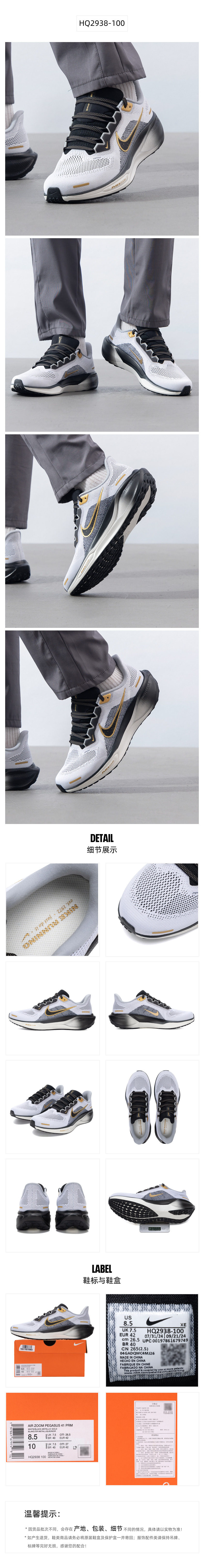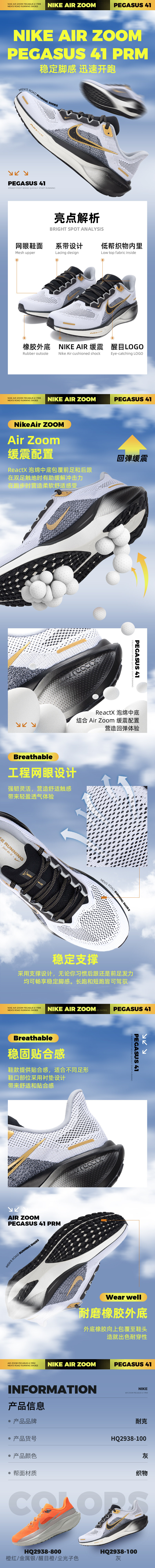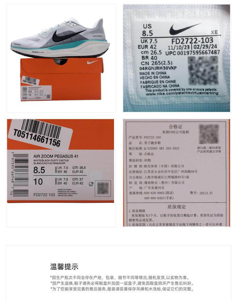 Nike Nike Men's Shoes Official Authentic 2025 Winter New Pegasus 41 Air Cushion Sports Shoes Breathable Running Shoes