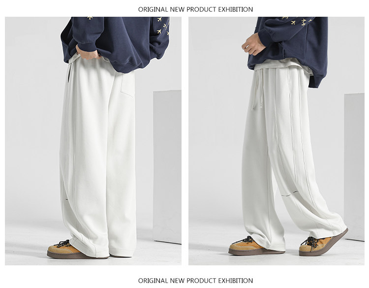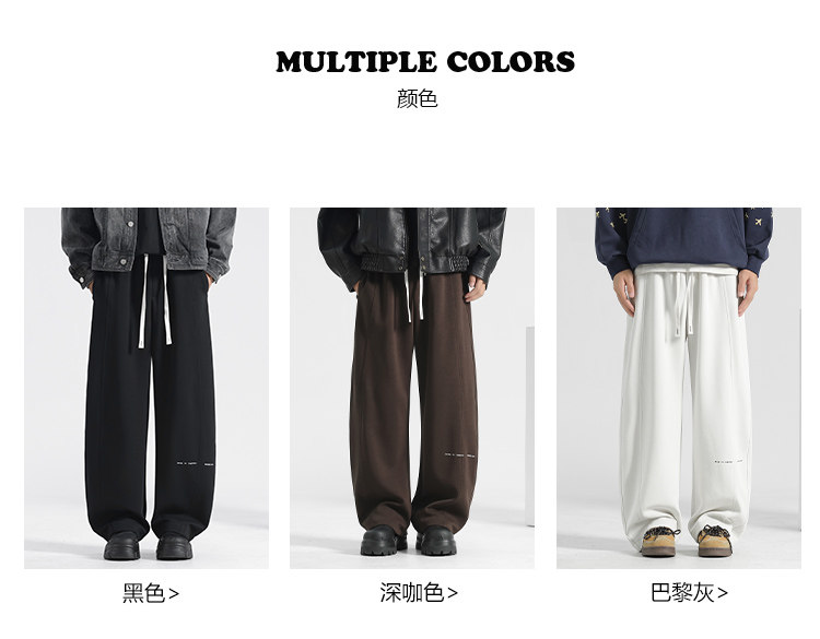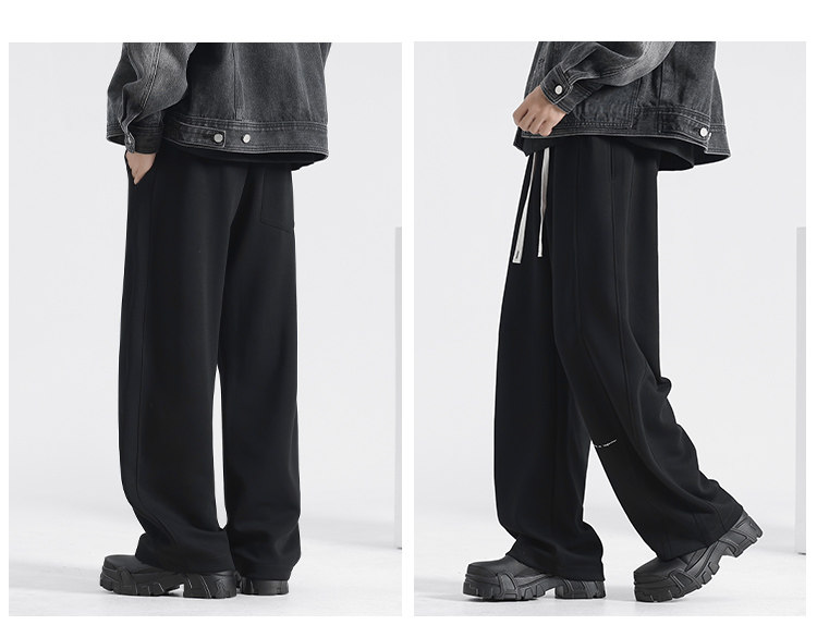 Loose Scimitar Pants for Men, Autumn and Winter Men's Pants, Fleece-Lined Casual Pants, Wide-Leg Pants, Sweatpants, Winter Straight-Leg Long Pants, Men's Trousers