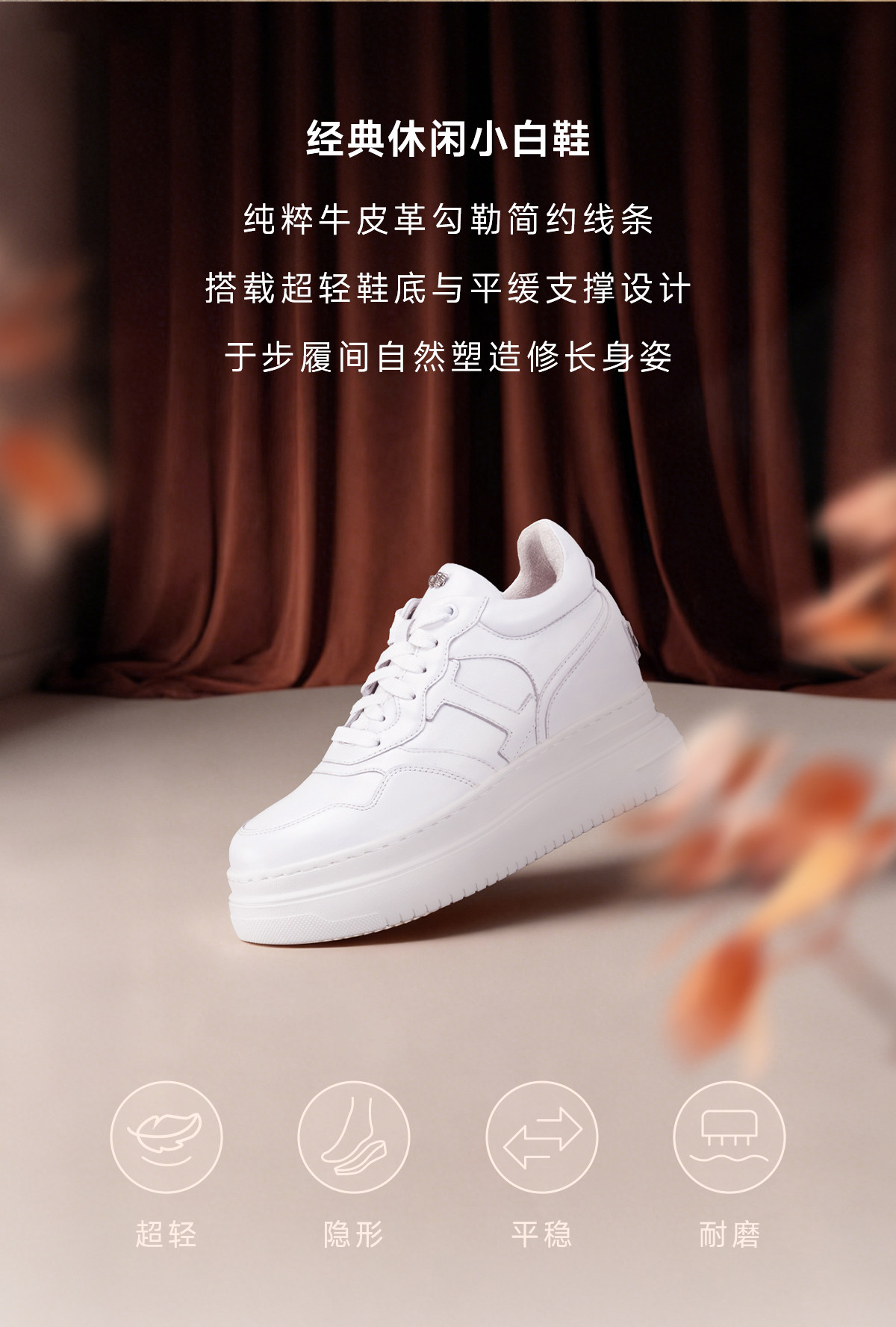 【Tan Songyun's Style】Iijin Ai Jin 9cm Classic Ultra-Light Thick-Soled Height-Increasing White Sneakers for Women 283Ioa
