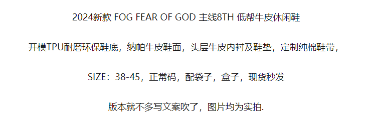 2024 New Fog Shoes Classic Model Main Line Eighth Season Low-Top Nappa Leather Casual High Street Style Leather Shoes Sneakers