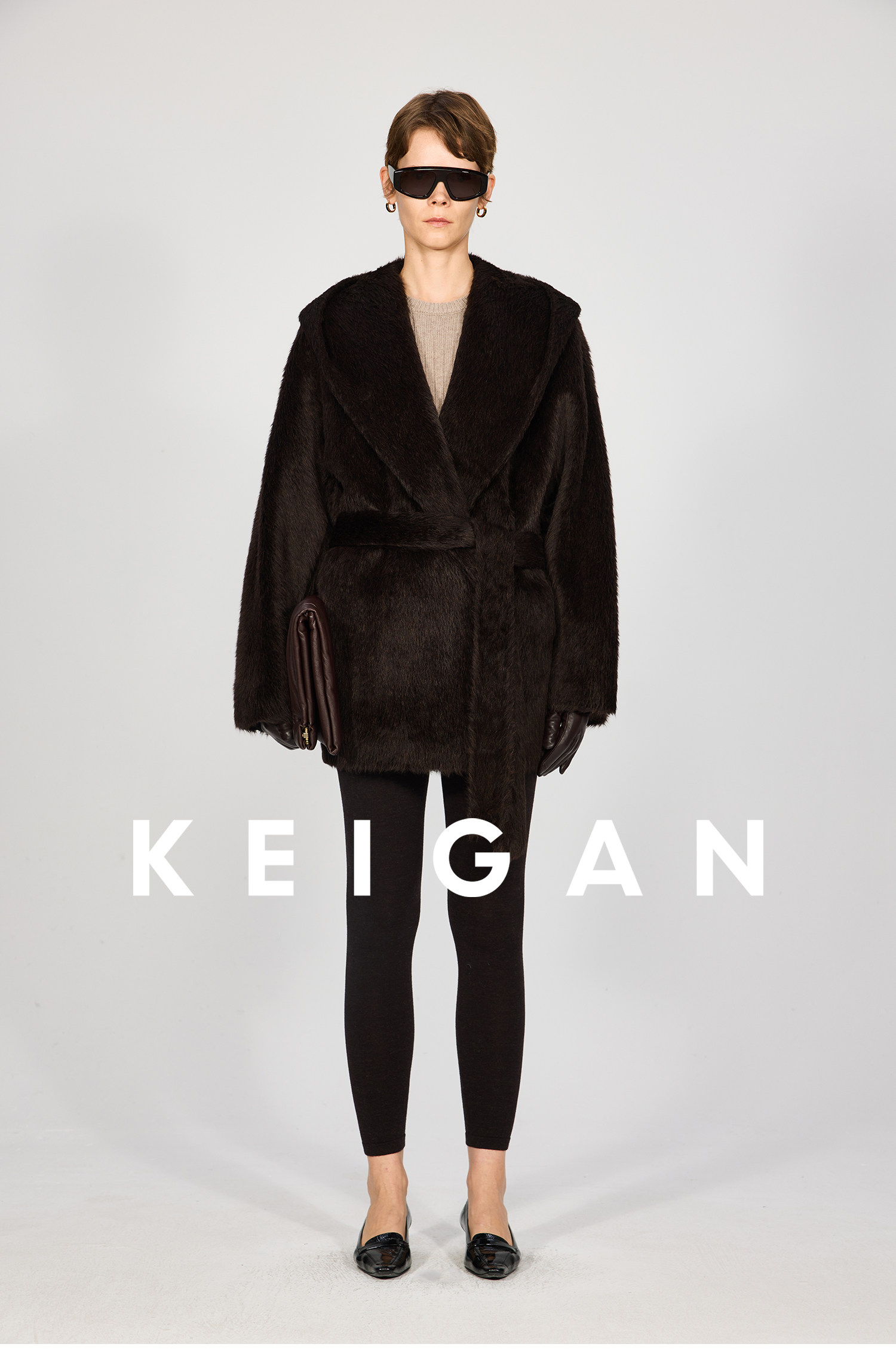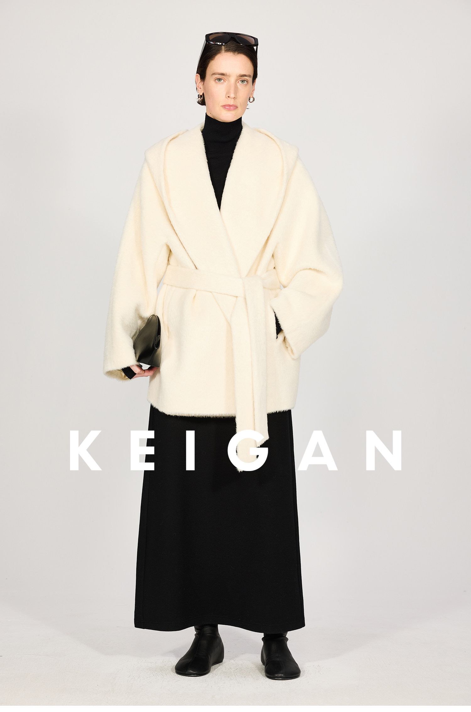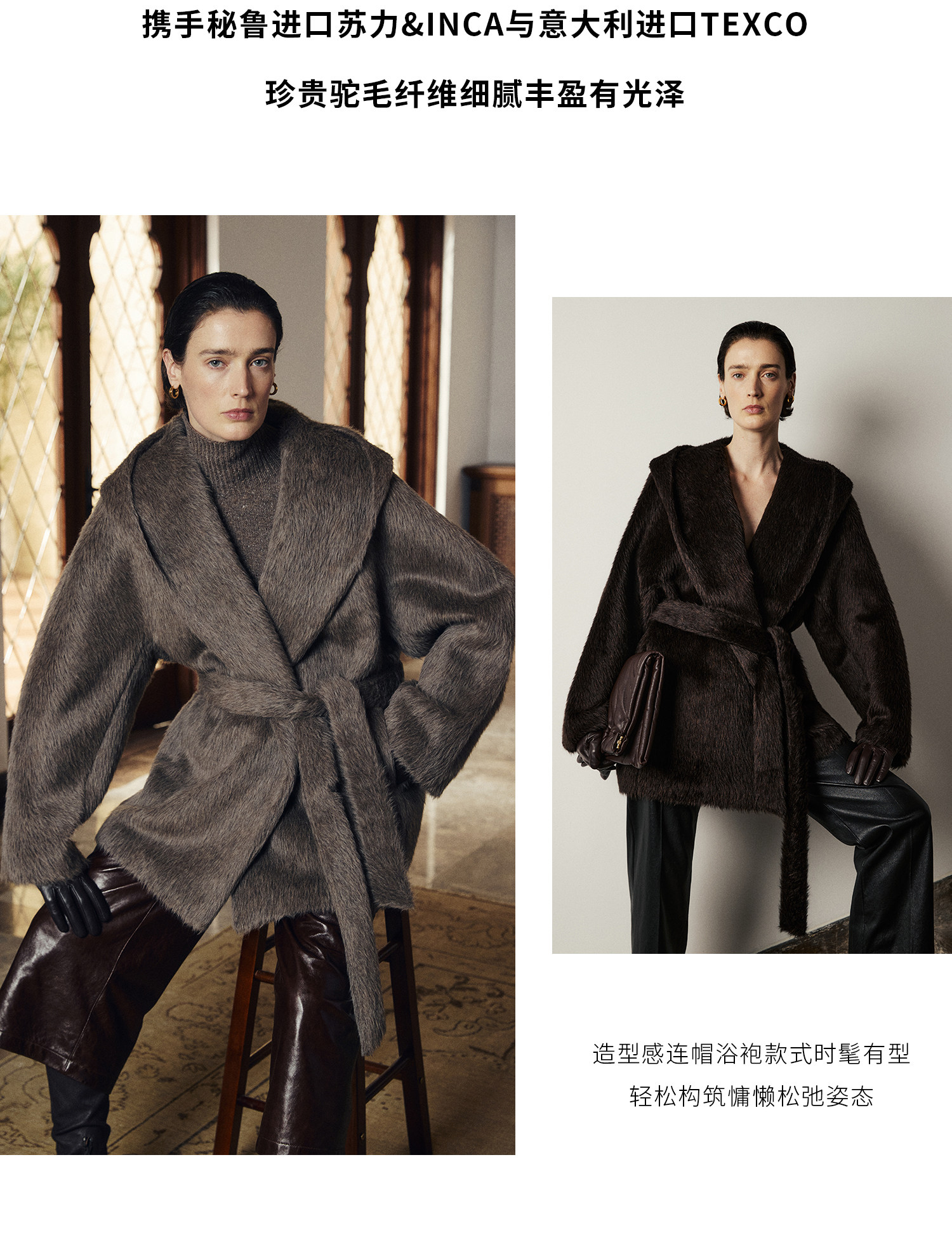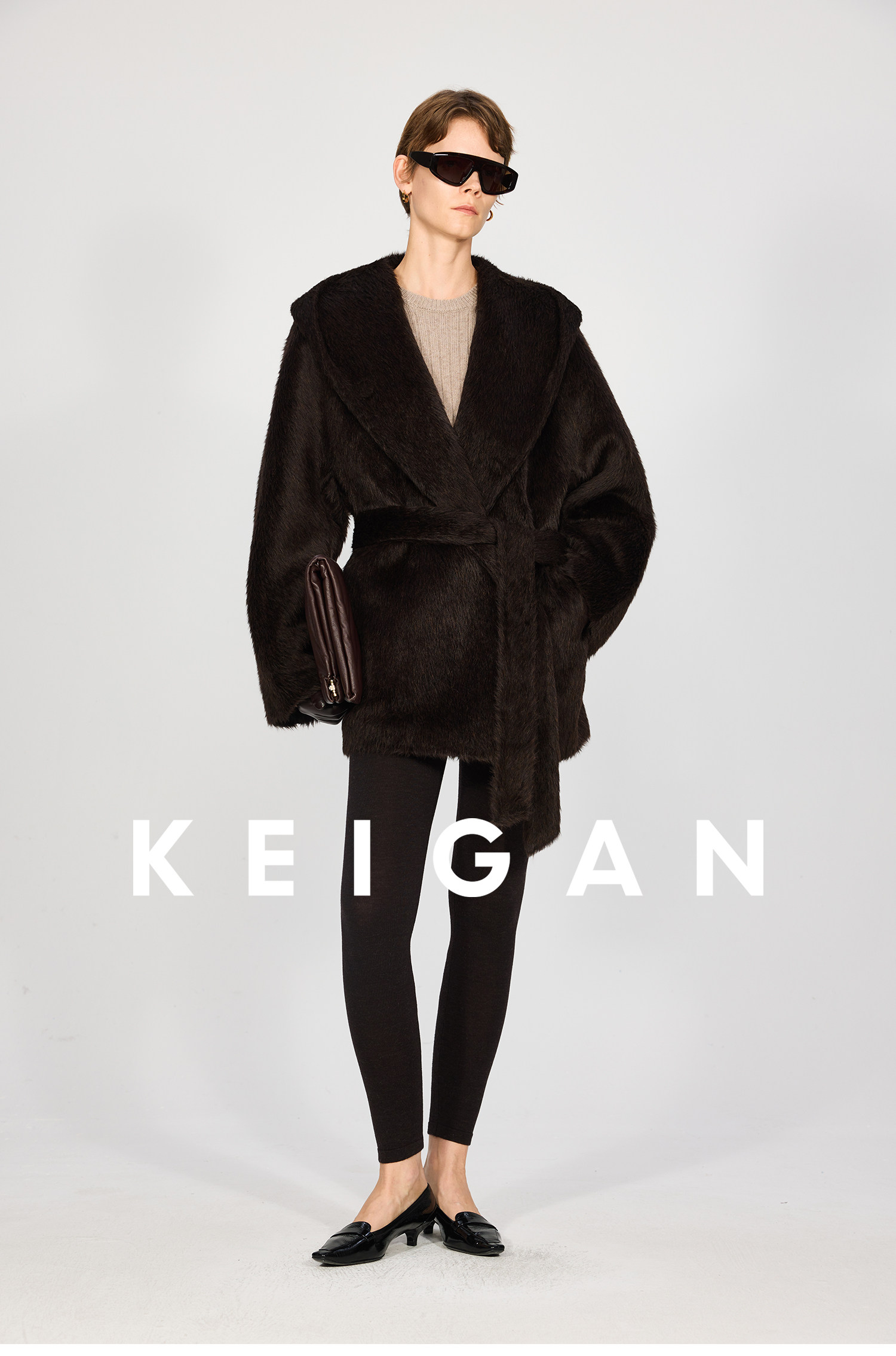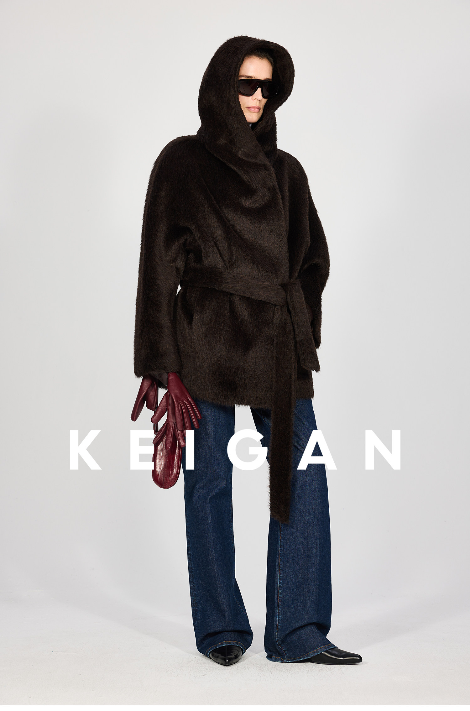 Black Label/Italian Texco Extra-Long Wool Peruvian Inca Natural Color Alpaca Hooded Bathrobe-Style Short Coat