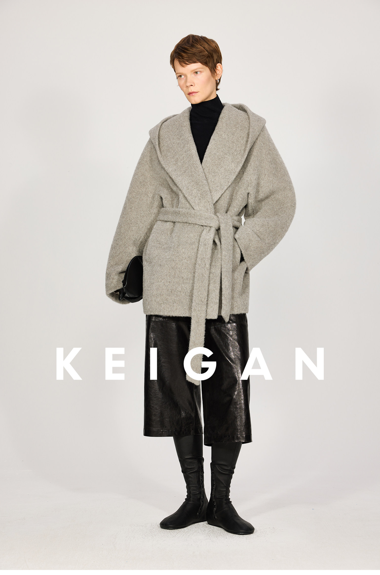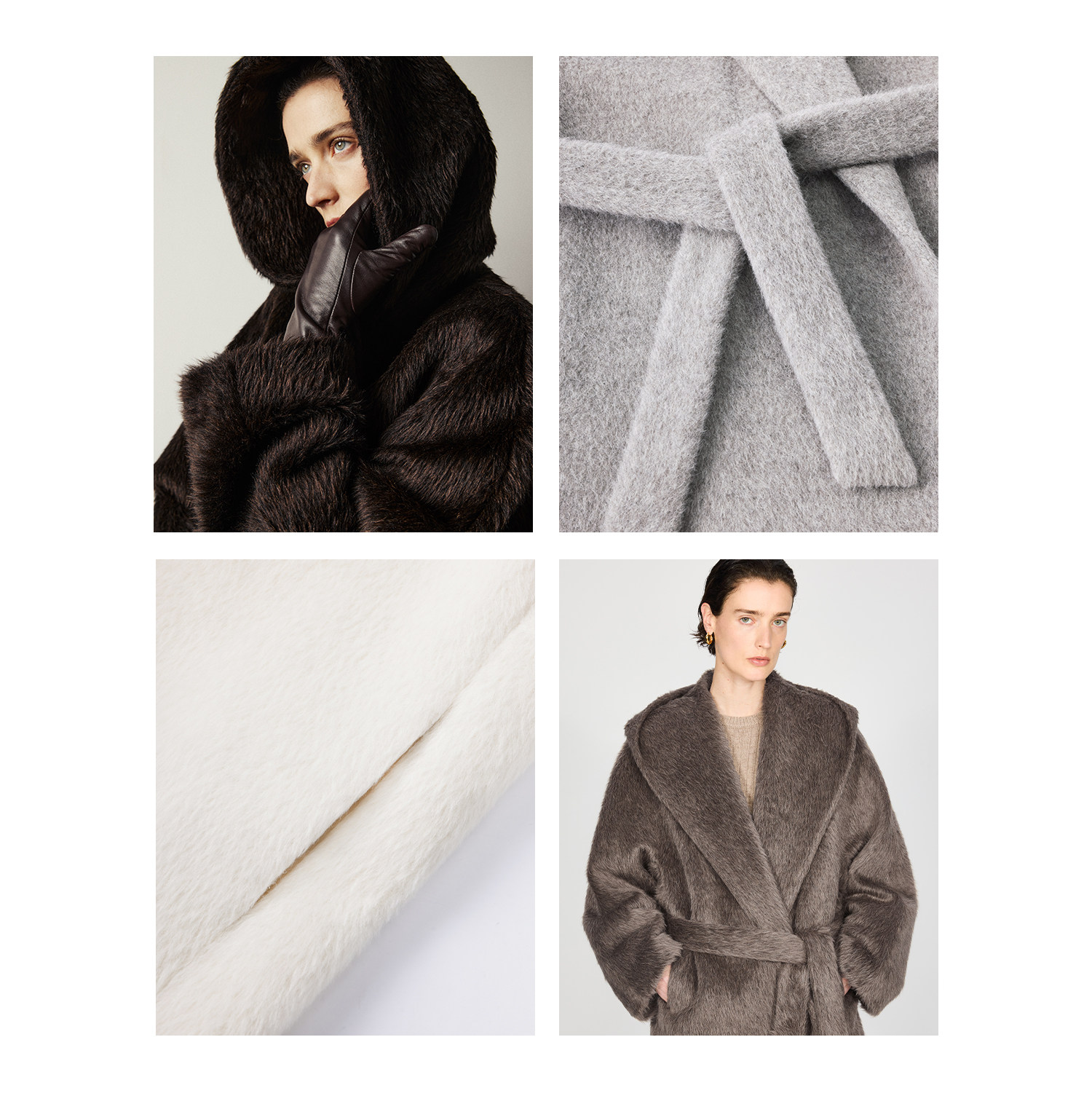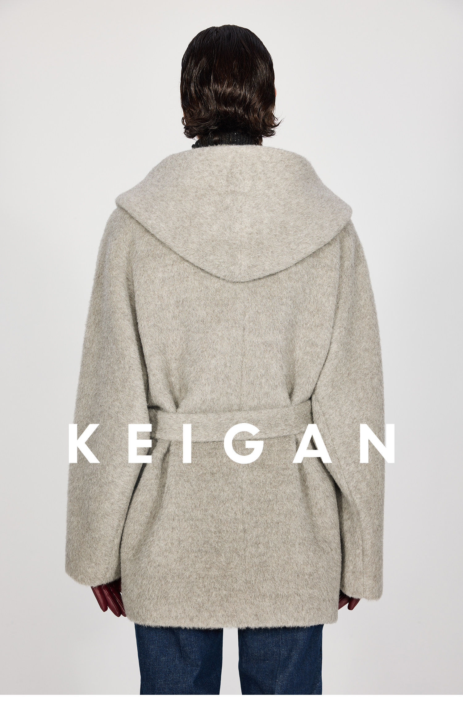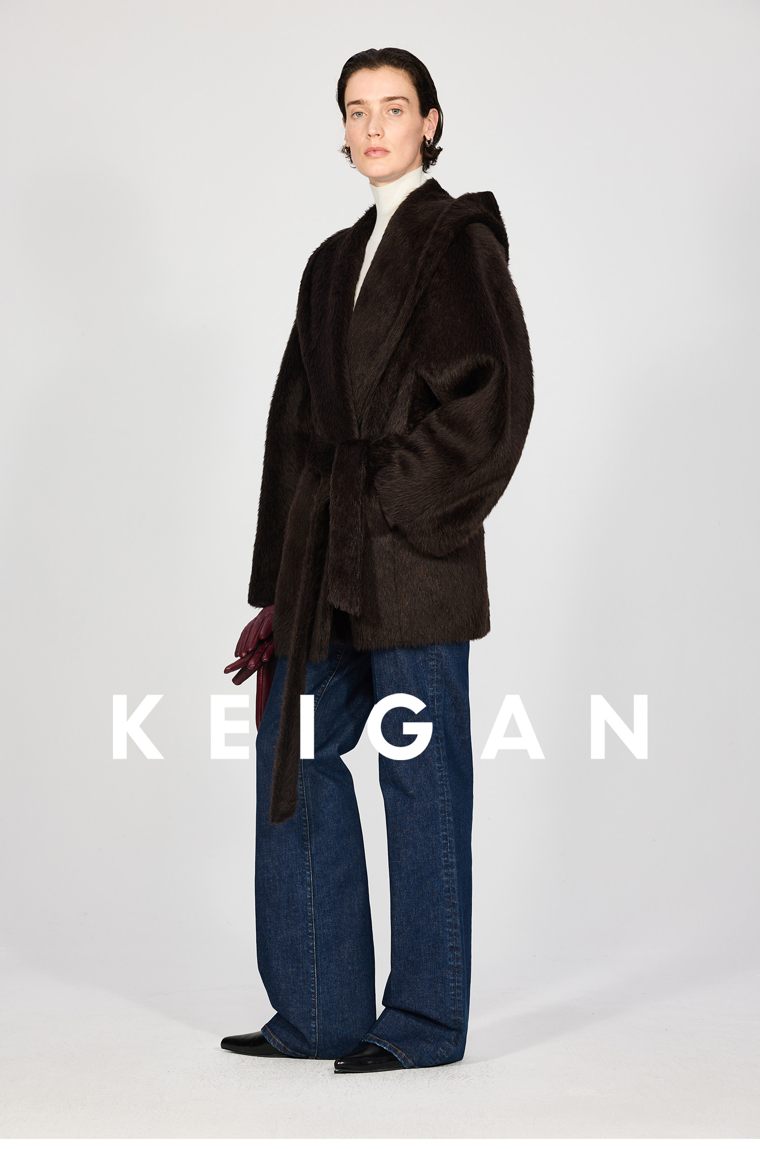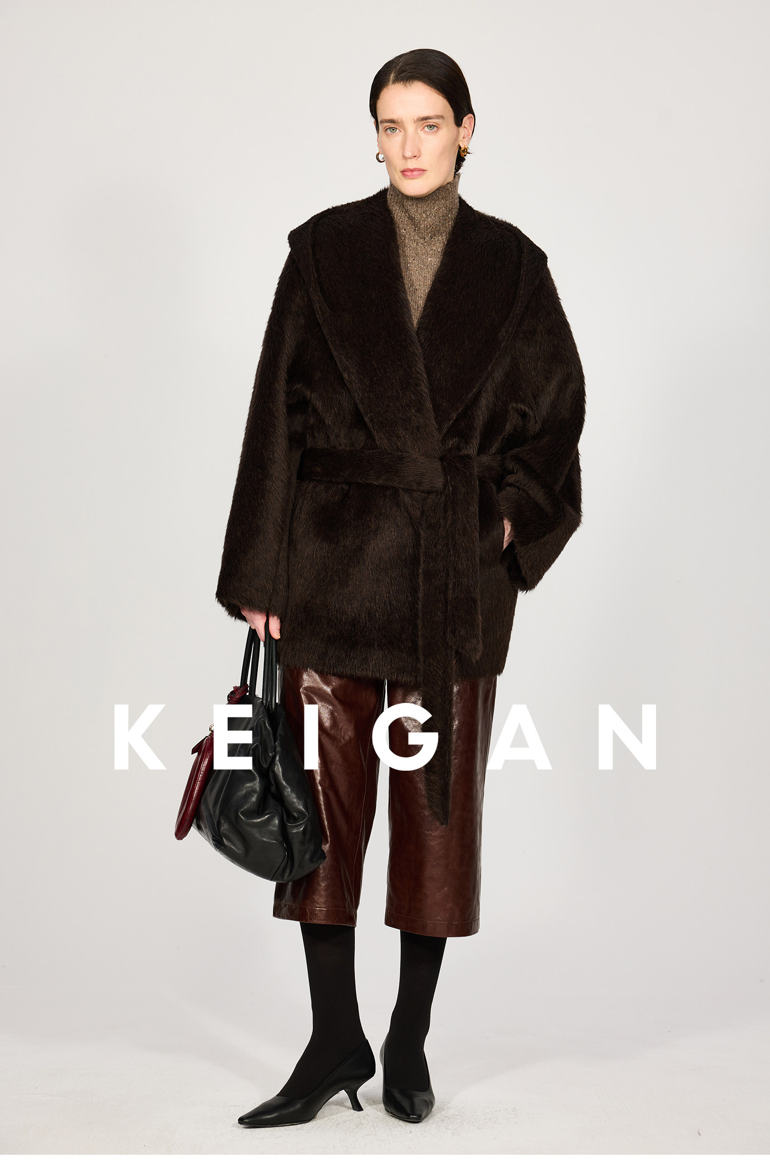 Black Label/Italian Texco Extra-Long Wool Peruvian Inca Natural Color Alpaca Hooded Bathrobe-Style Short Coat