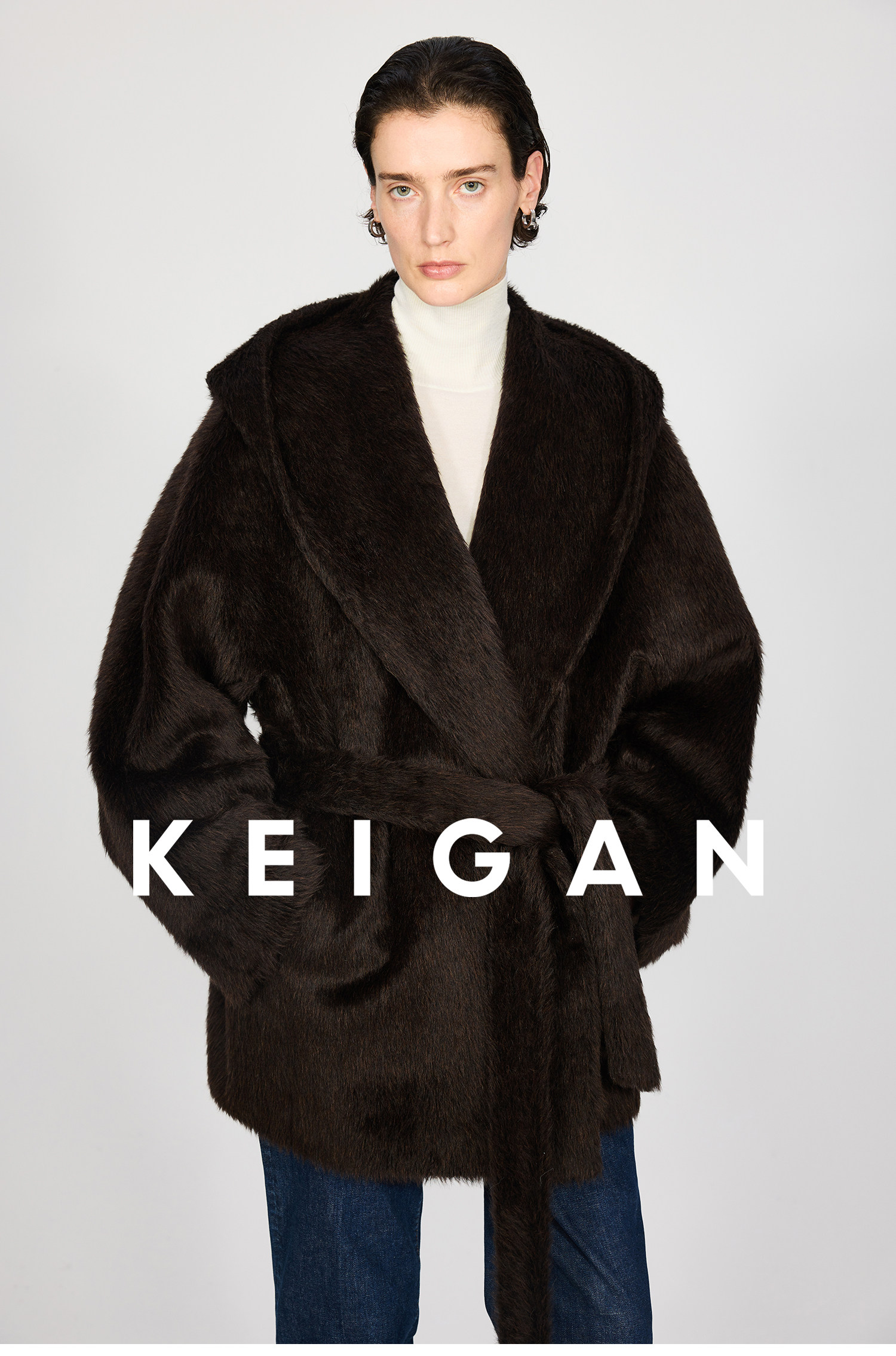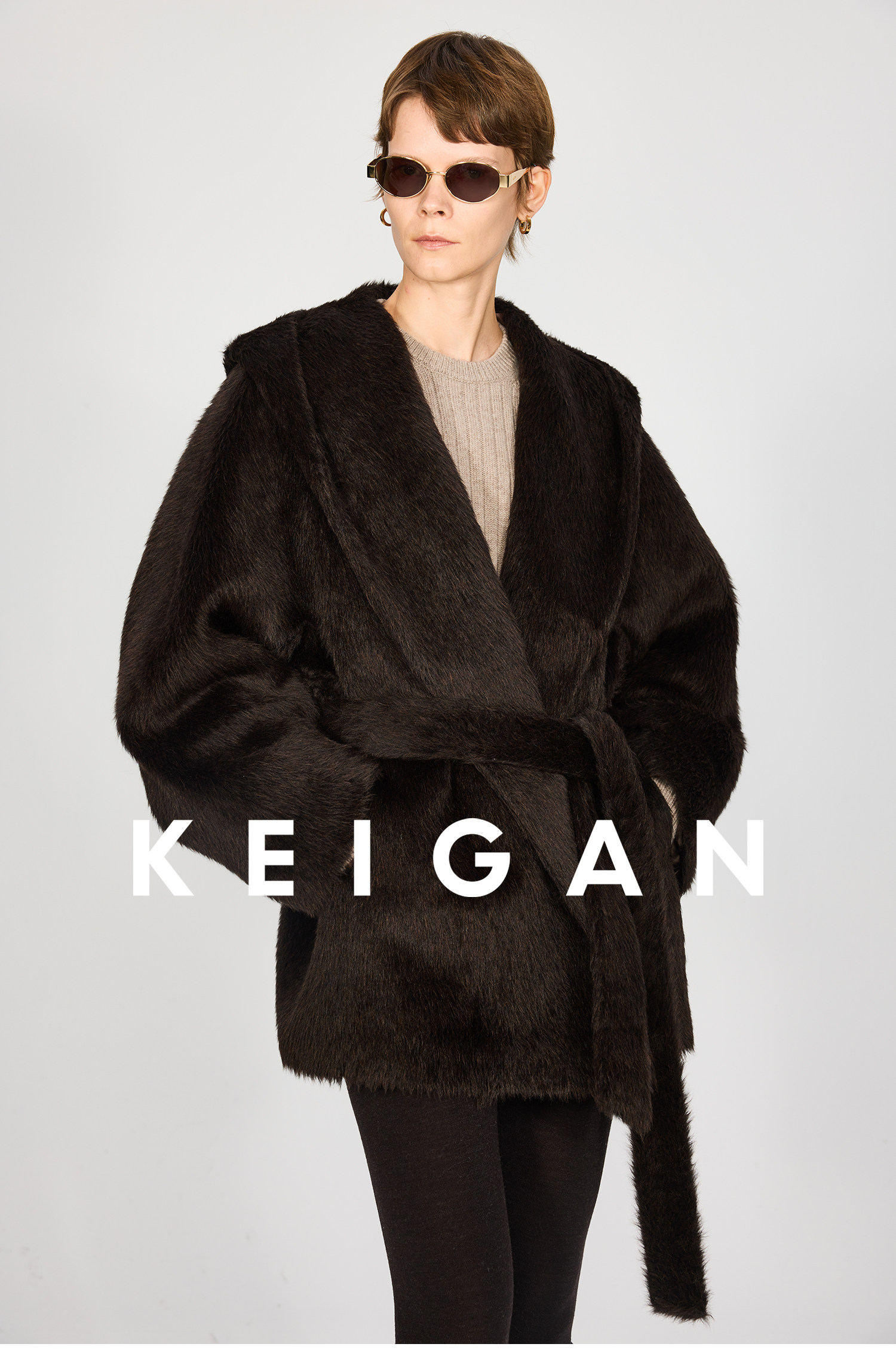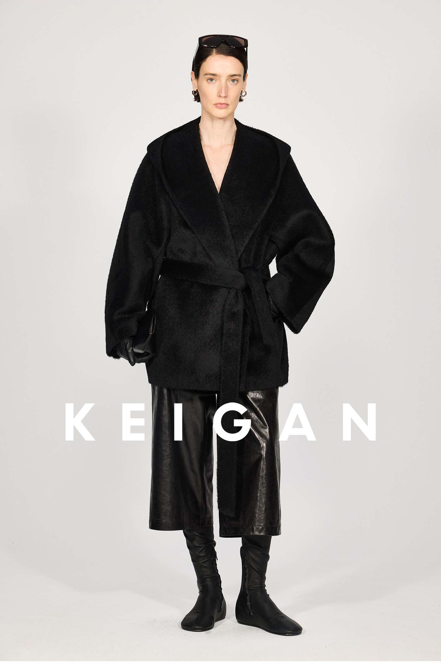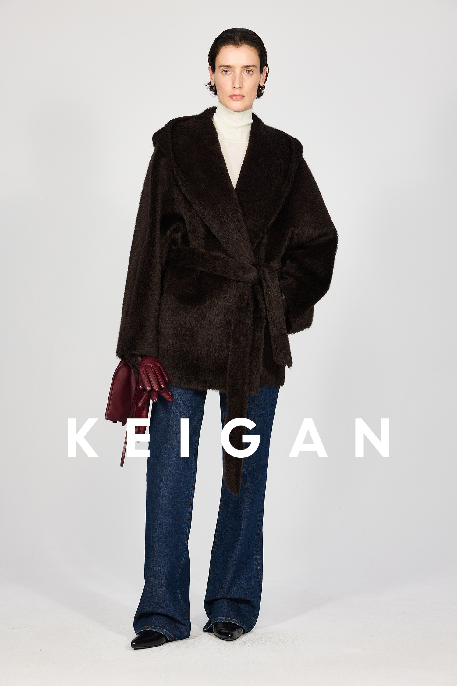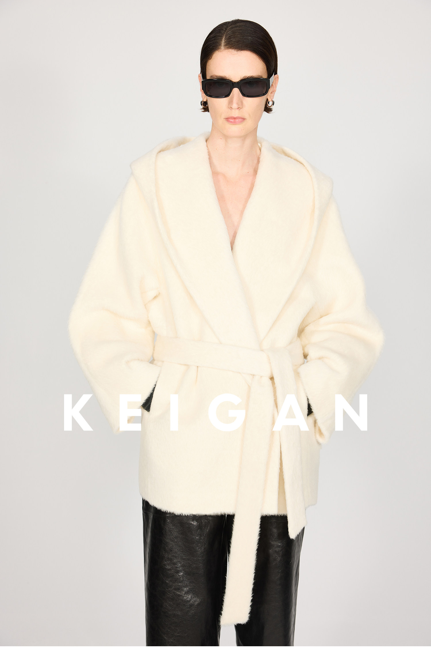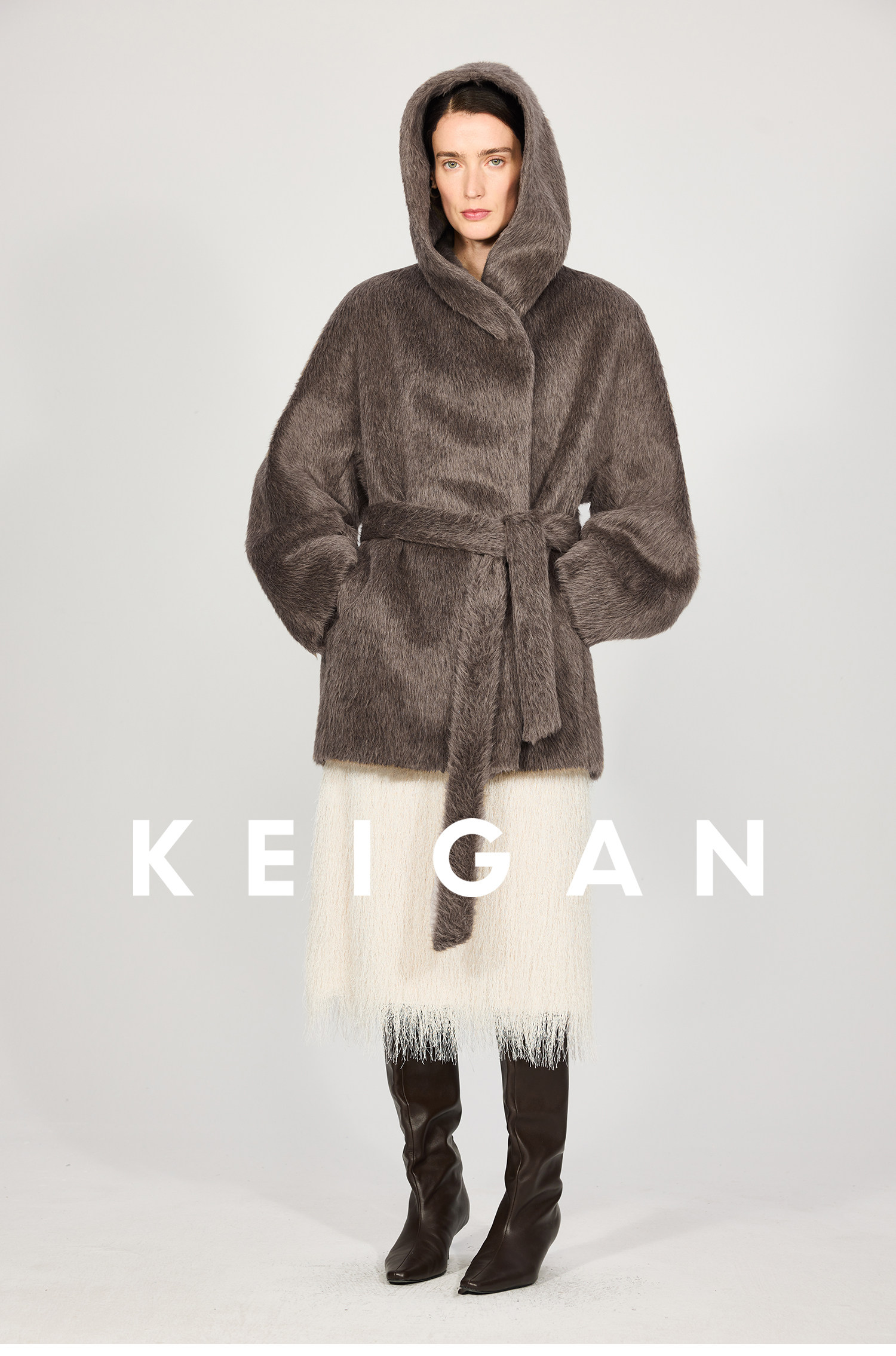 Black Label/Italian Texco Extra-Long Wool Peruvian Inca Natural Color Alpaca Hooded Bathrobe-Style Short Coat