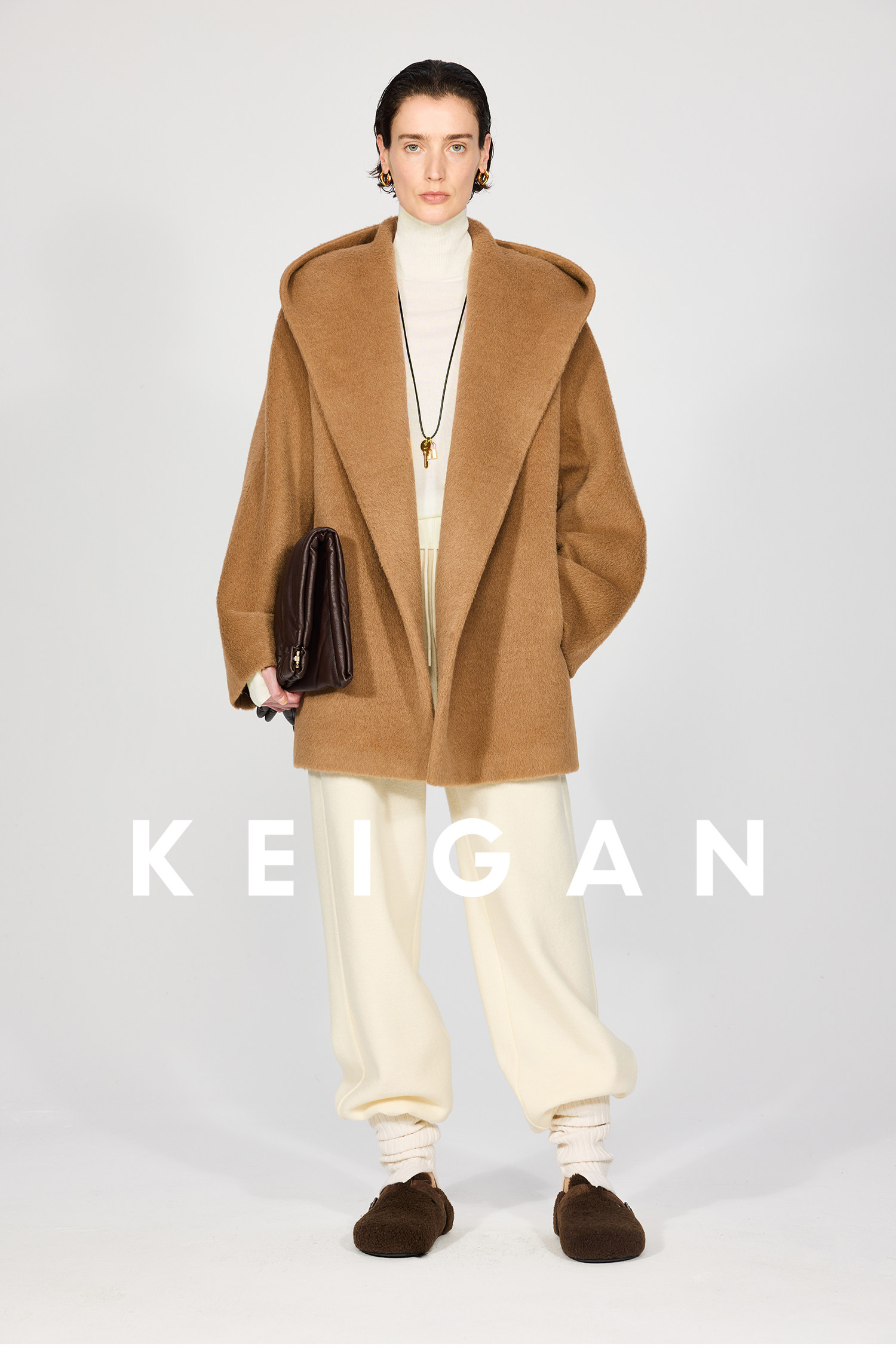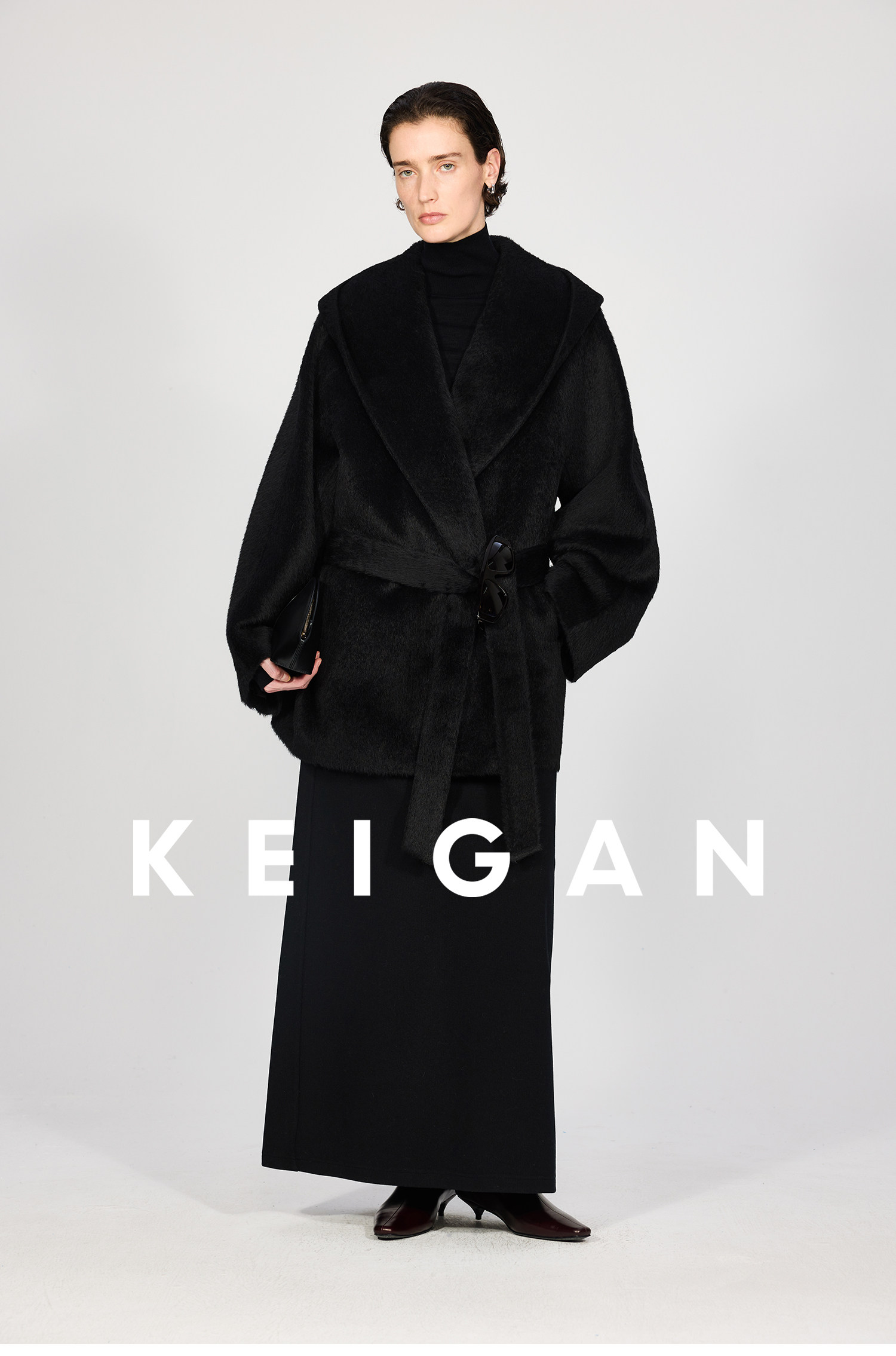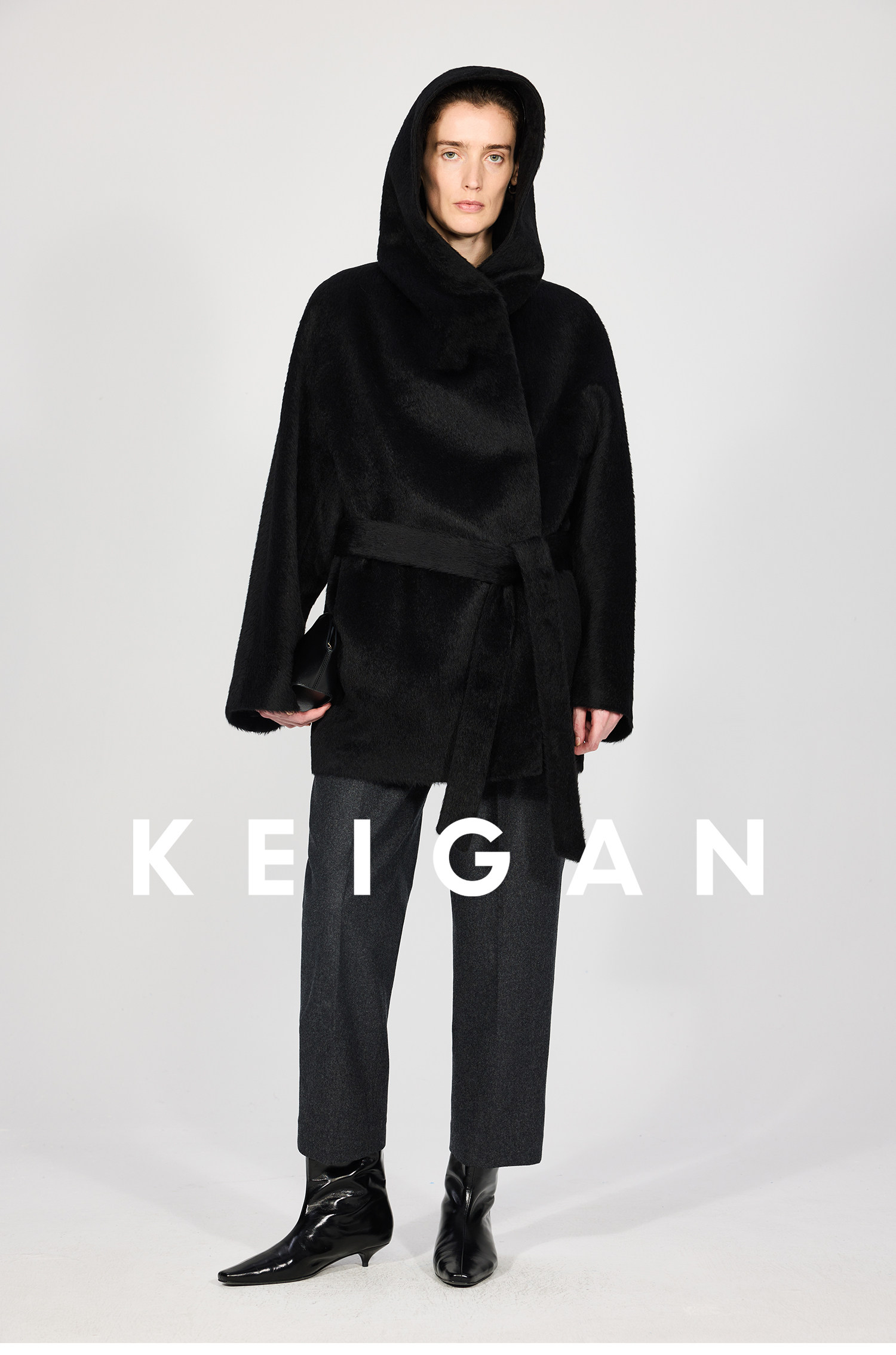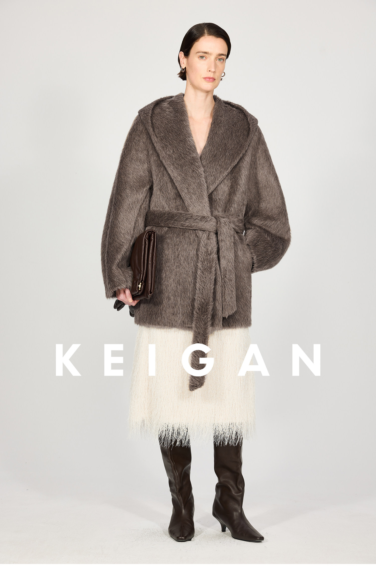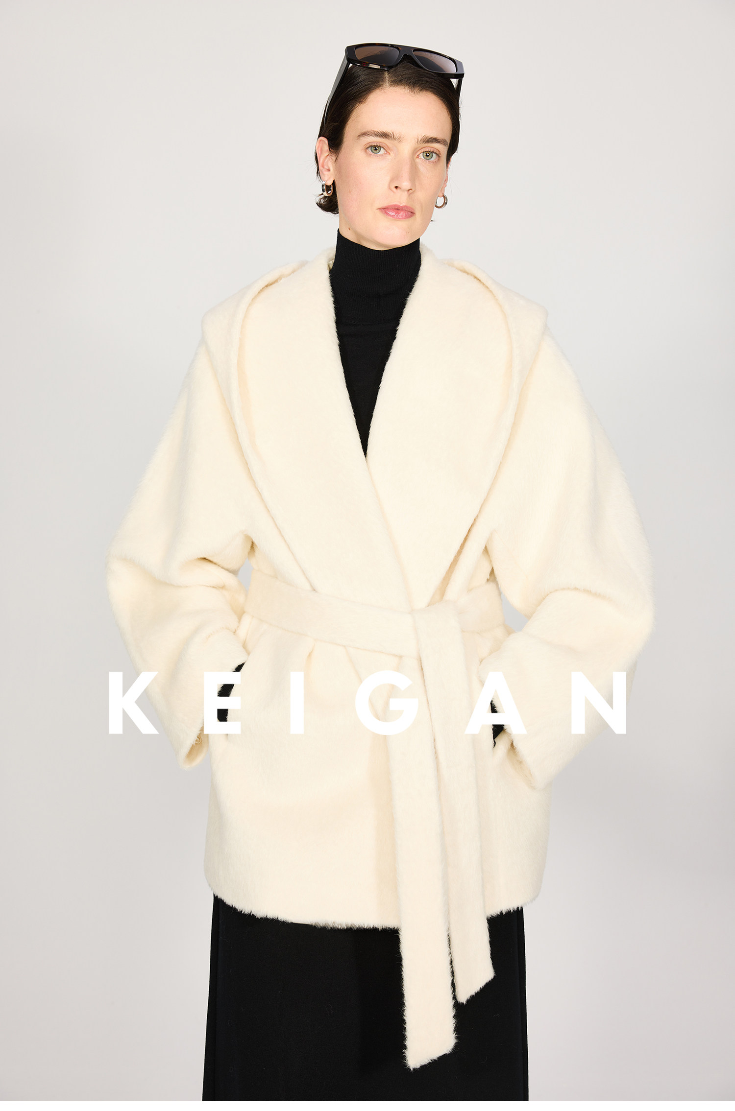 Black Label/Italian Texco Extra-Long Wool Peruvian Inca Natural Color Alpaca Hooded Bathrobe-Style Short Coat