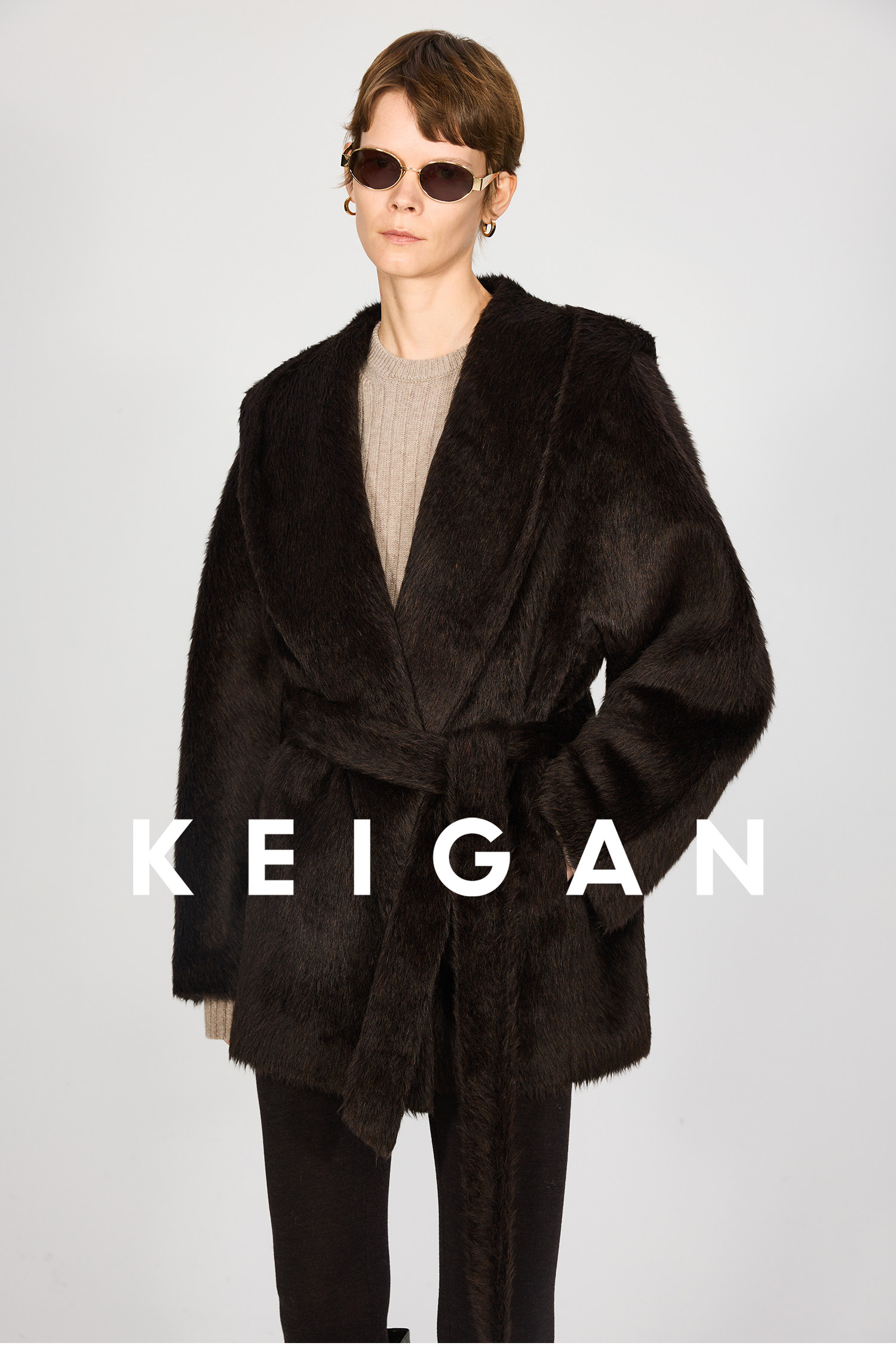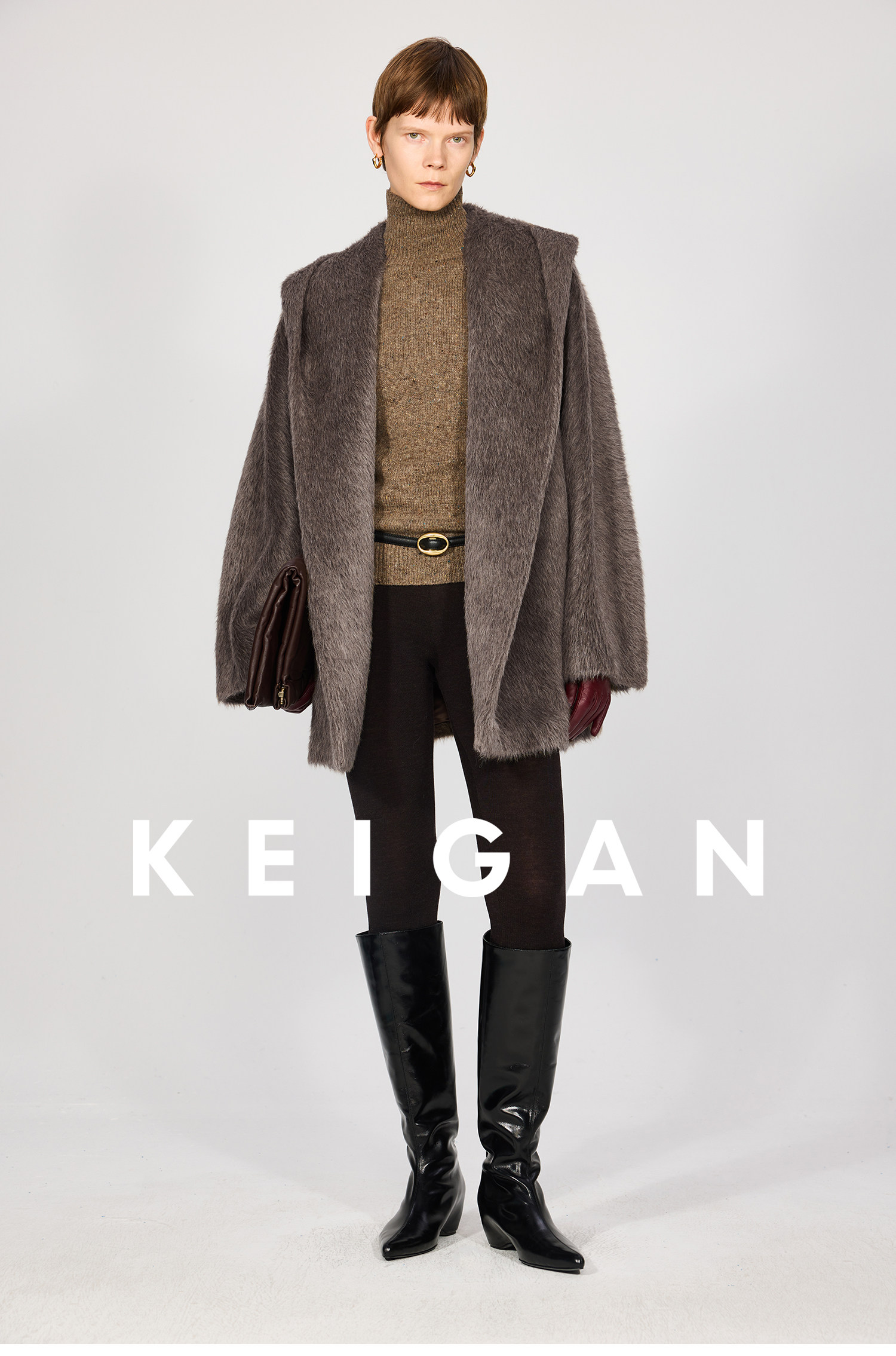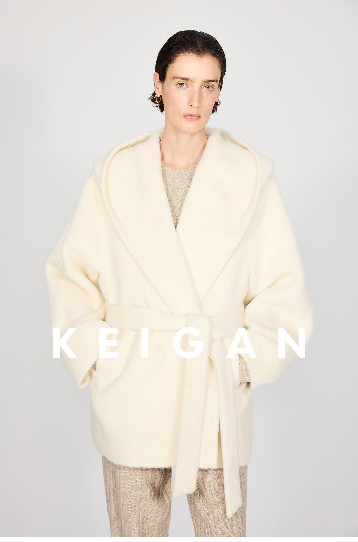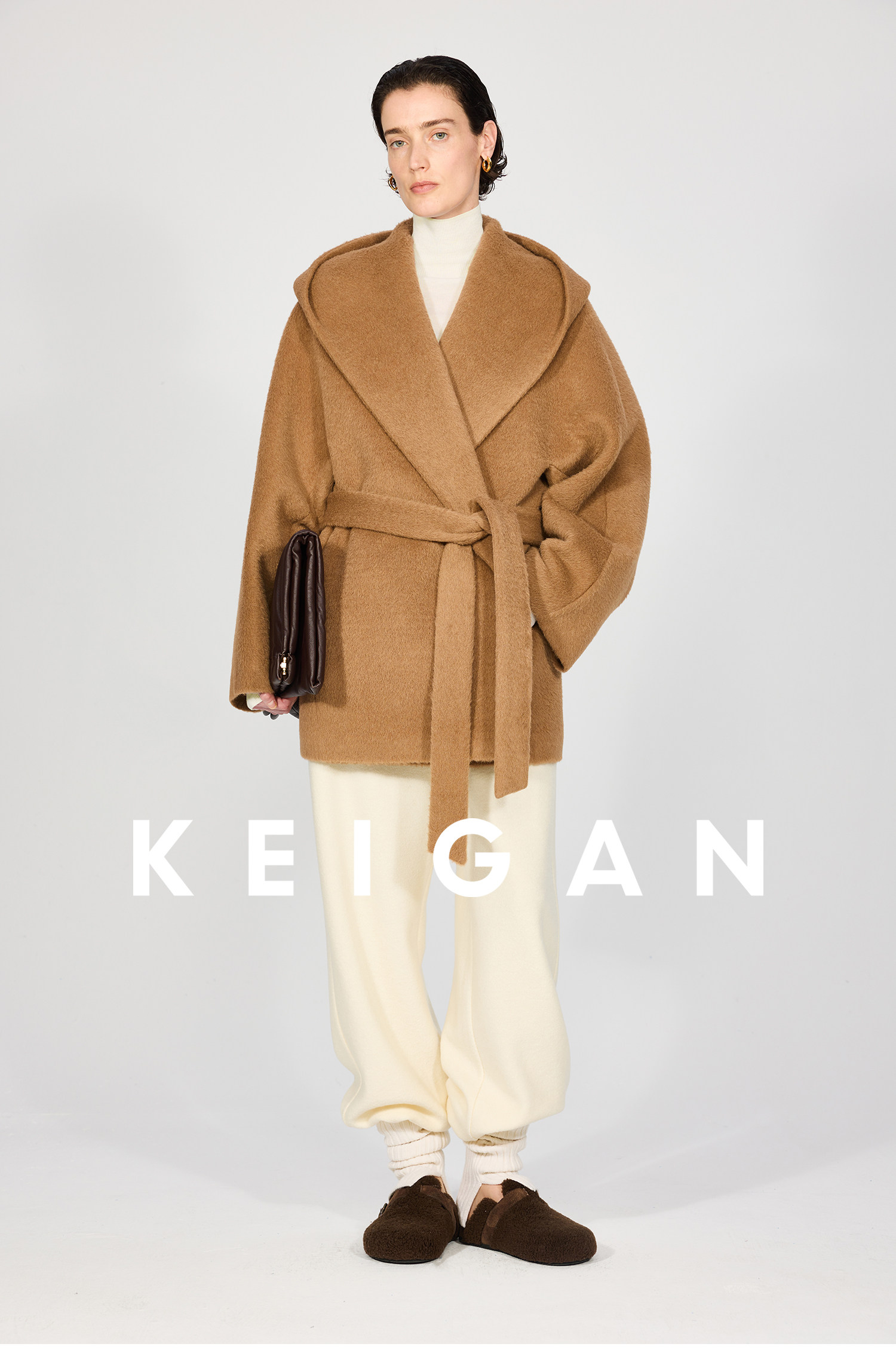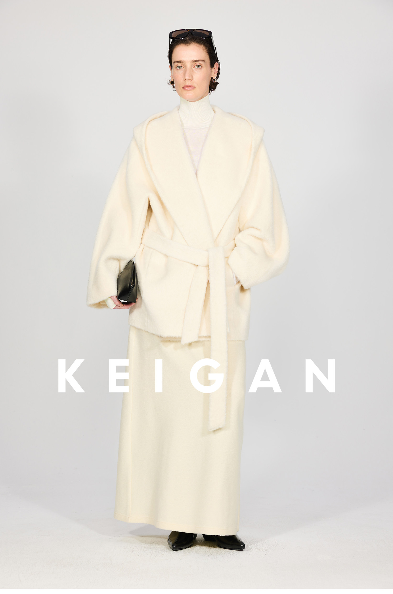 Black Label/Italian Texco Extra-Long Wool Peruvian Inca Natural Color Alpaca Hooded Bathrobe-Style Short Coat