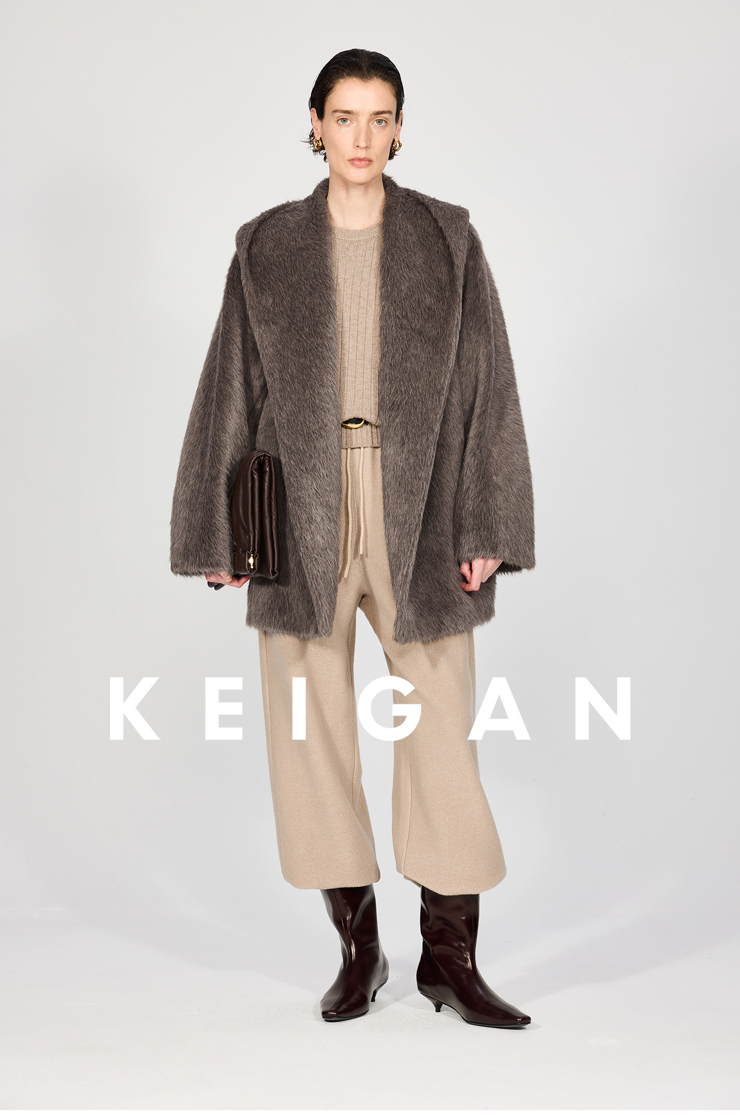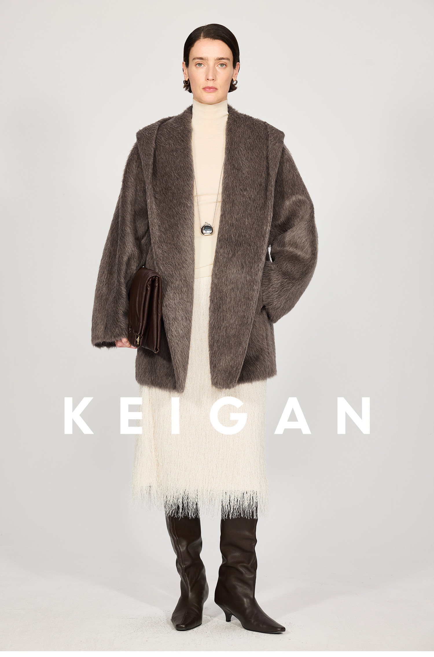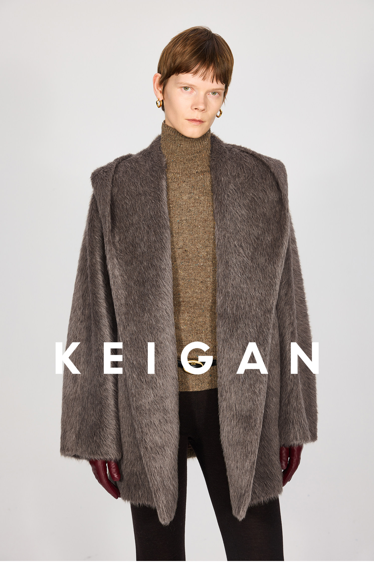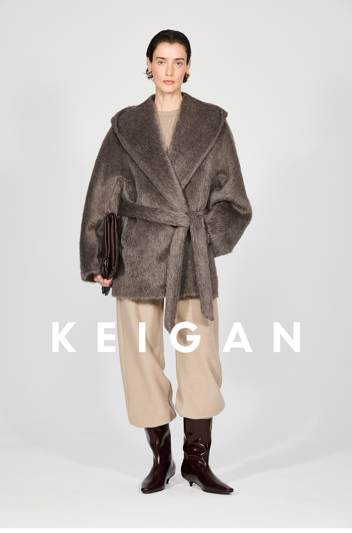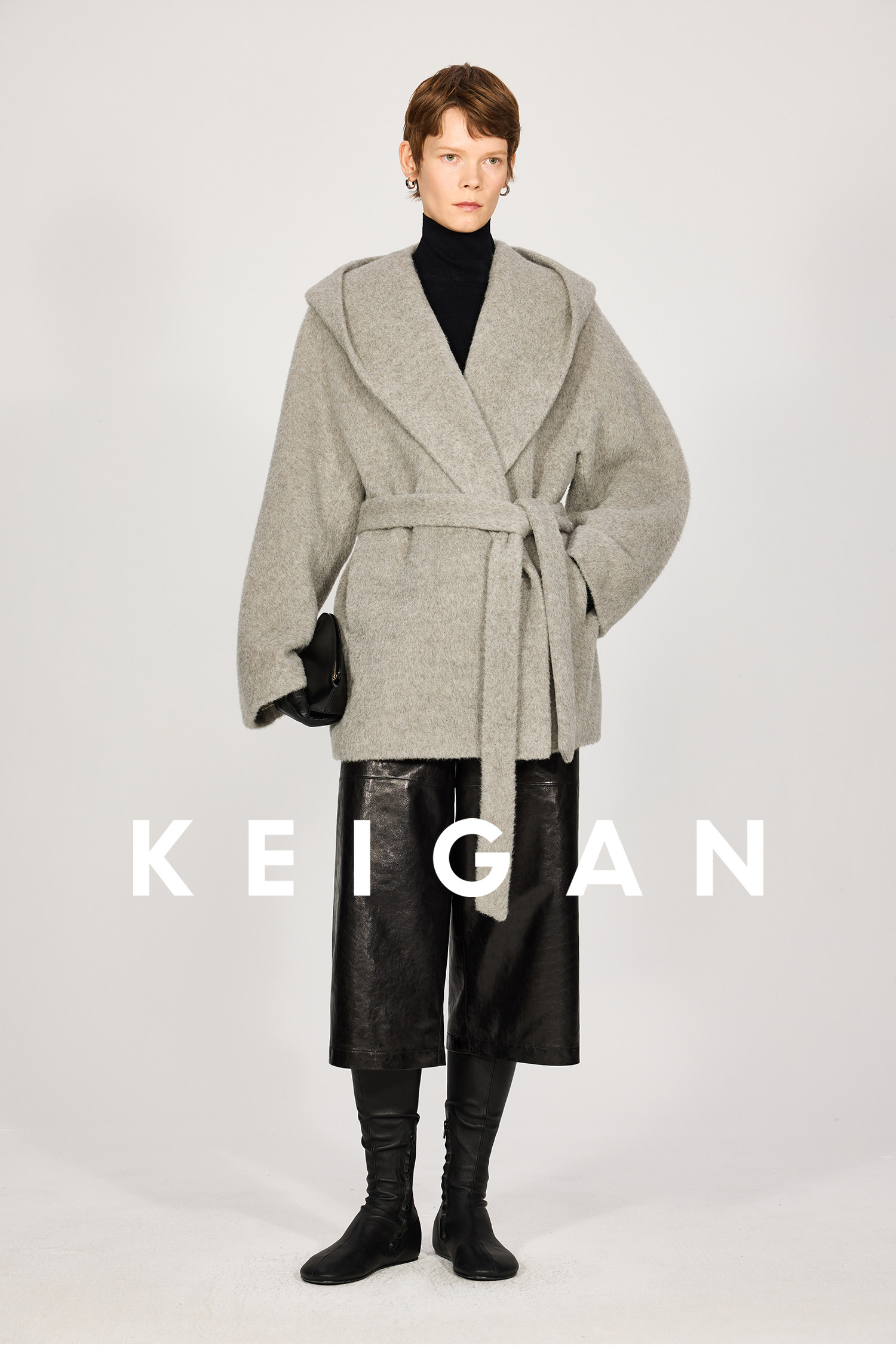 Black Label/Italian Texco Extra-Long Wool Peruvian Inca Natural Color Alpaca Hooded Bathrobe-Style Short Coat