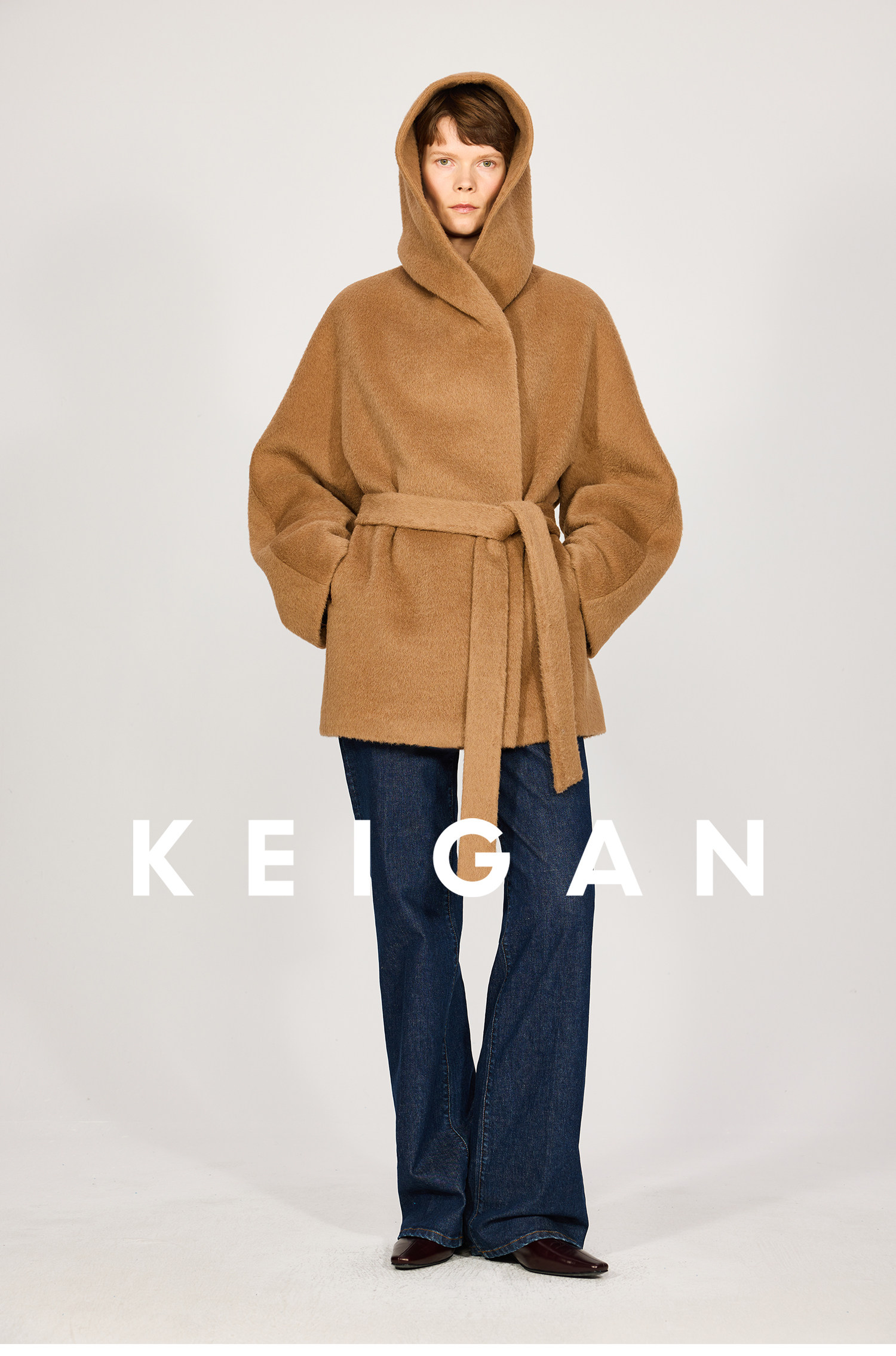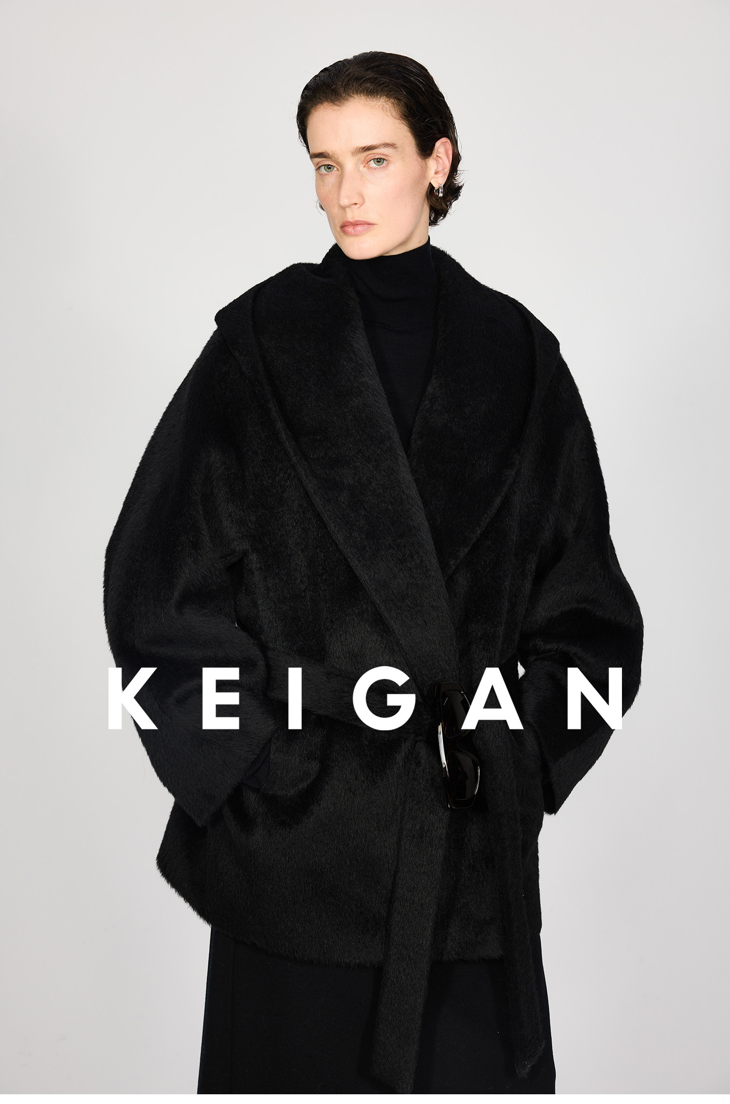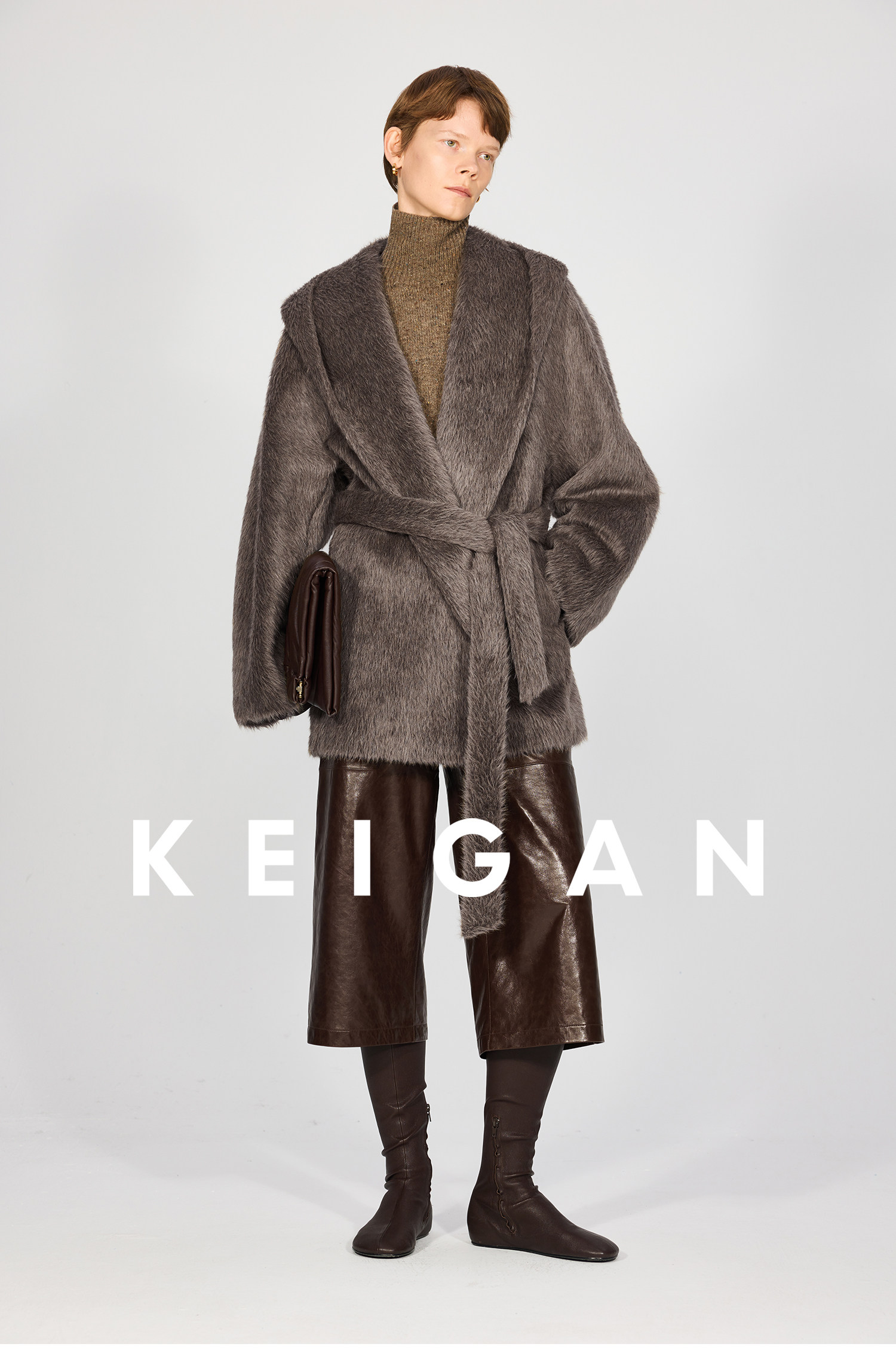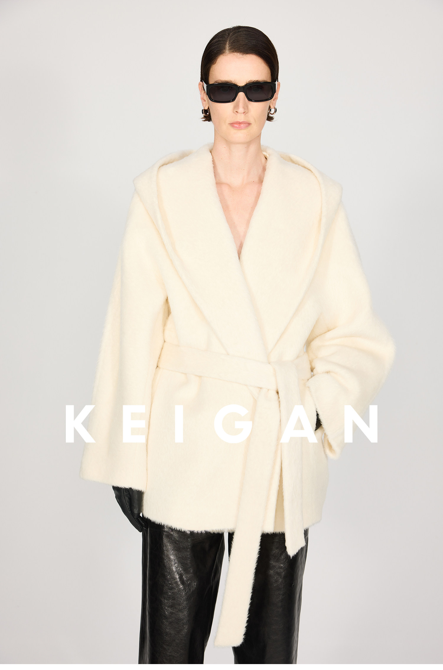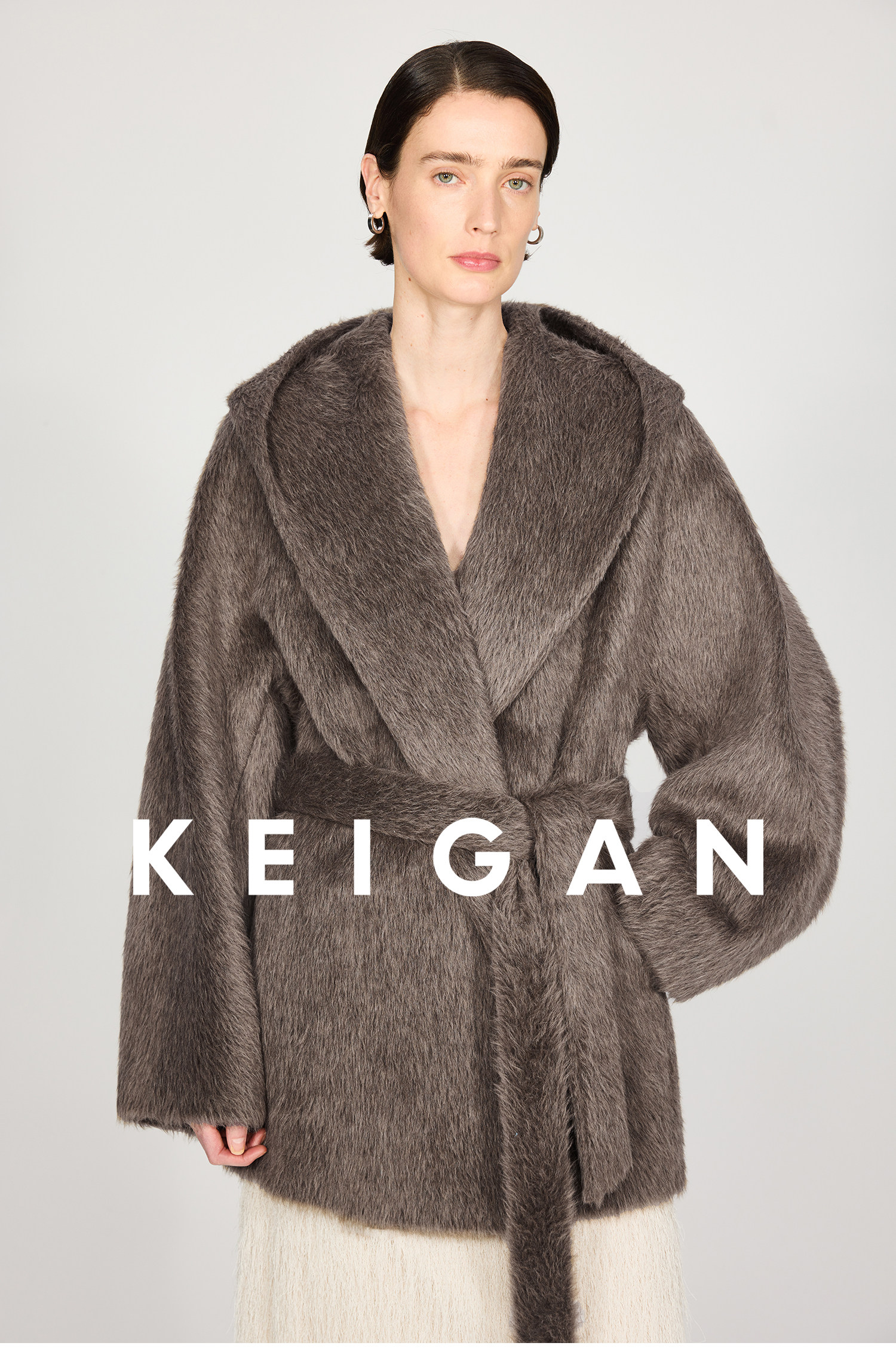 Black Label/Italian Texco Extra-Long Wool Peruvian Inca Natural Color Alpaca Hooded Bathrobe-Style Short Coat