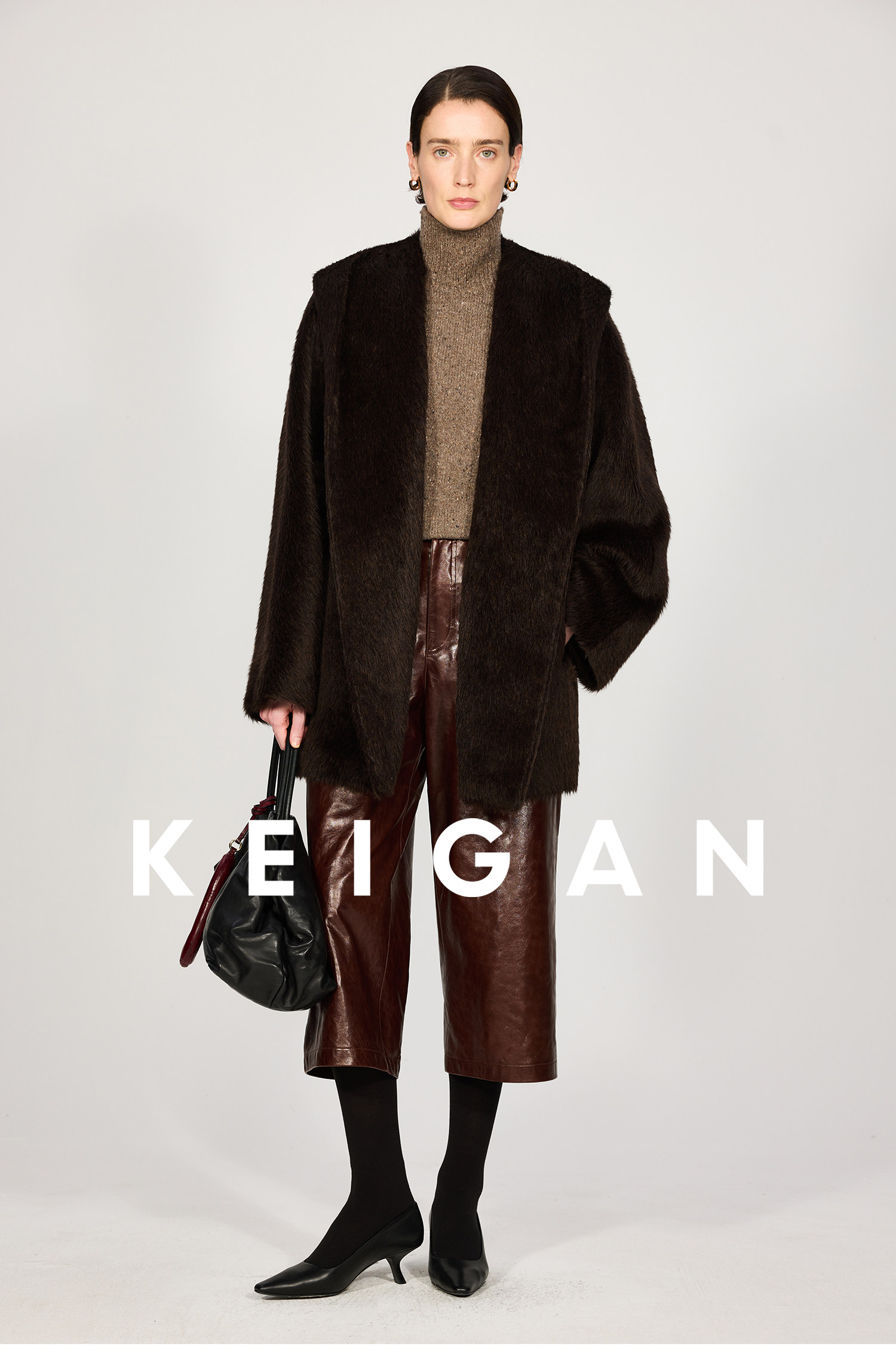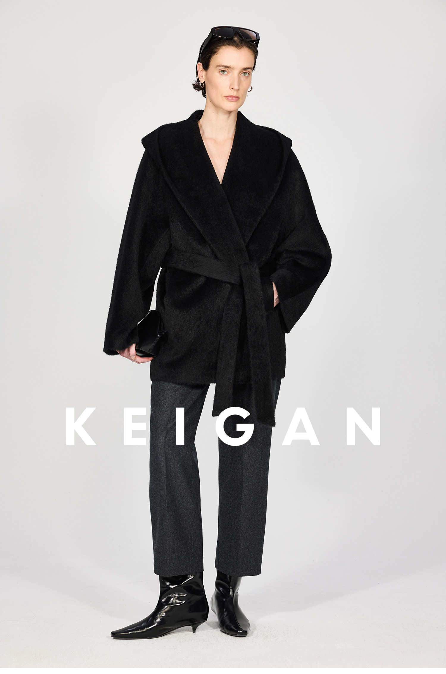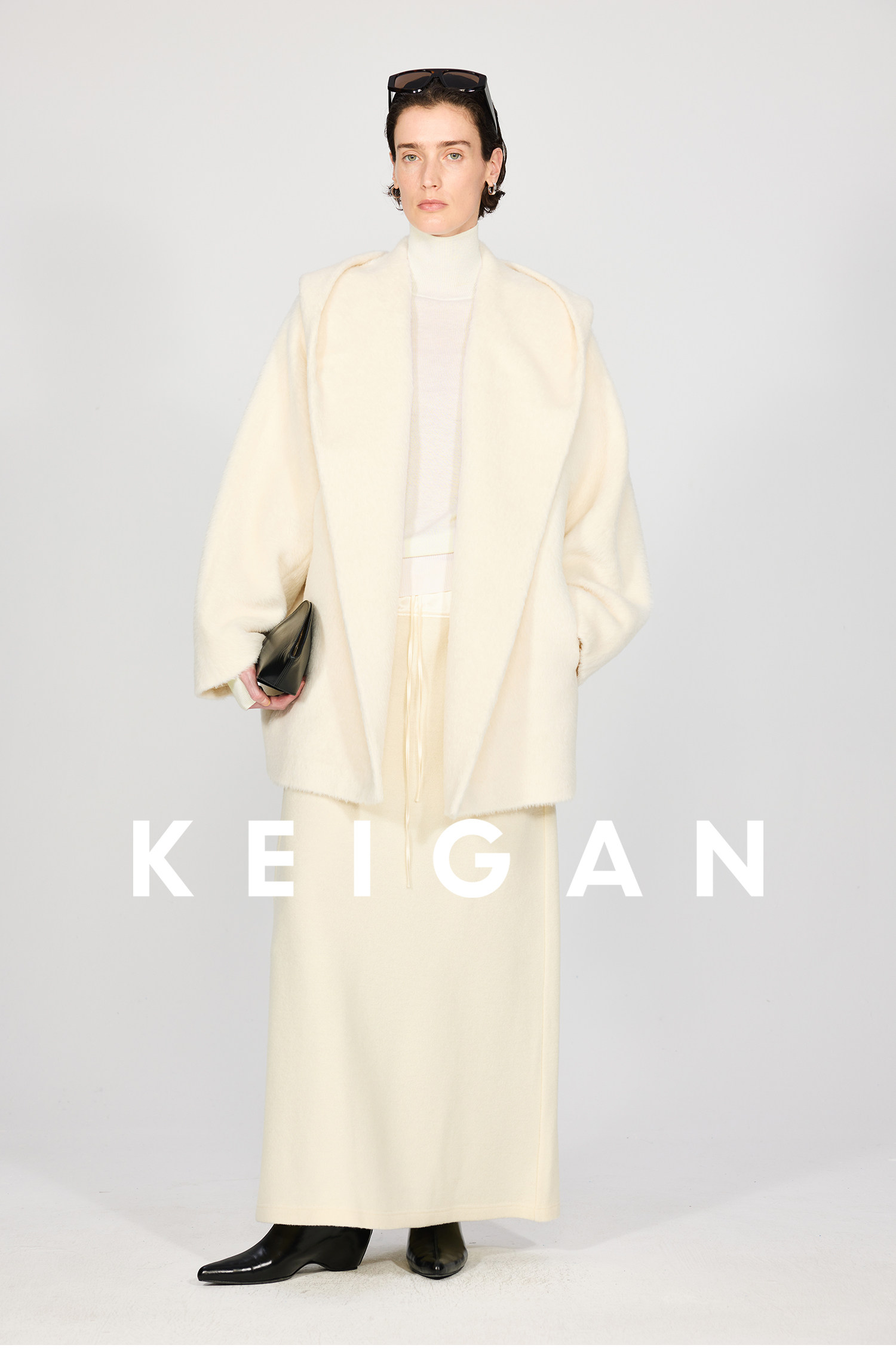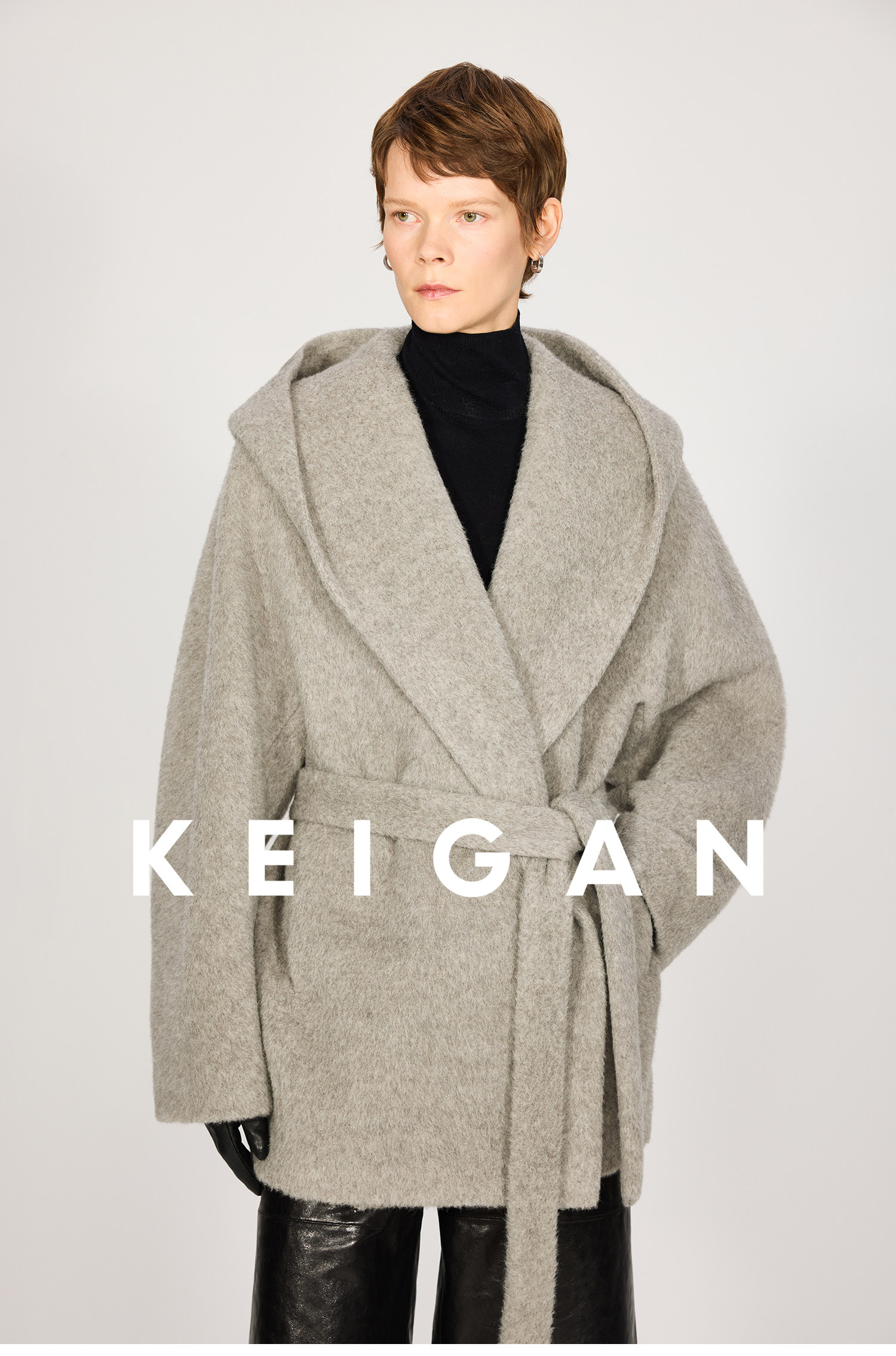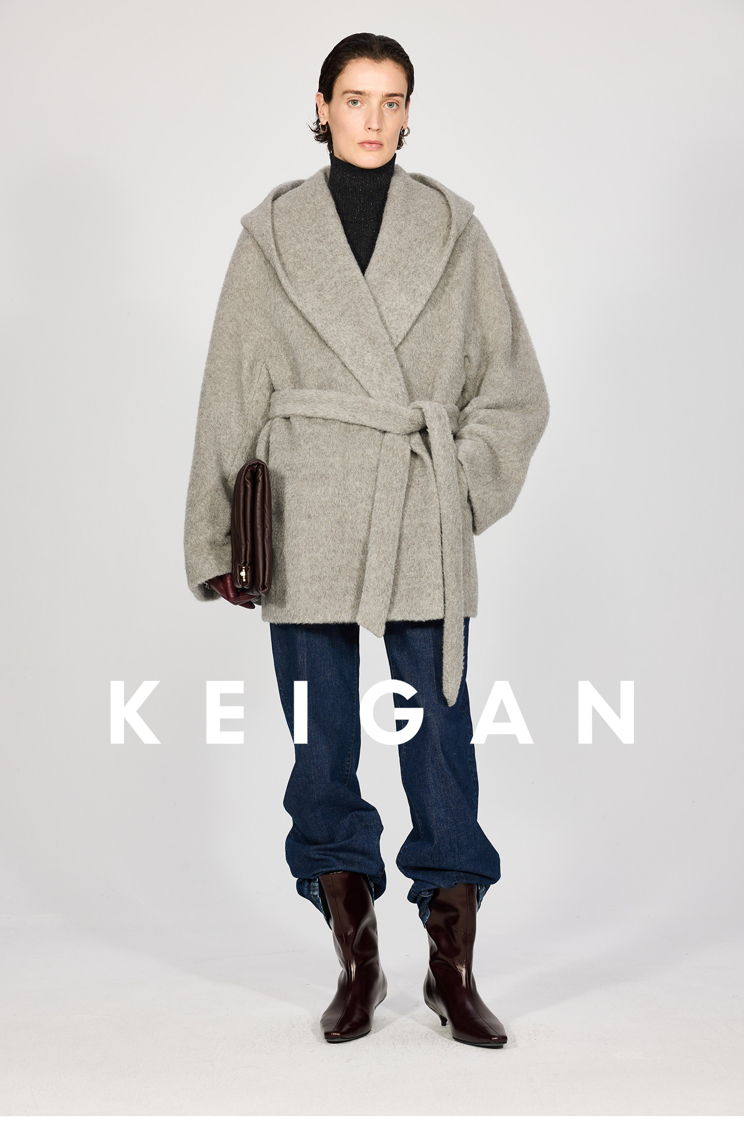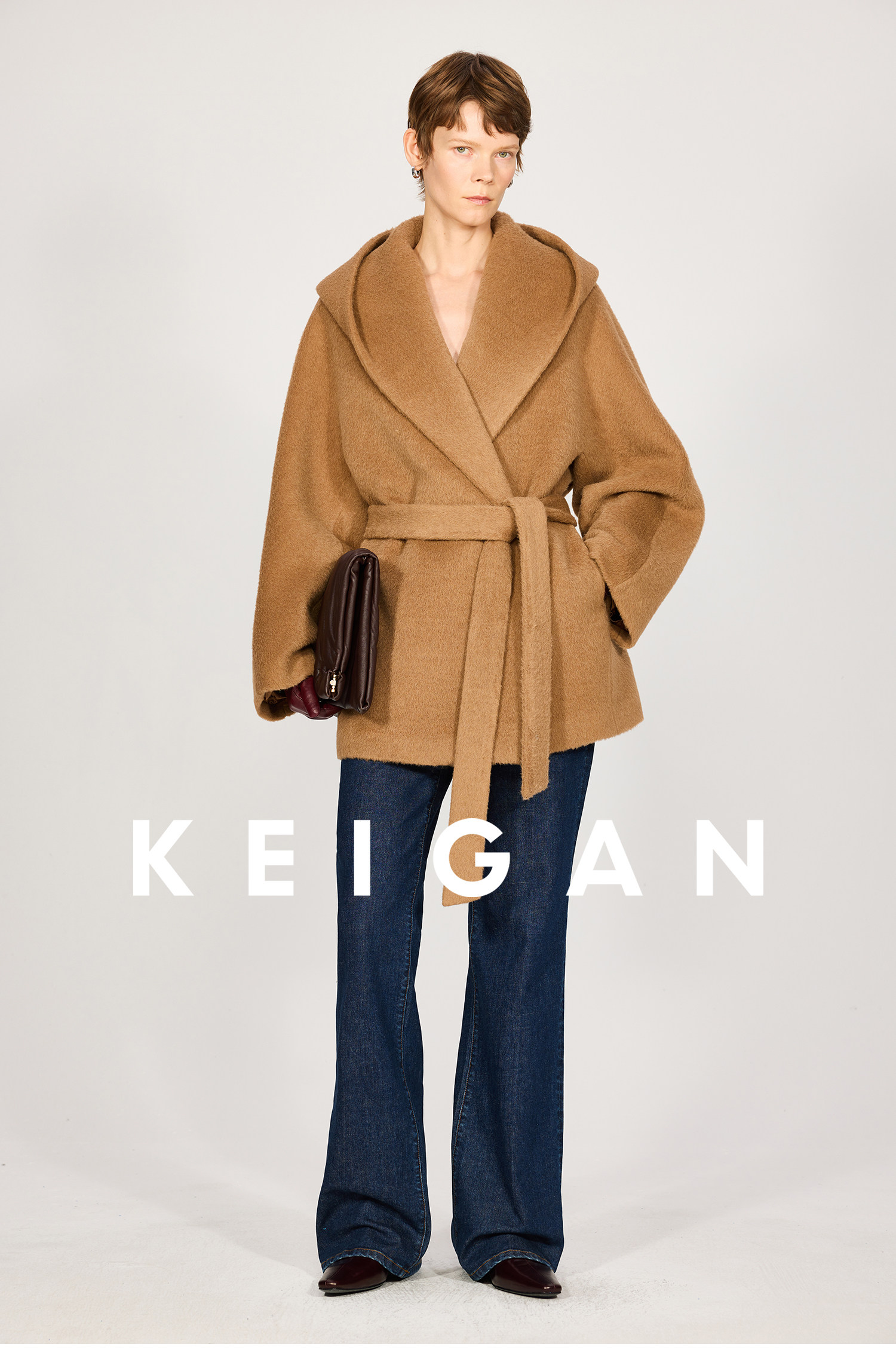 Black Label/Italian Texco Extra-Long Wool Peruvian Inca Natural Color Alpaca Hooded Bathrobe-Style Short Coat