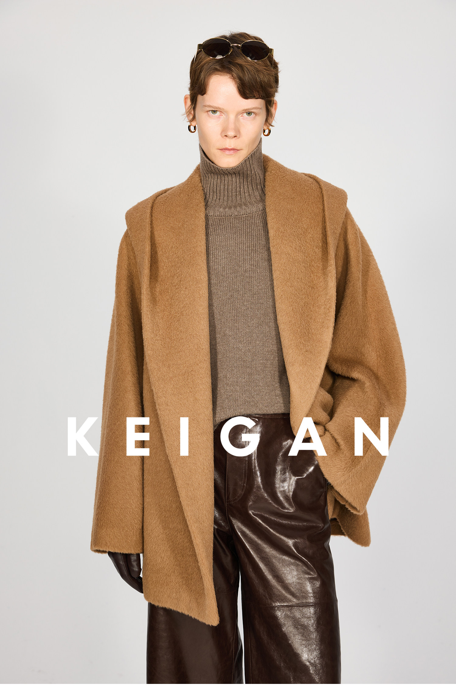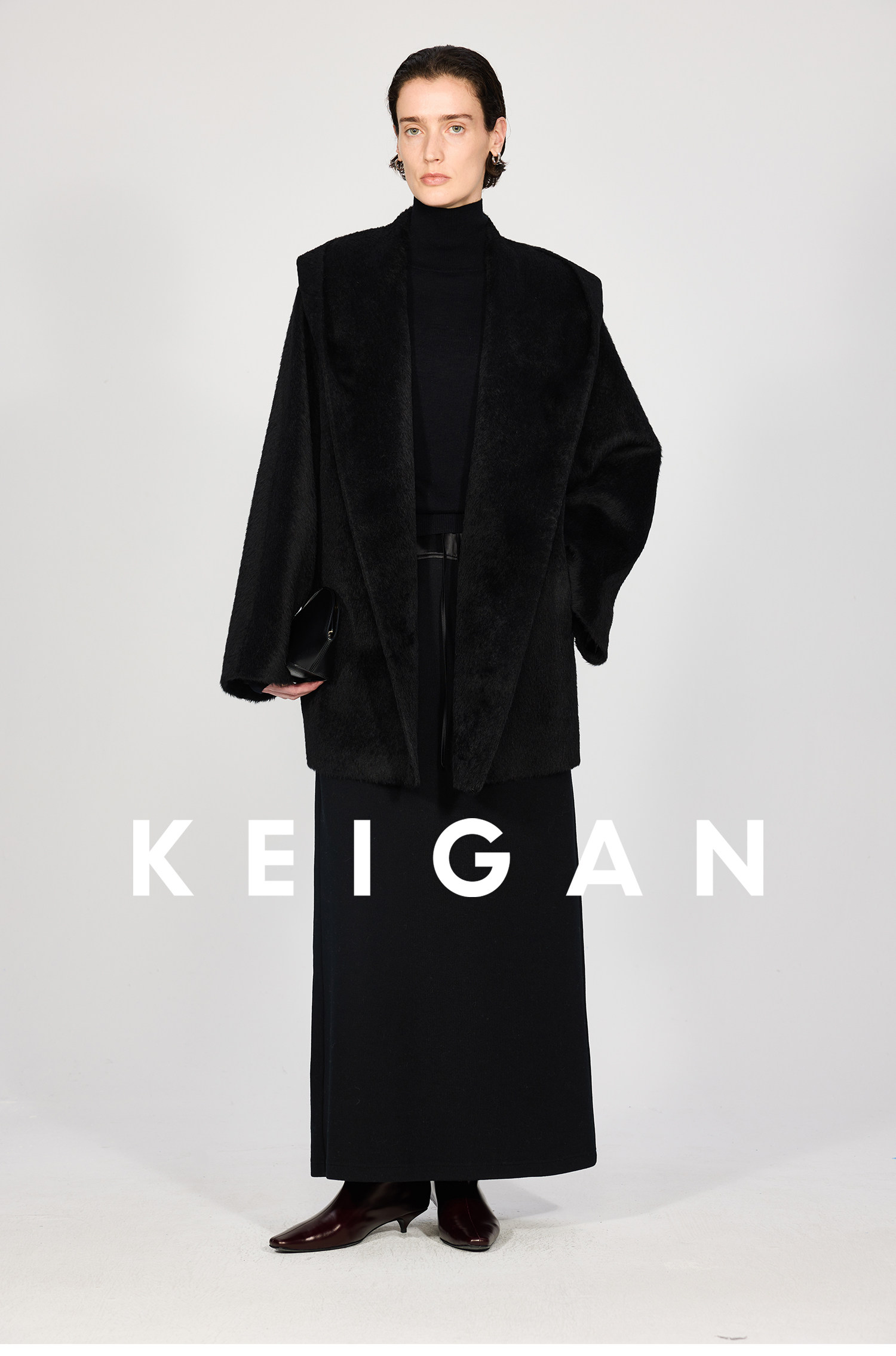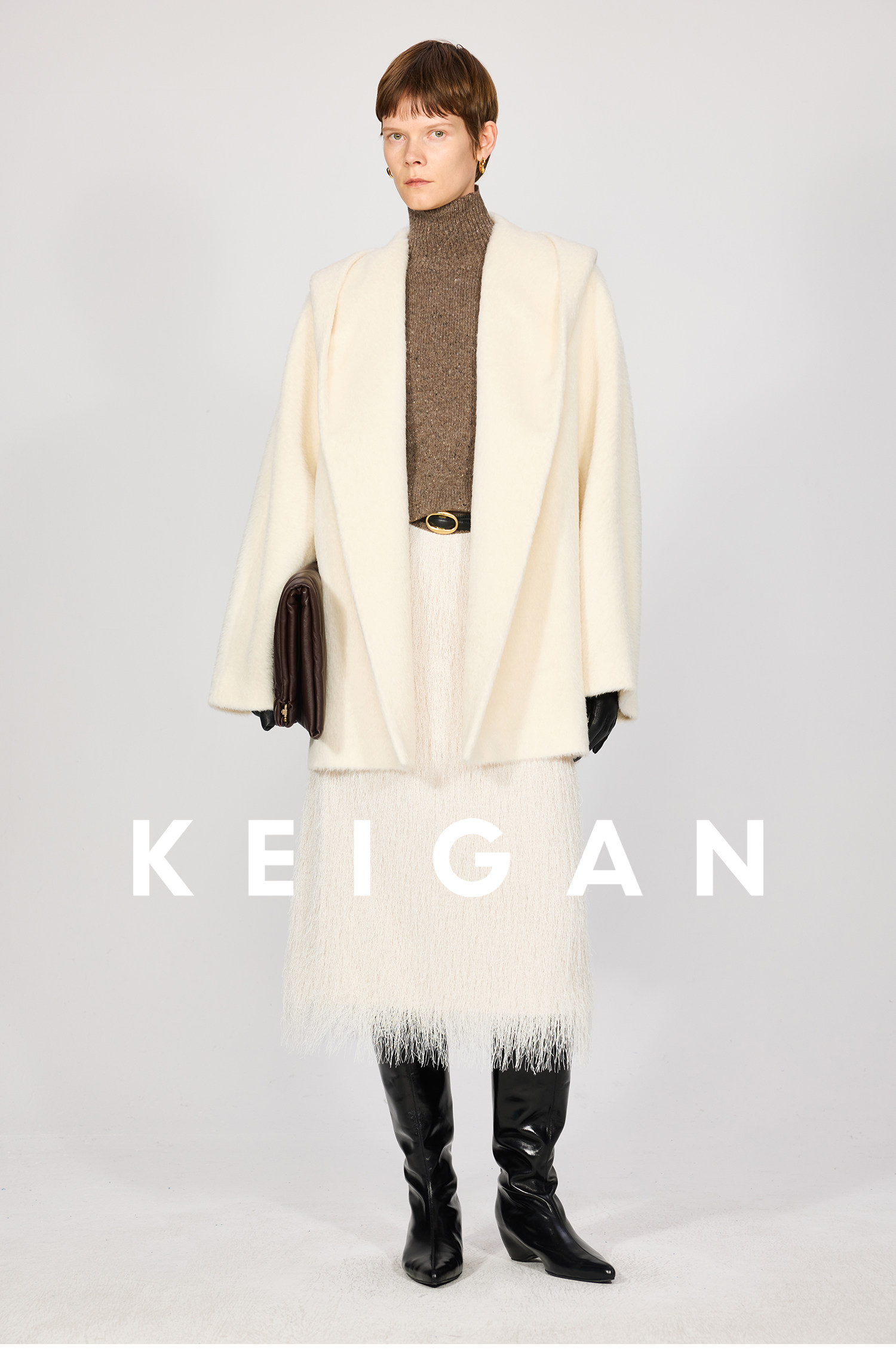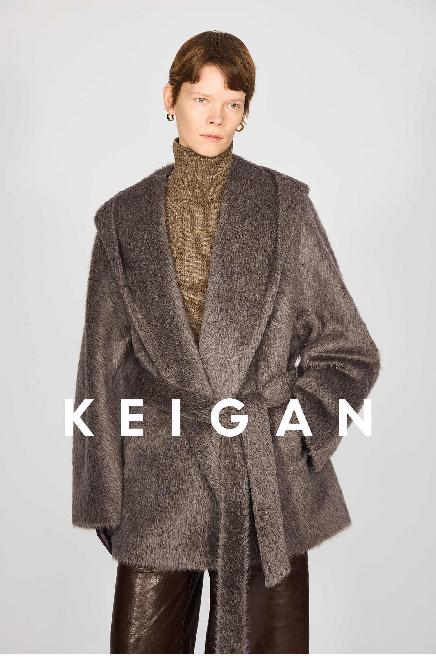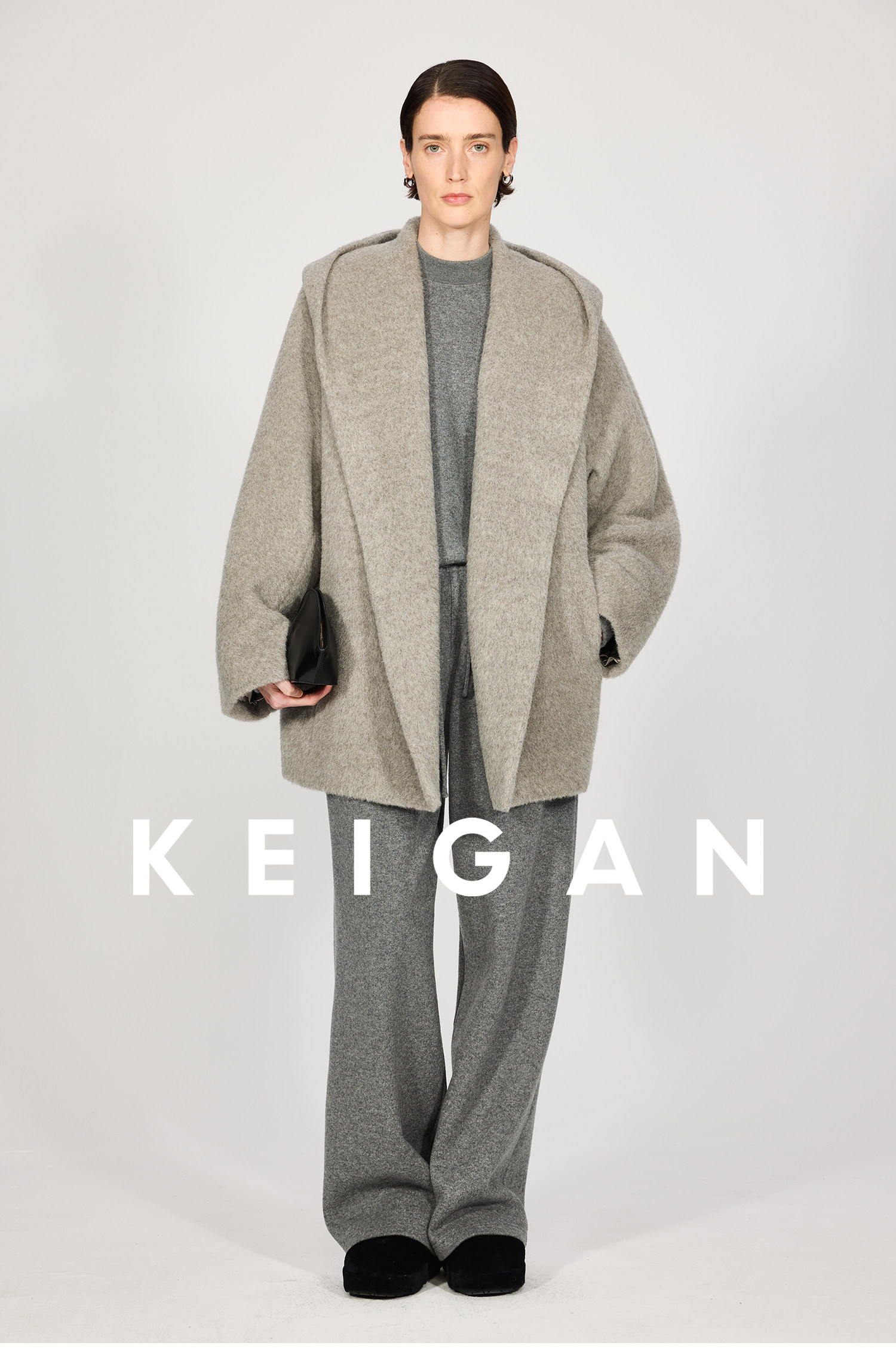 Black Label/Italian Texco Extra-Long Wool Peruvian Inca Natural Color Alpaca Hooded Bathrobe-Style Short Coat