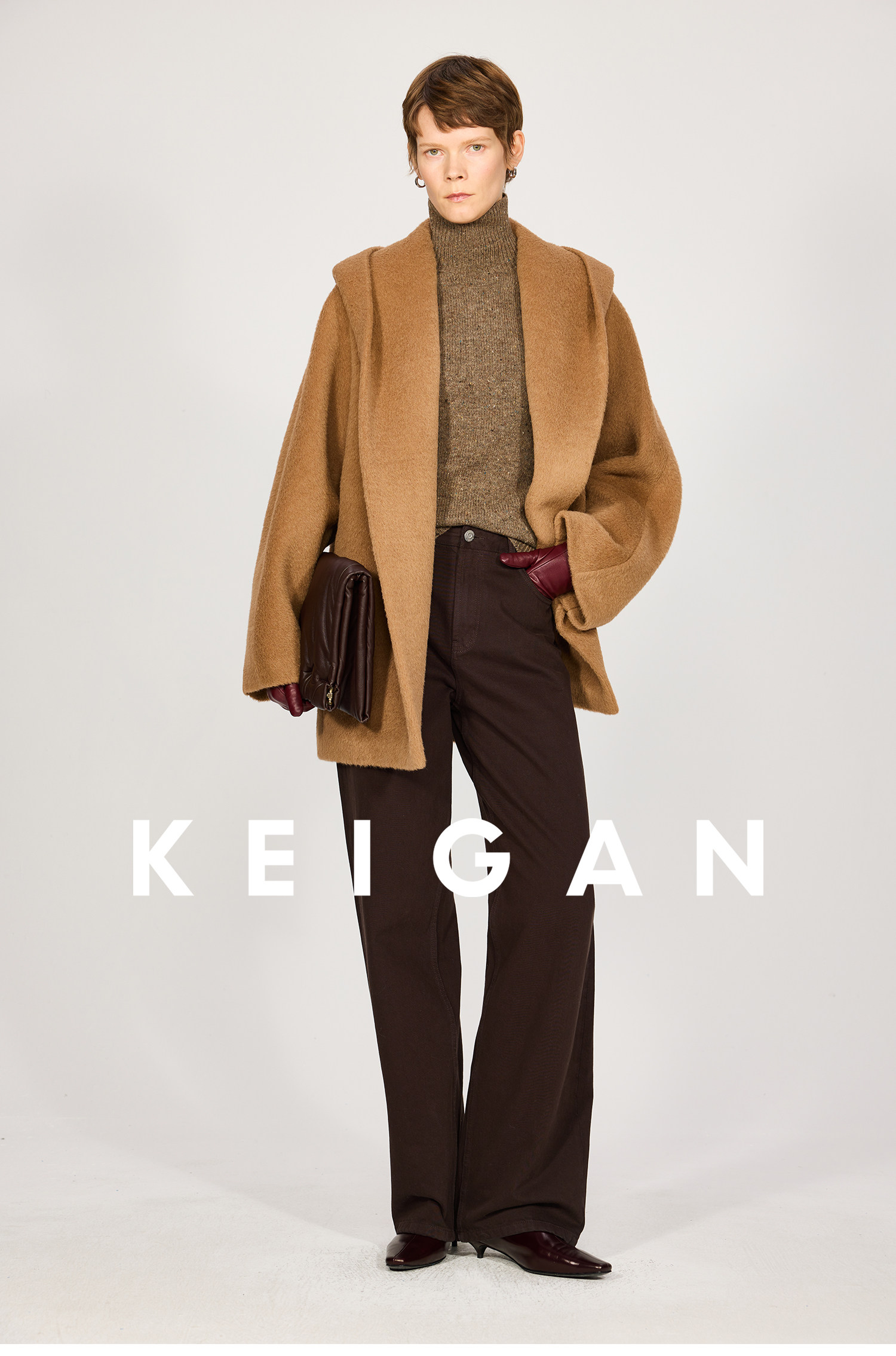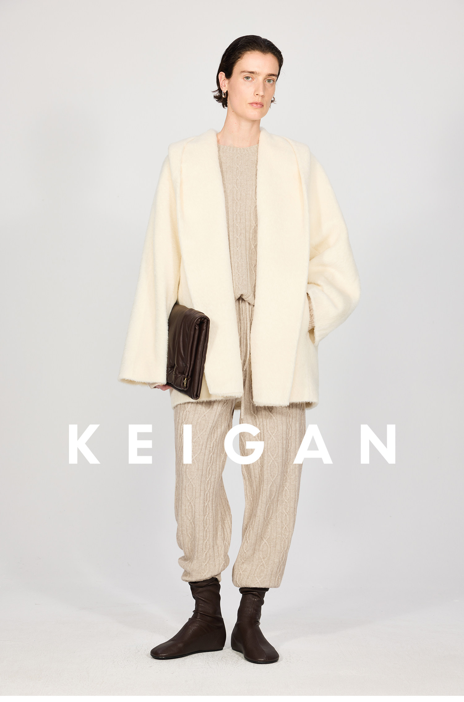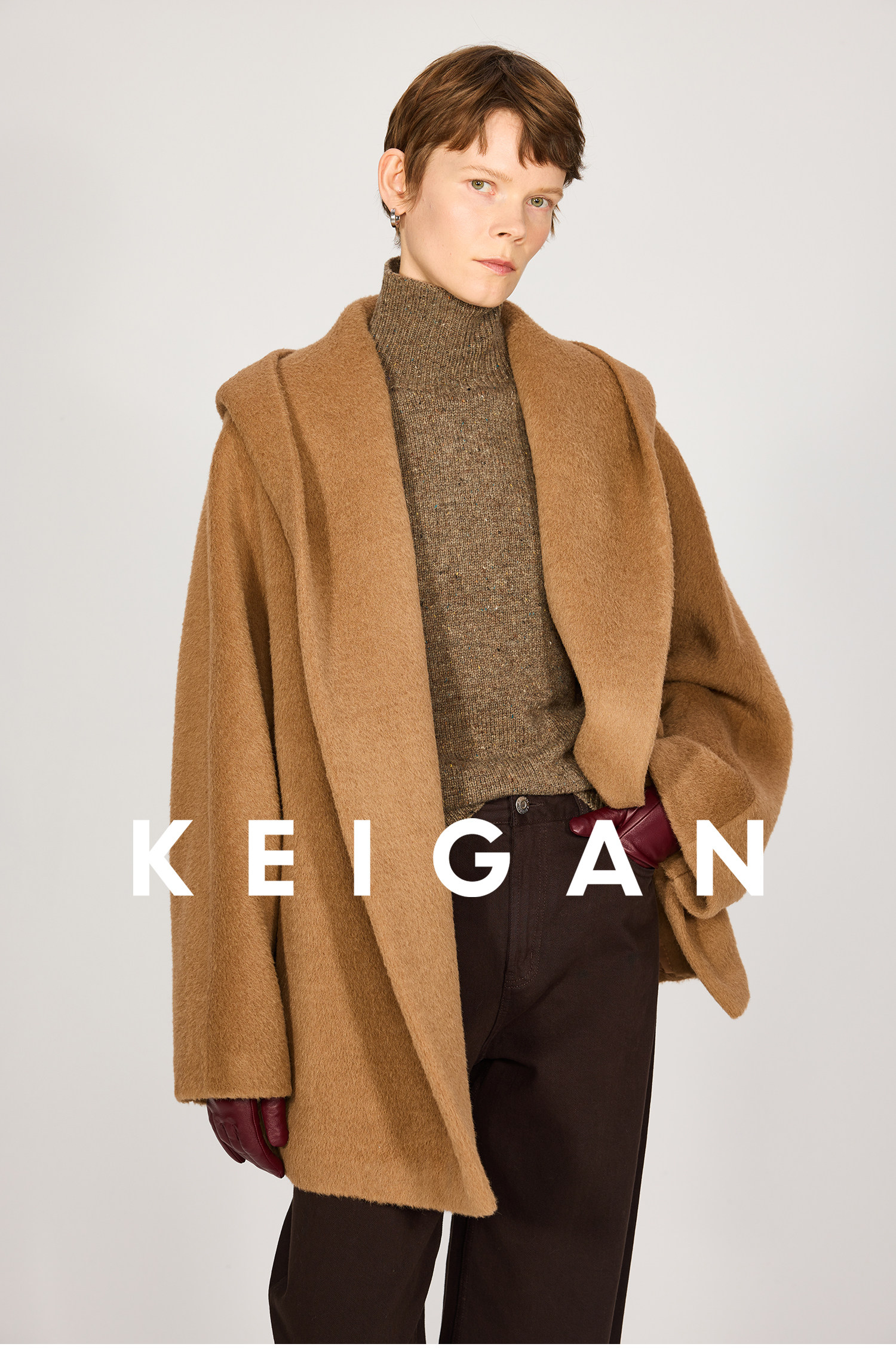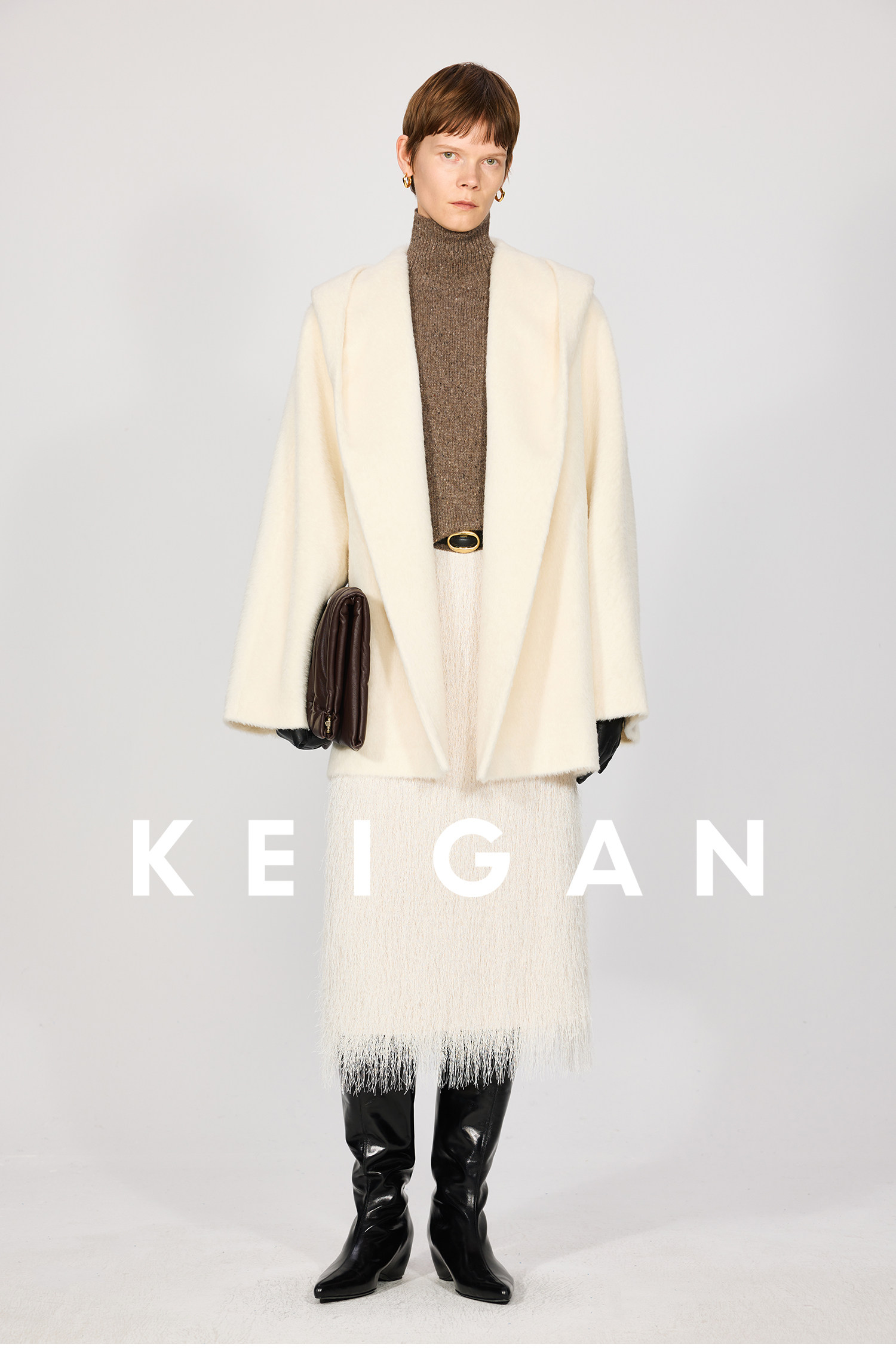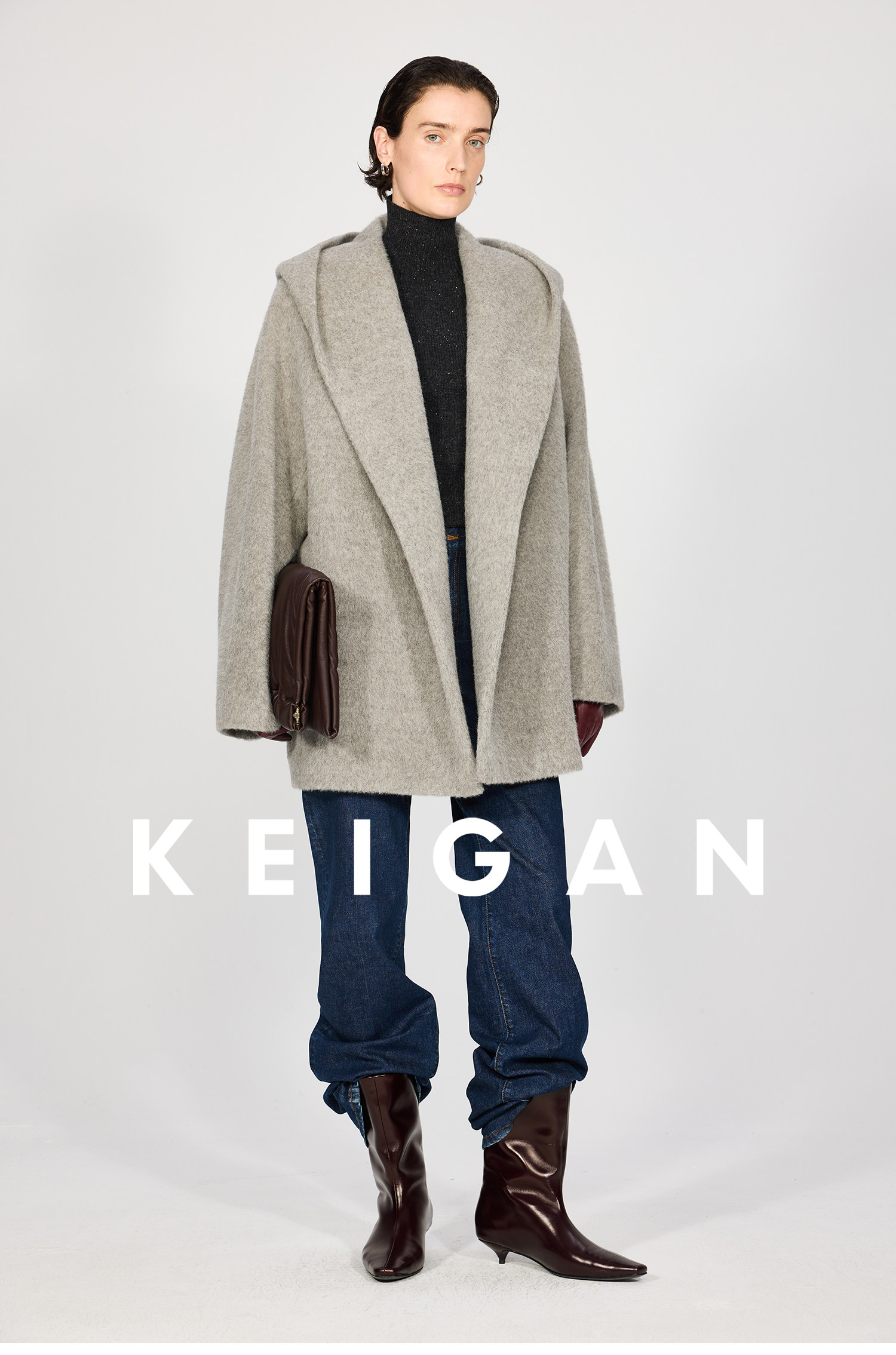 Black Label/Italian Texco Extra-Long Wool Peruvian Inca Natural Color Alpaca Hooded Bathrobe-Style Short Coat