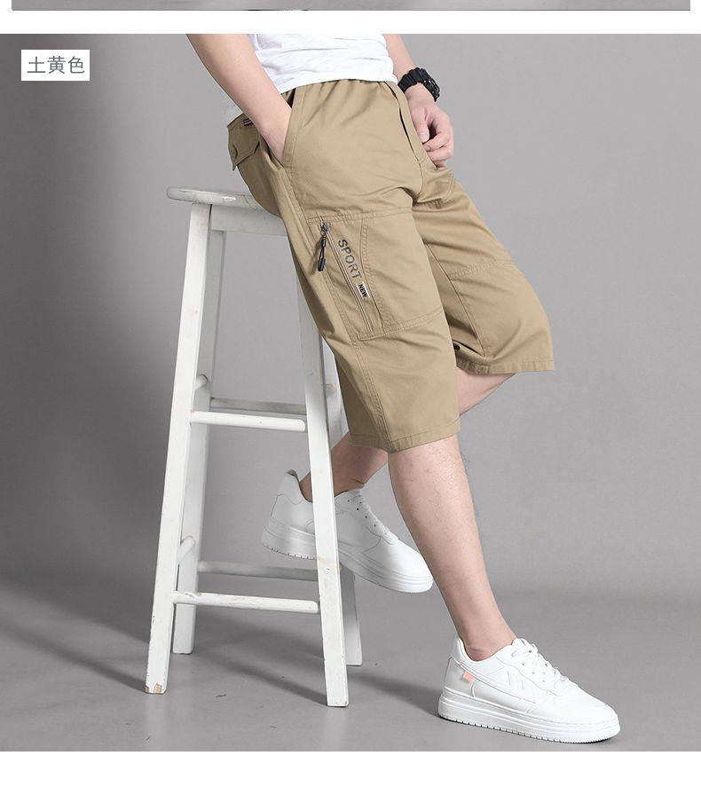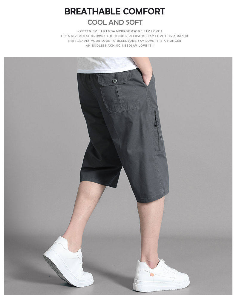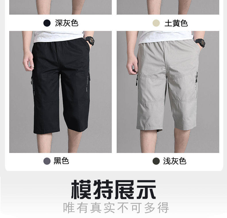 Woodpecker Brand Summer Men's Capri Pants, Dad's Pure Cotton Shorts, Middle-Aged and Elderly Loose Casual Workwear, Large Size Men's Shorts