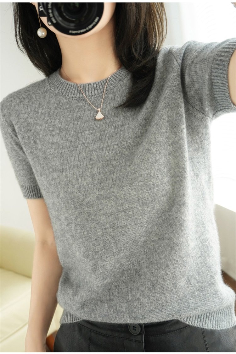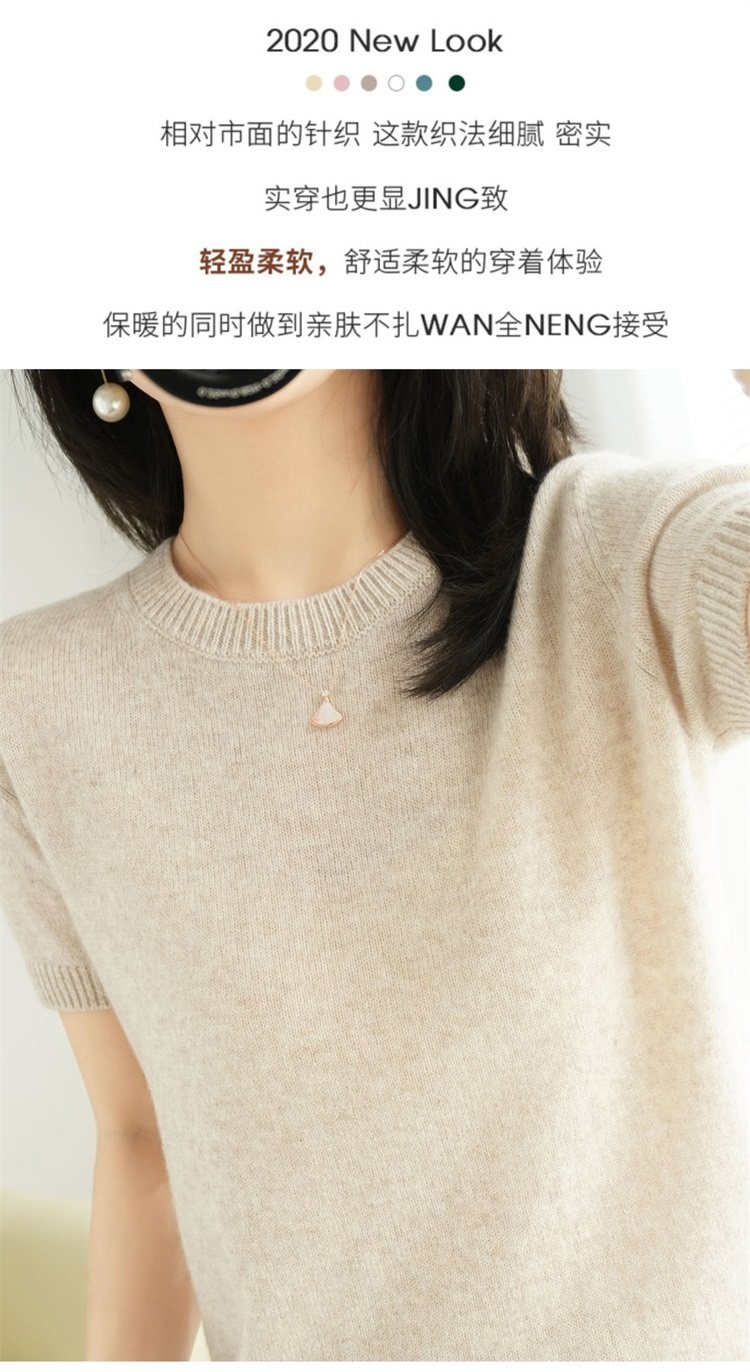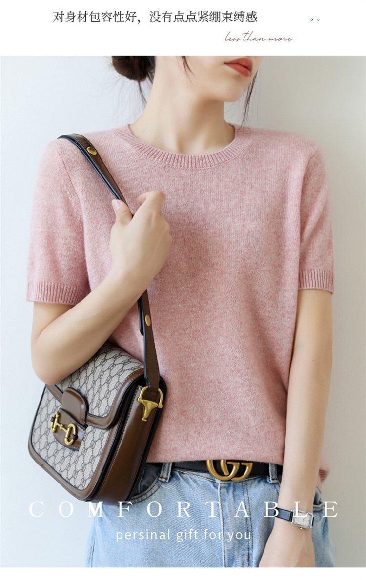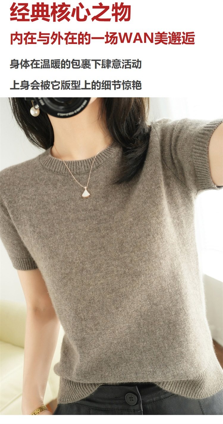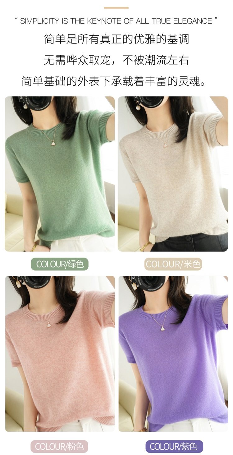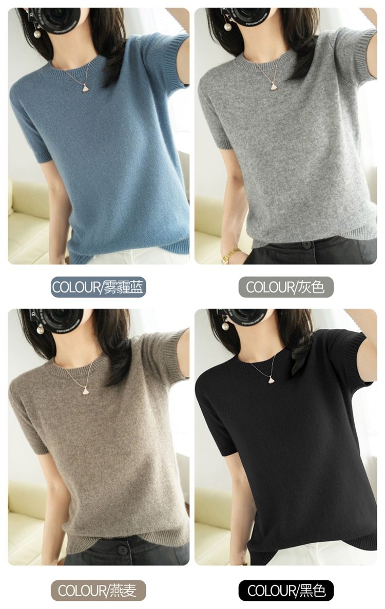 Thin Wool Knitted Short-Sleeved T-Shirt for Women 23 Summer New Style Round Neck Loose Short Cashmere Half-Sleeved Top for Outer Wear