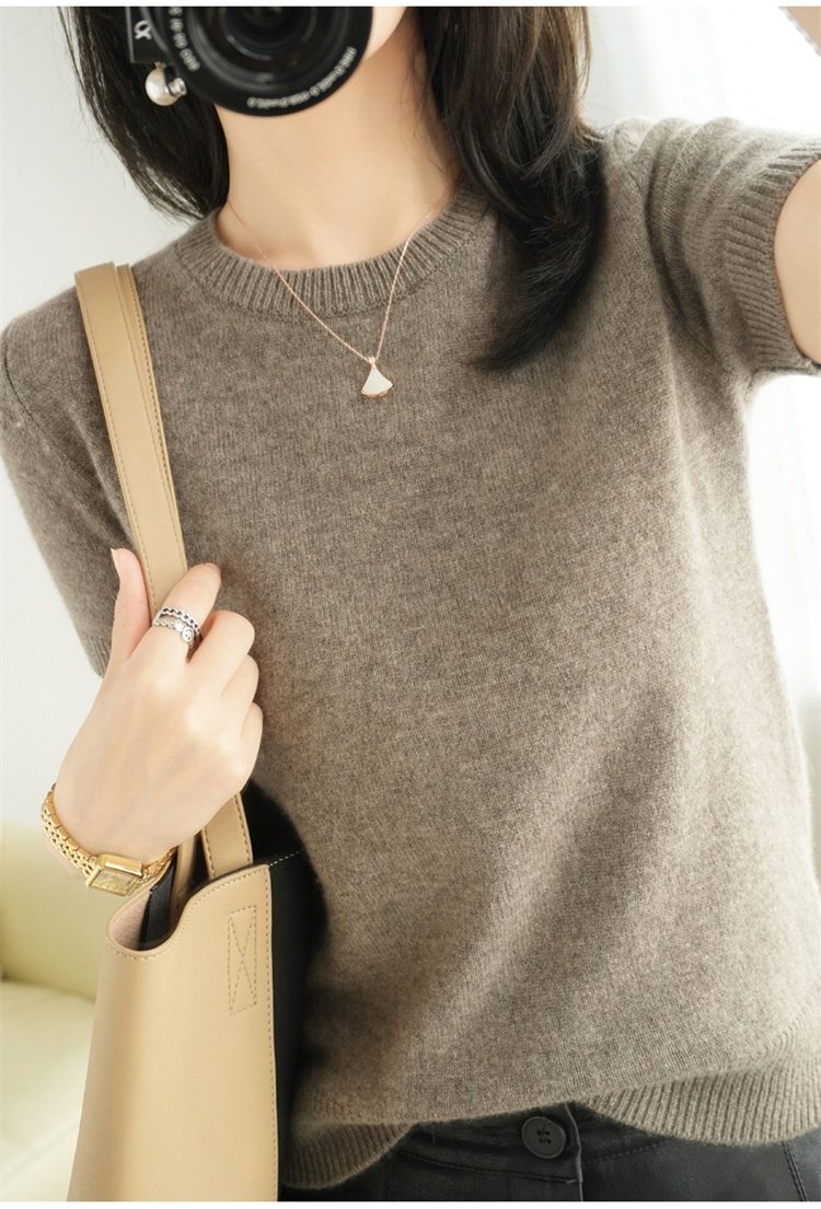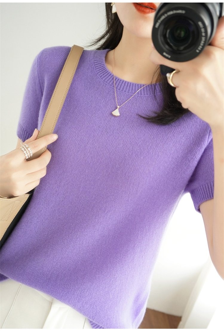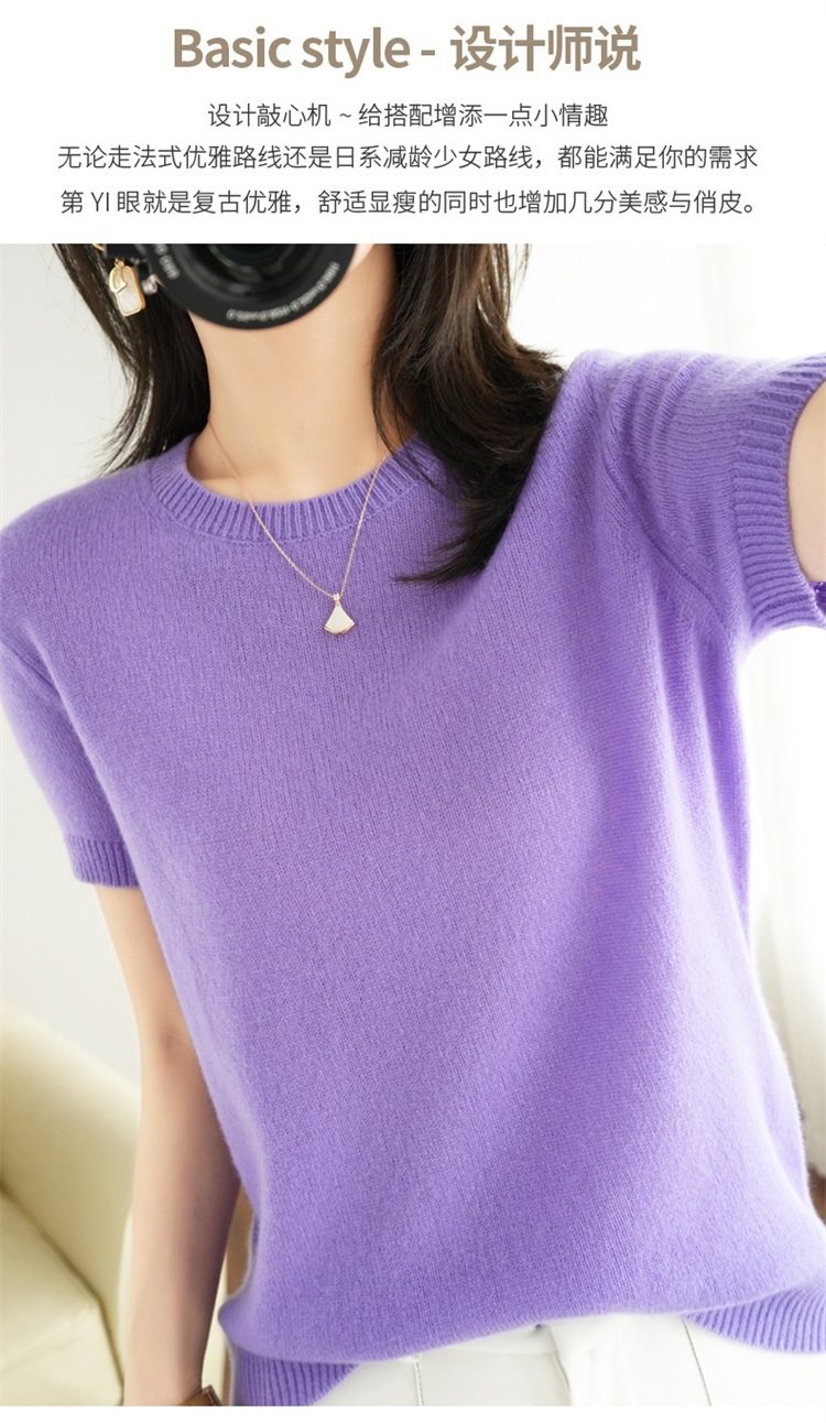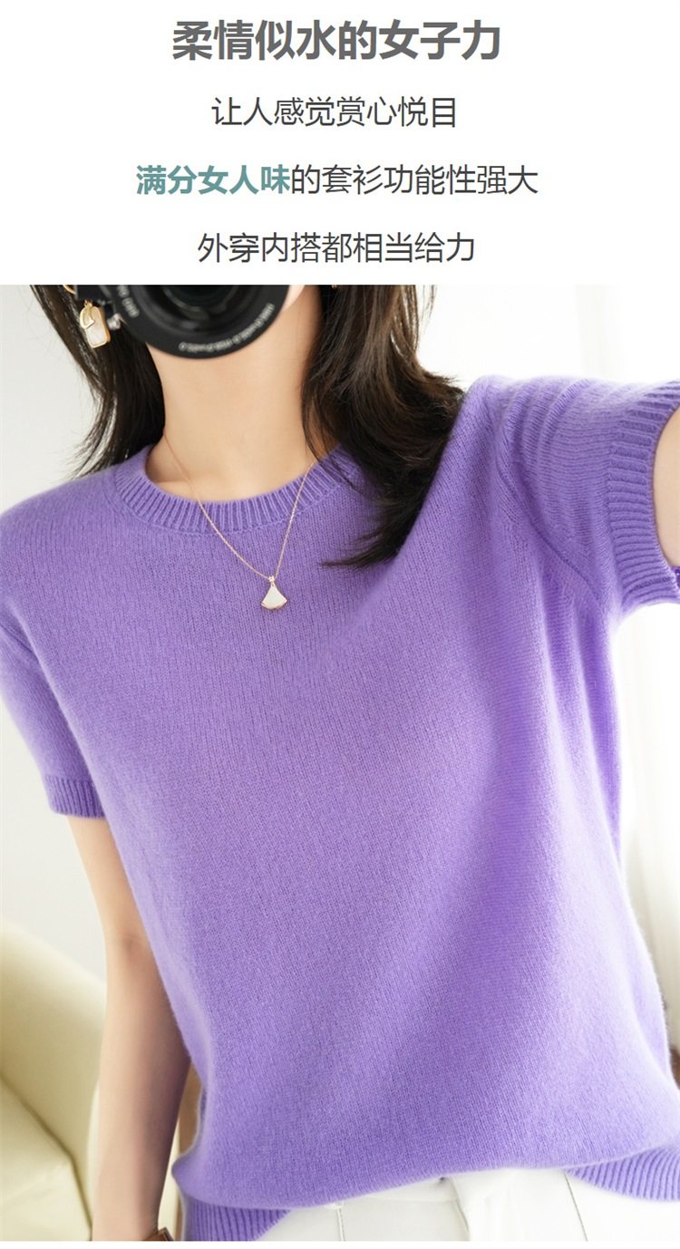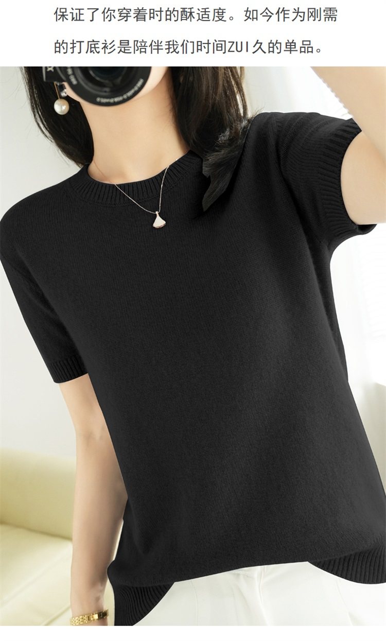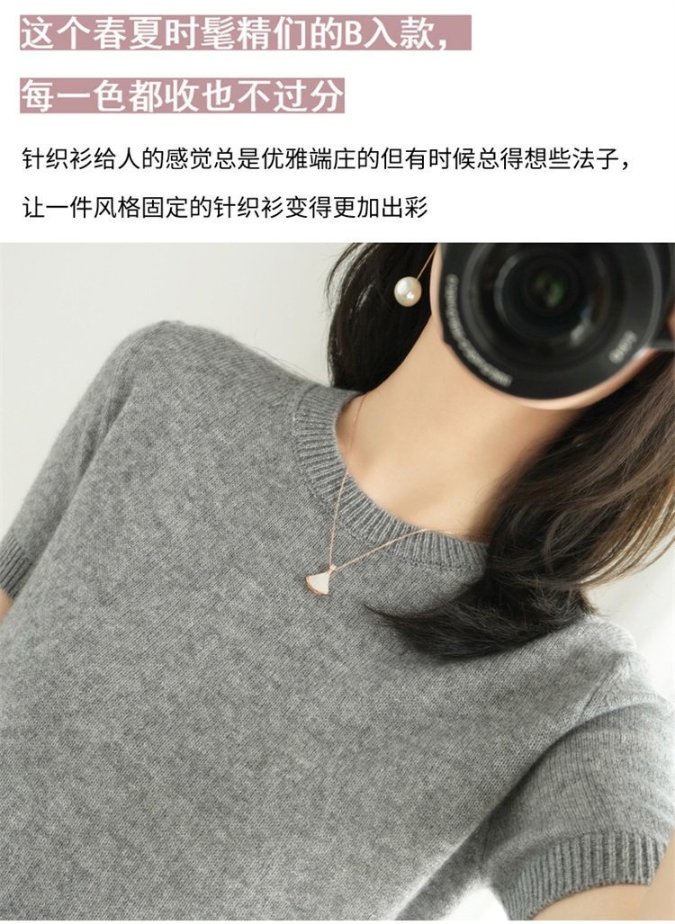Thin Wool Knitted Short-Sleeved T-Shirt for Women 23 Summer New Style Round Neck Loose Short Cashmere Half-Sleeved Top for Outer Wear