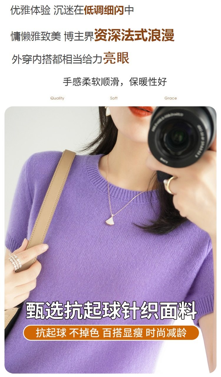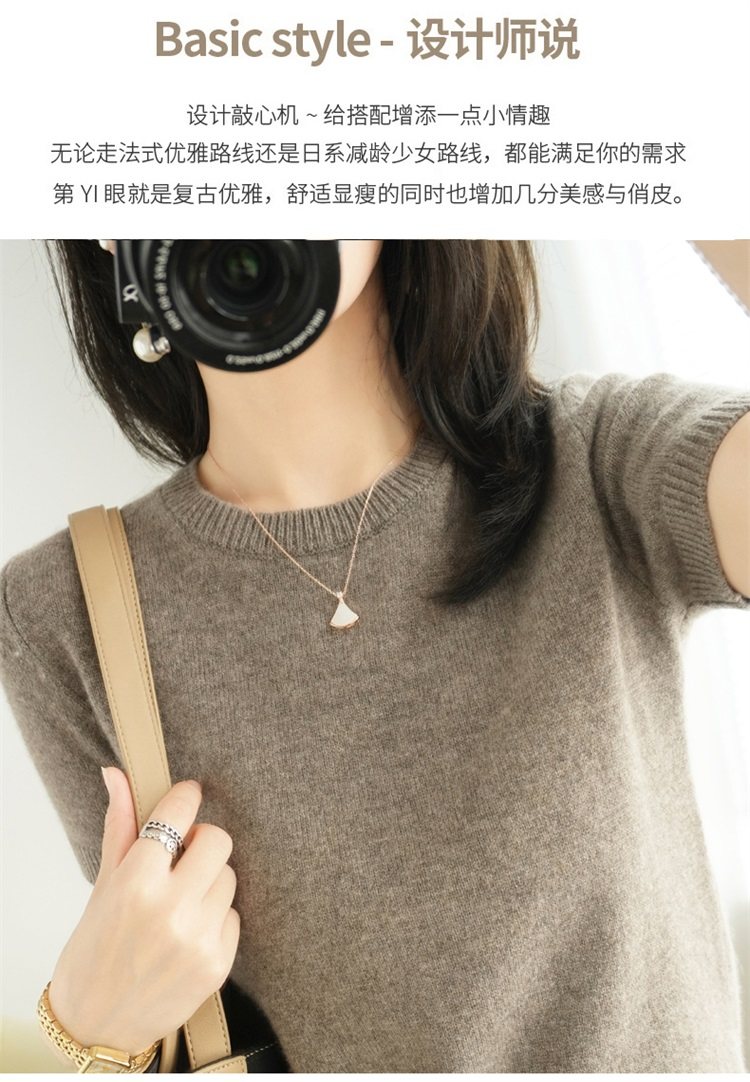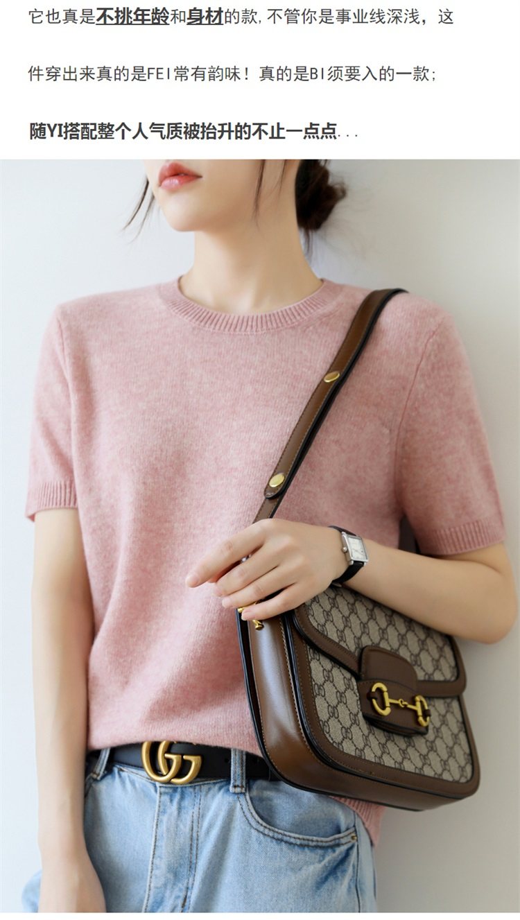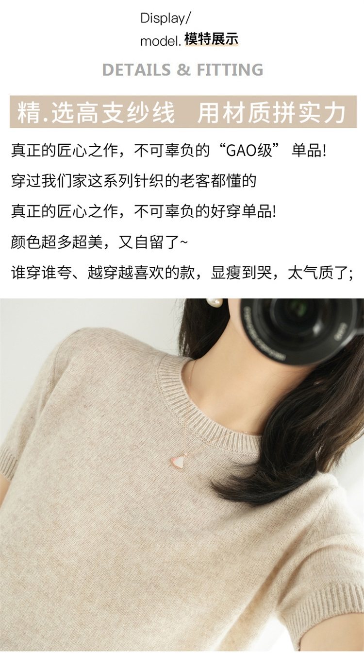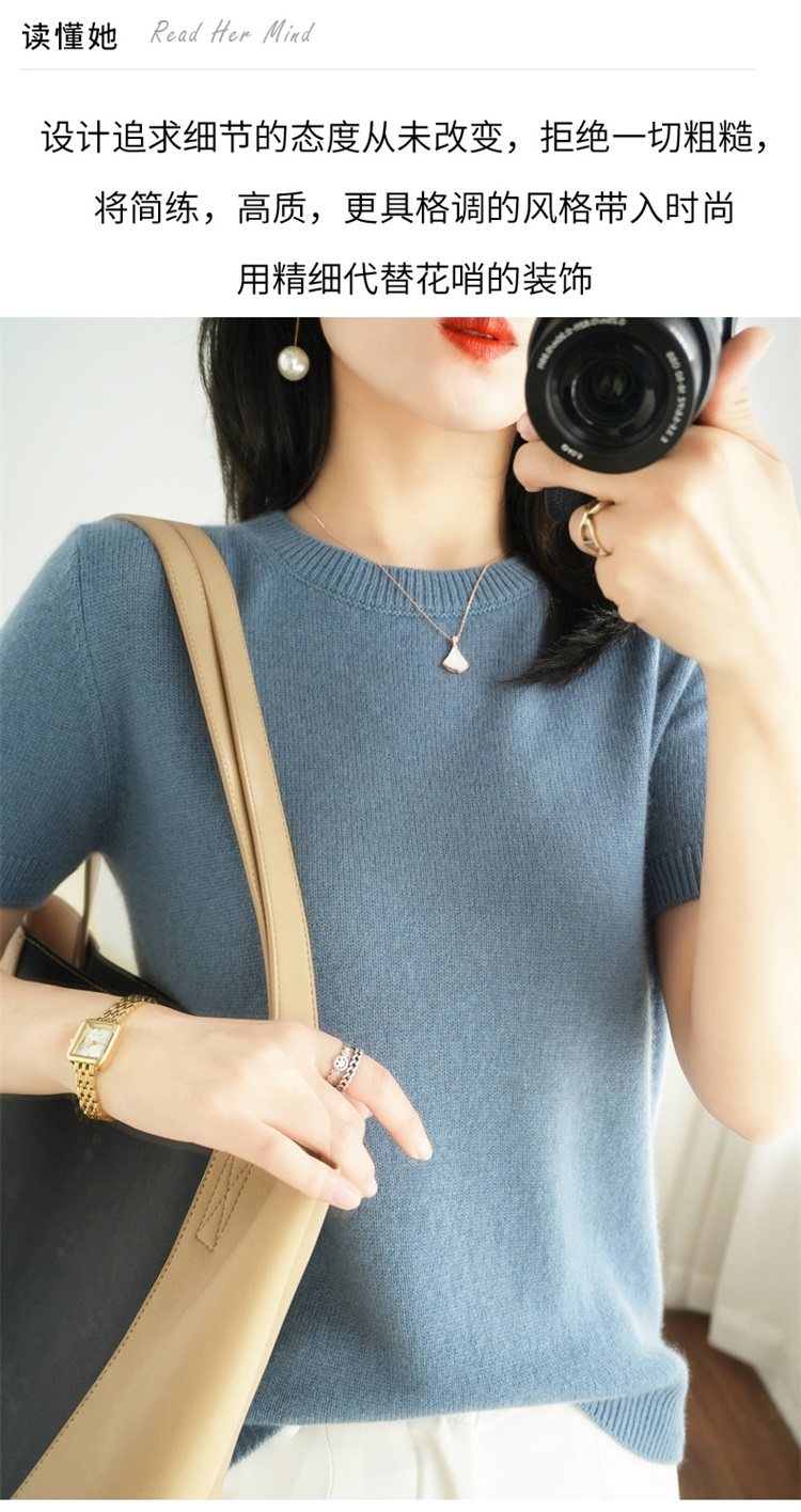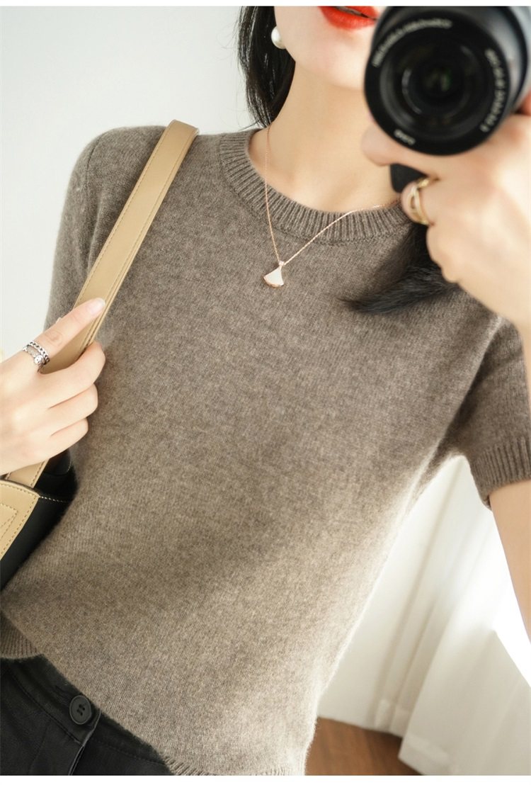 Thin Wool Knitted Short-Sleeved T-Shirt for Women 23 Summer New Style Round Neck Loose Short Cashmere Half-Sleeved Top for Outer Wear