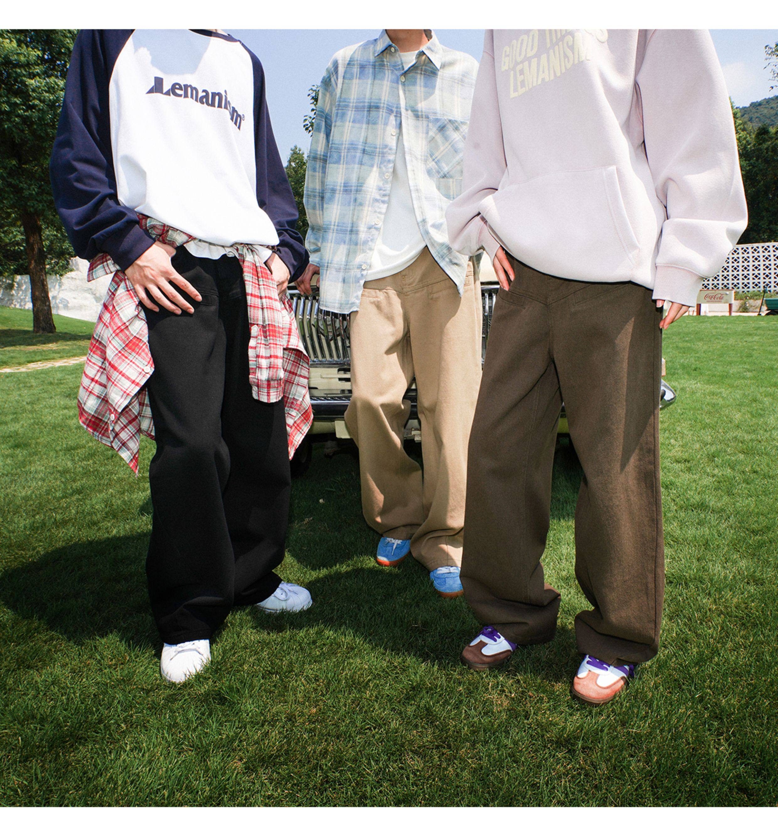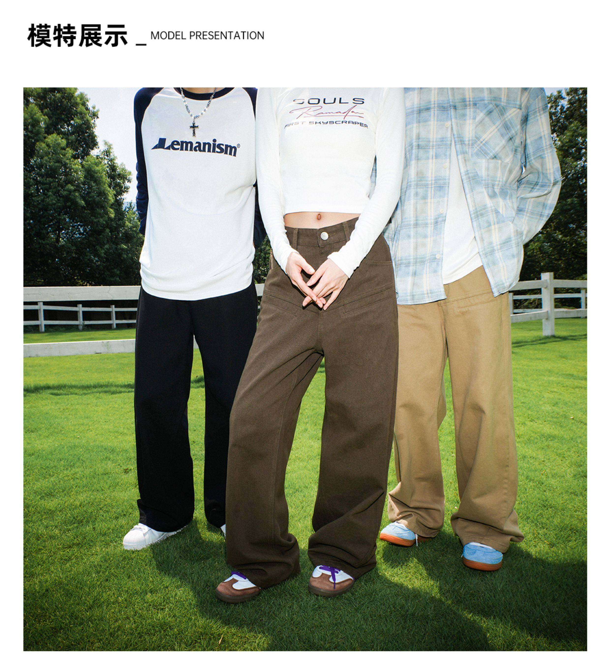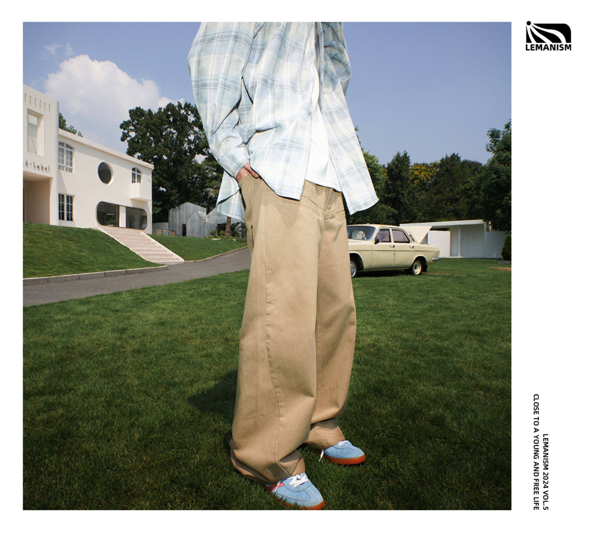 Lemanism Khaki Brown Pants Men's Spring and Autumn Couple Style Long Pants Straight Cleanfit Work Casual Pants