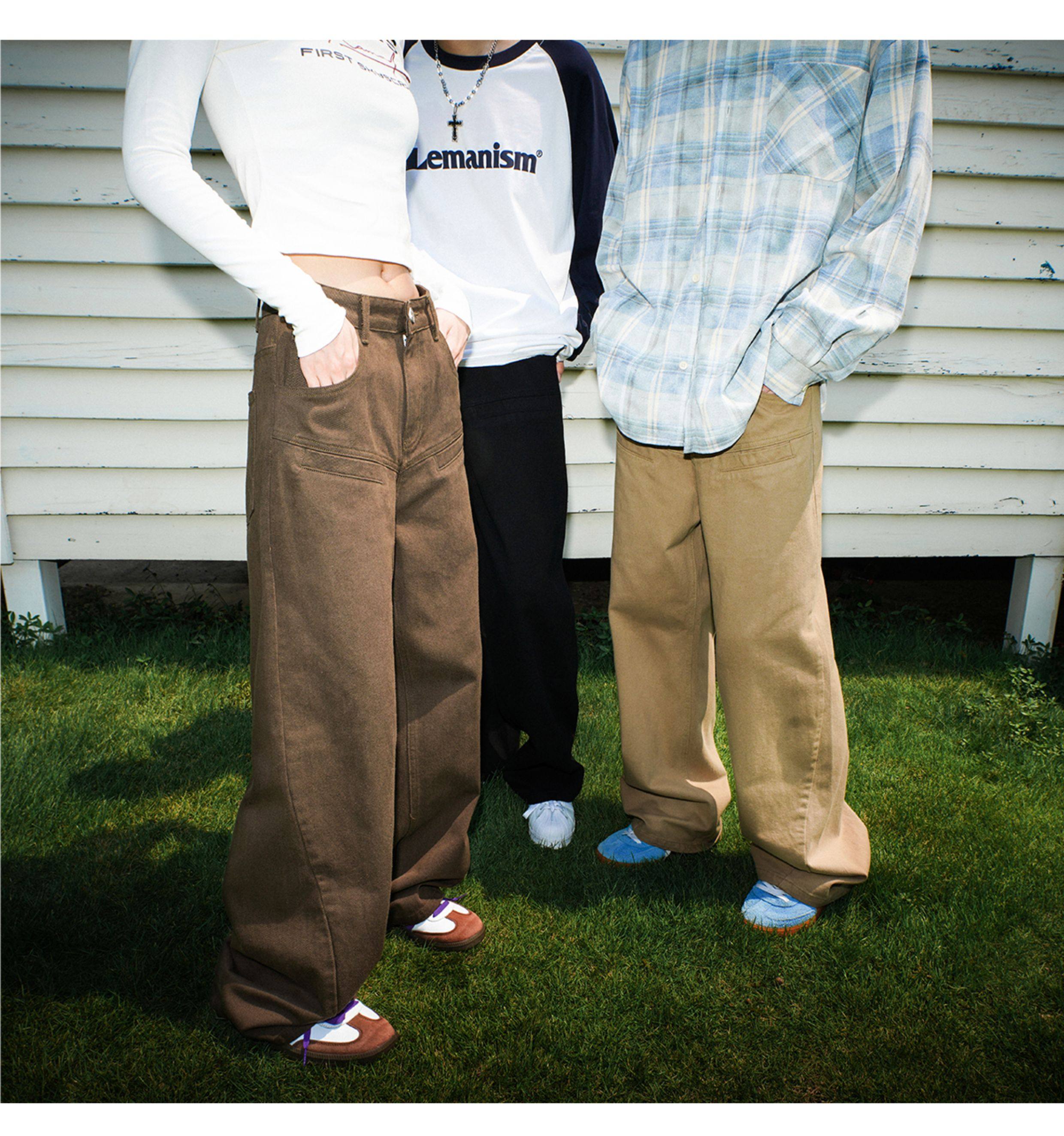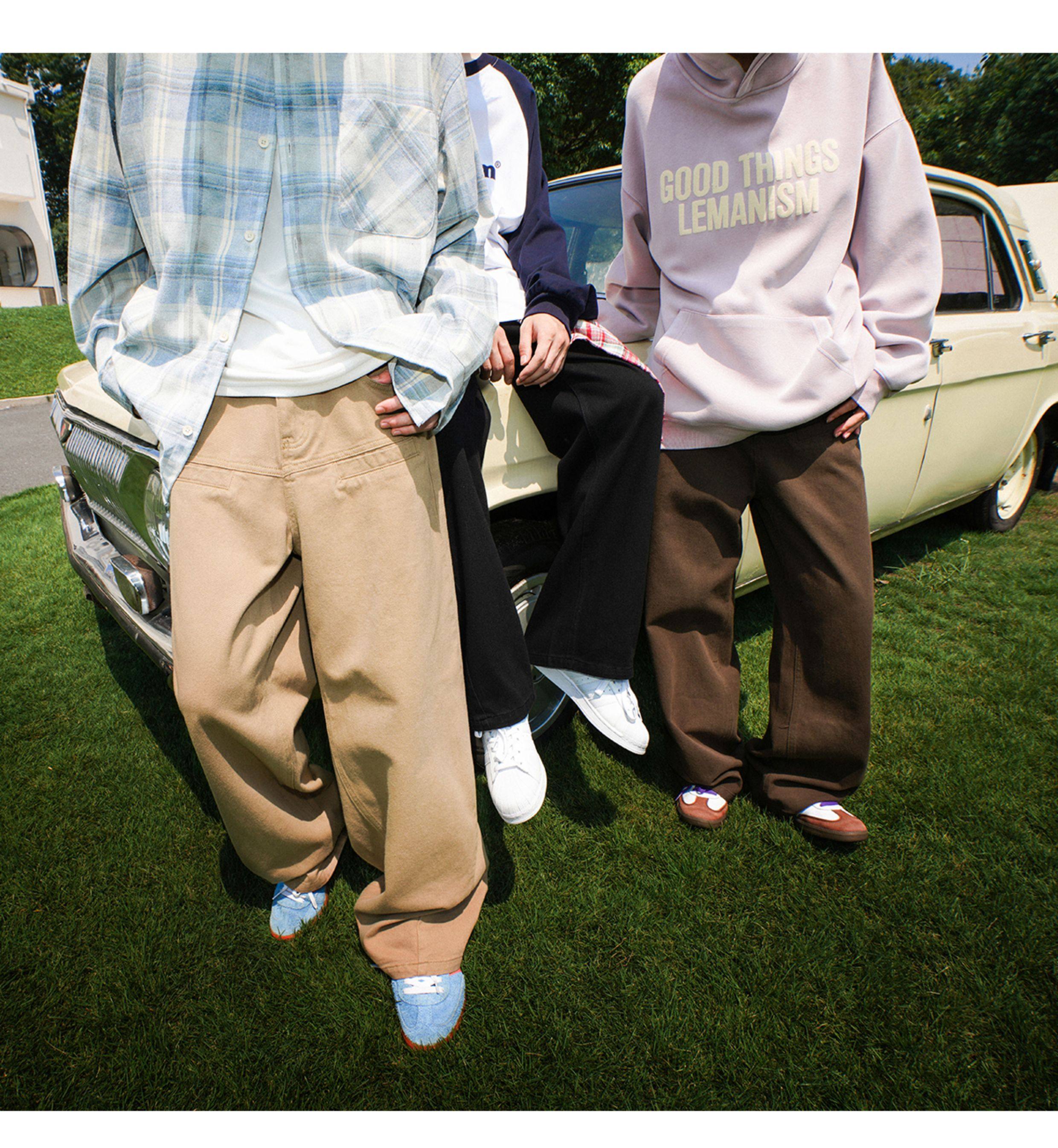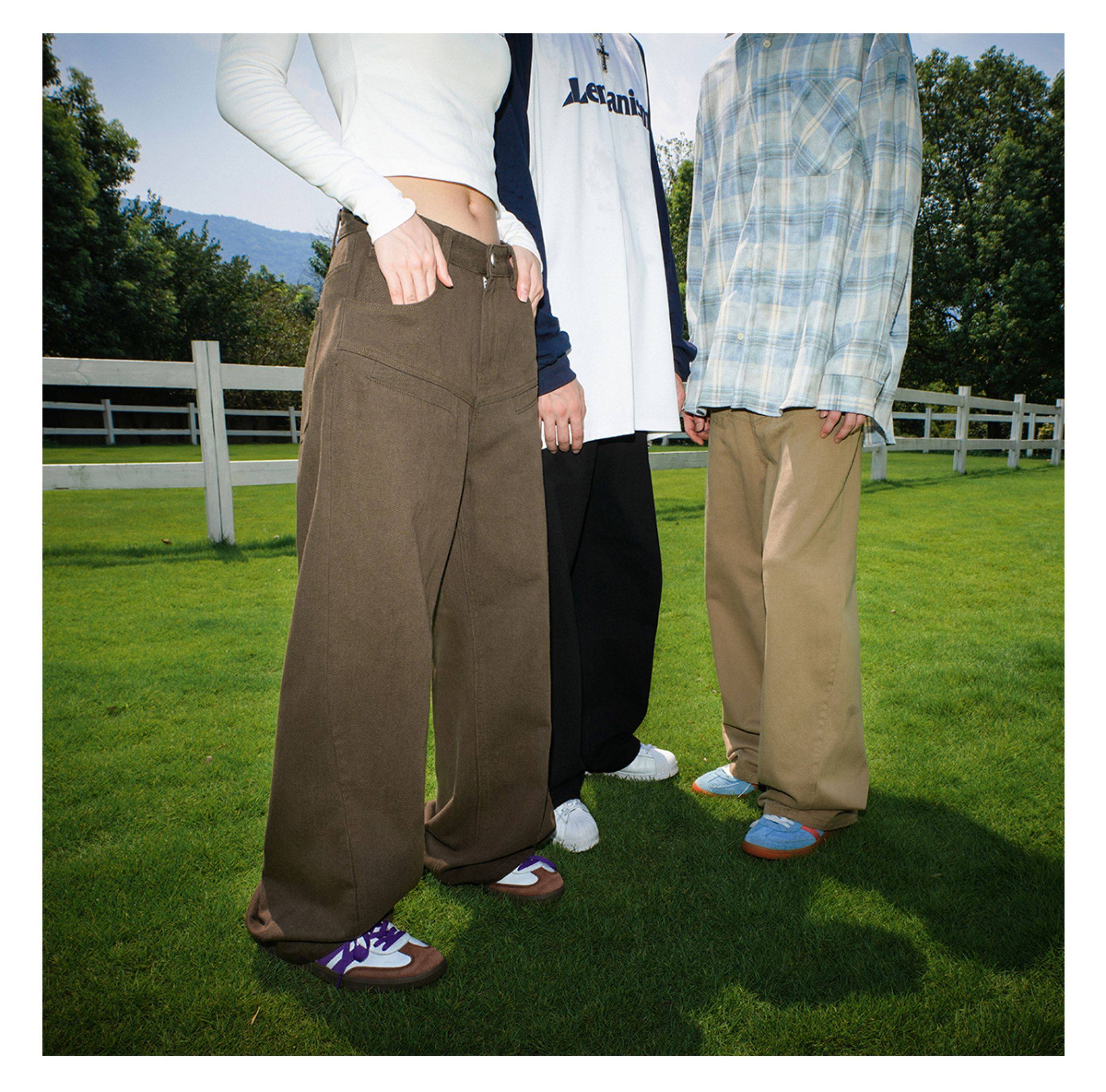 Lemanism Khaki Brown Pants Men's Spring and Autumn Couple Style Long Pants Straight Cleanfit Work Casual Pants