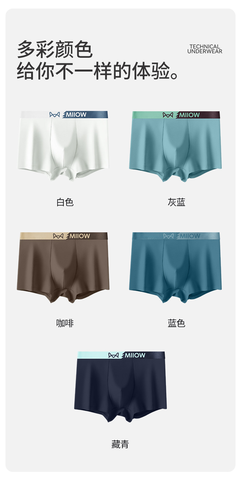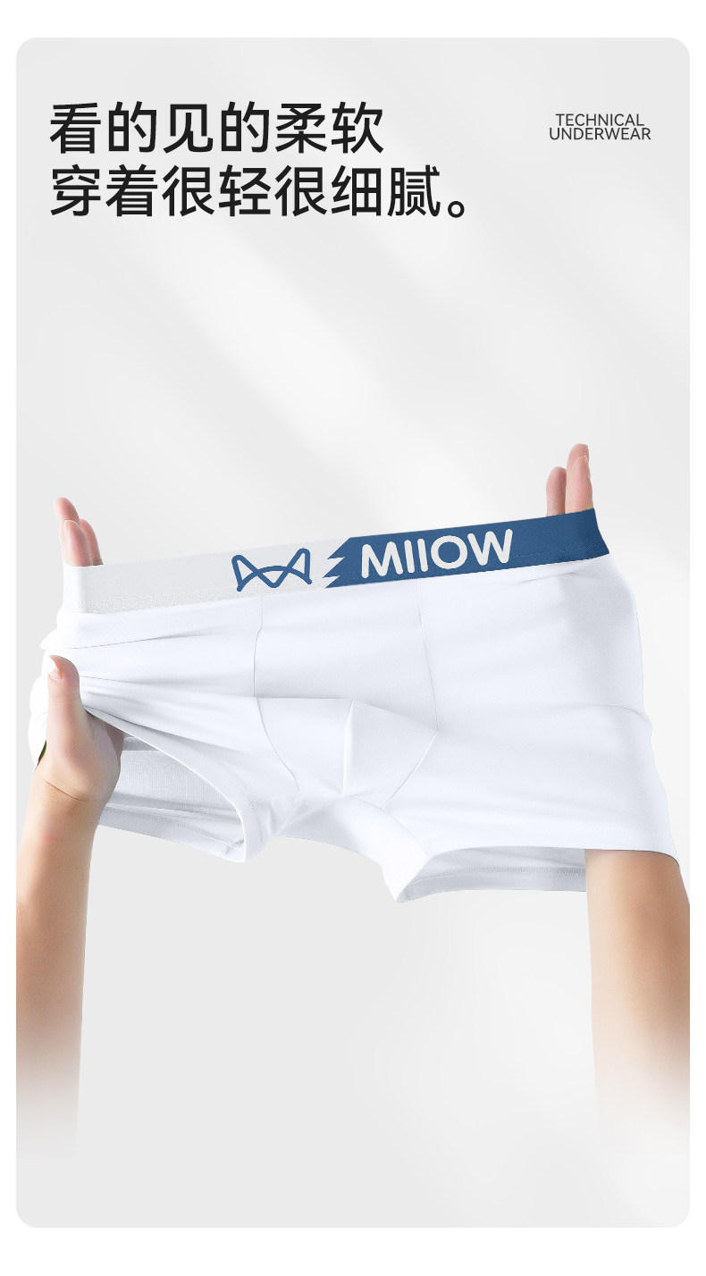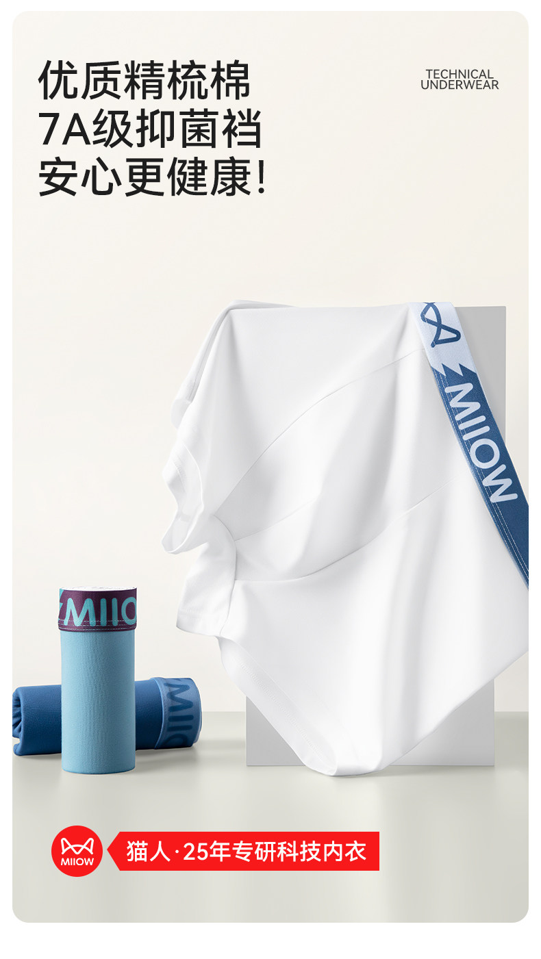 MiiOW White Men's Boxer Briefs, Pure Cotton, Breathable, Boys' 7A Antibacterial, All-Cotton Boxer Shorts