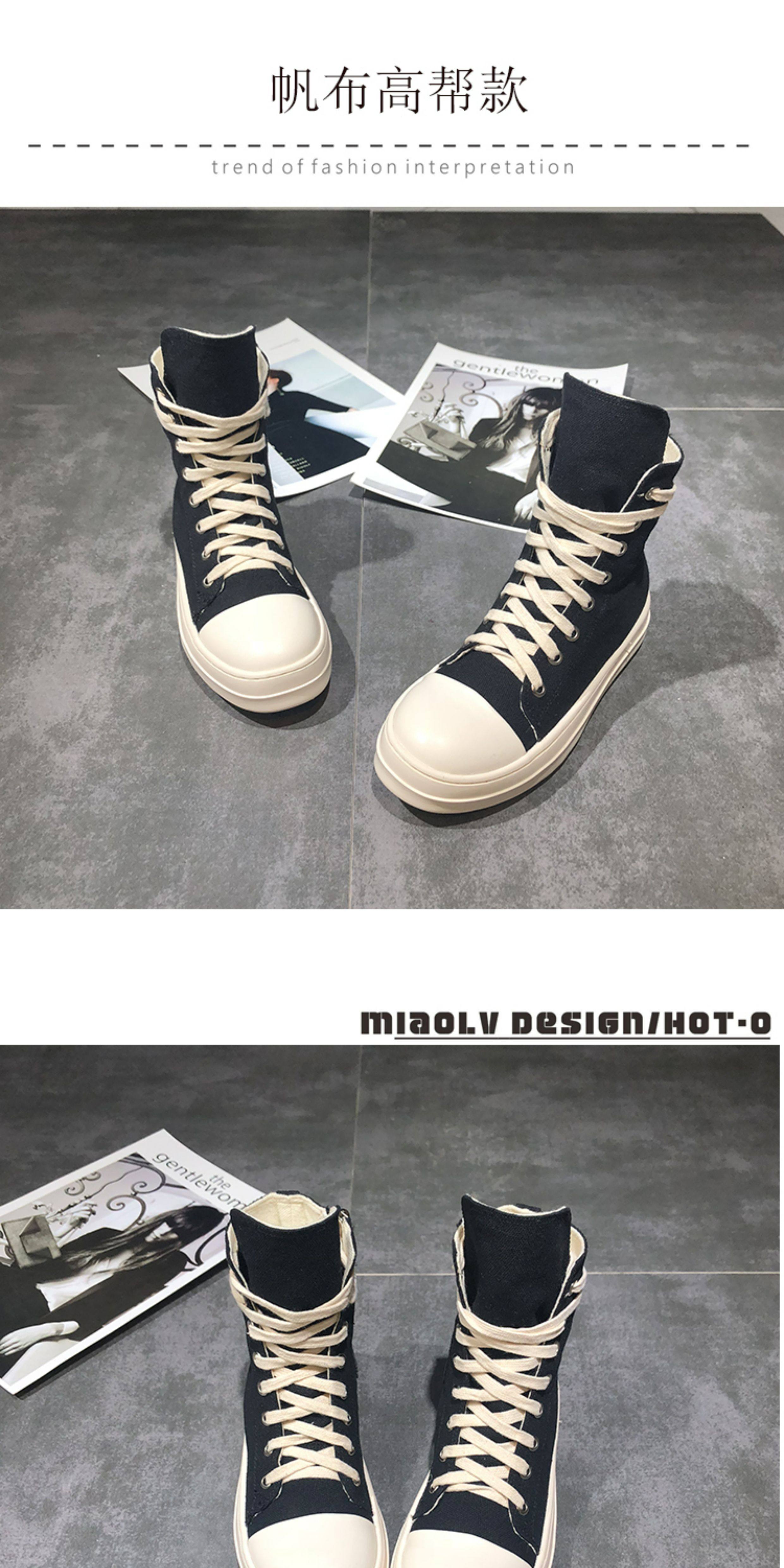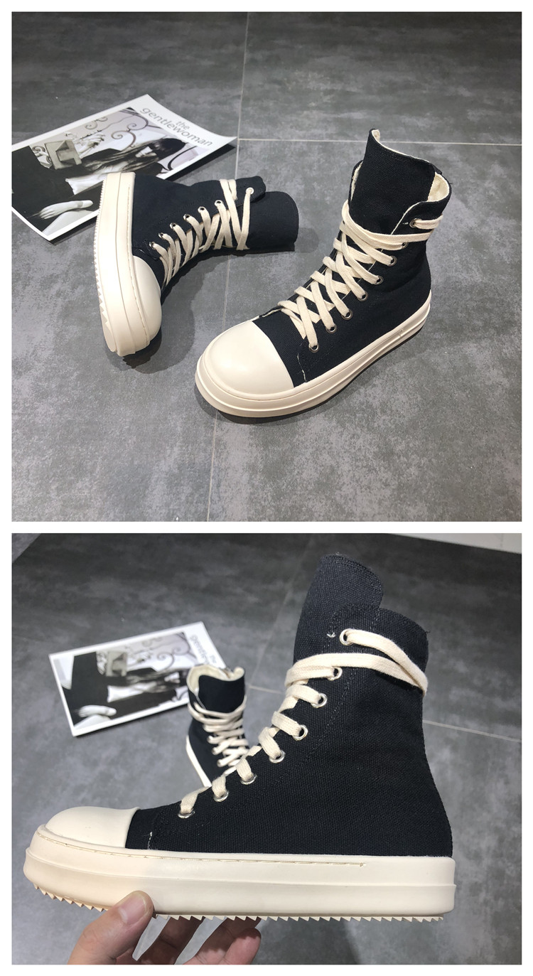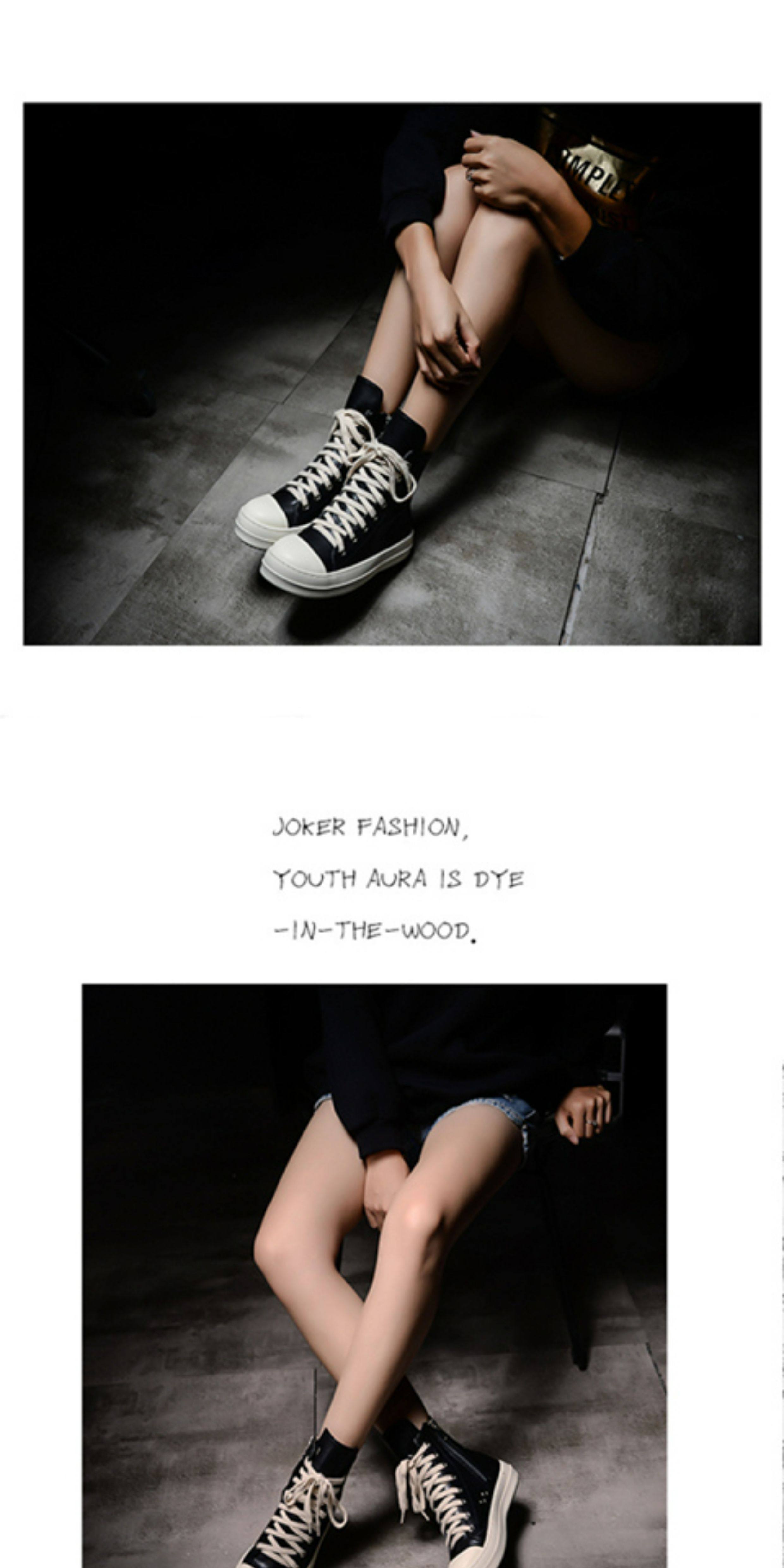 ins Super Popular Ro High-Top Shoes for Women, Autumn Canvas Thick-Soled Lace-Up Genuine Leather Versatile Couple's Sports Sneakers, Dad Shoes