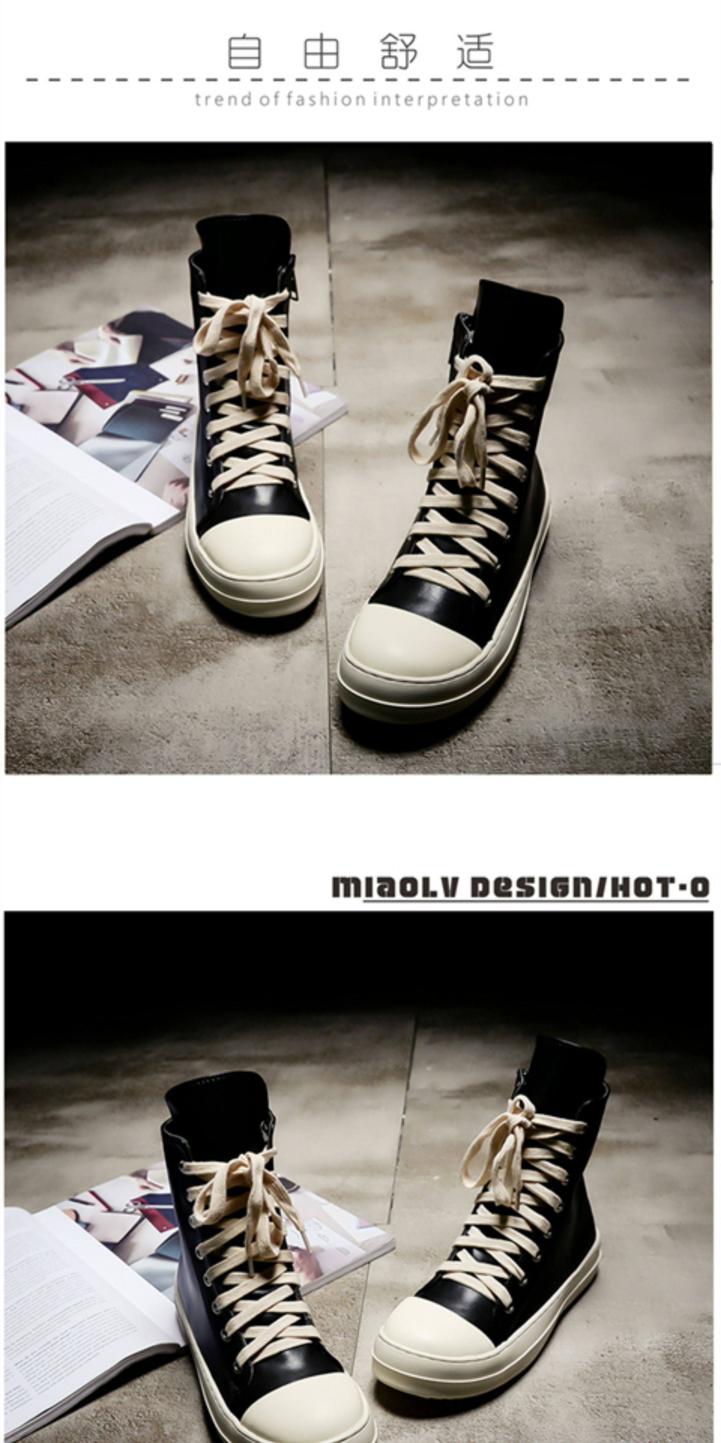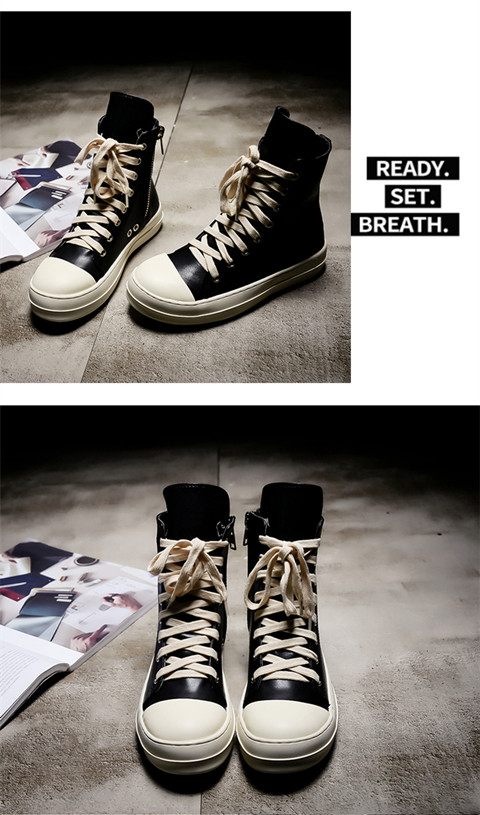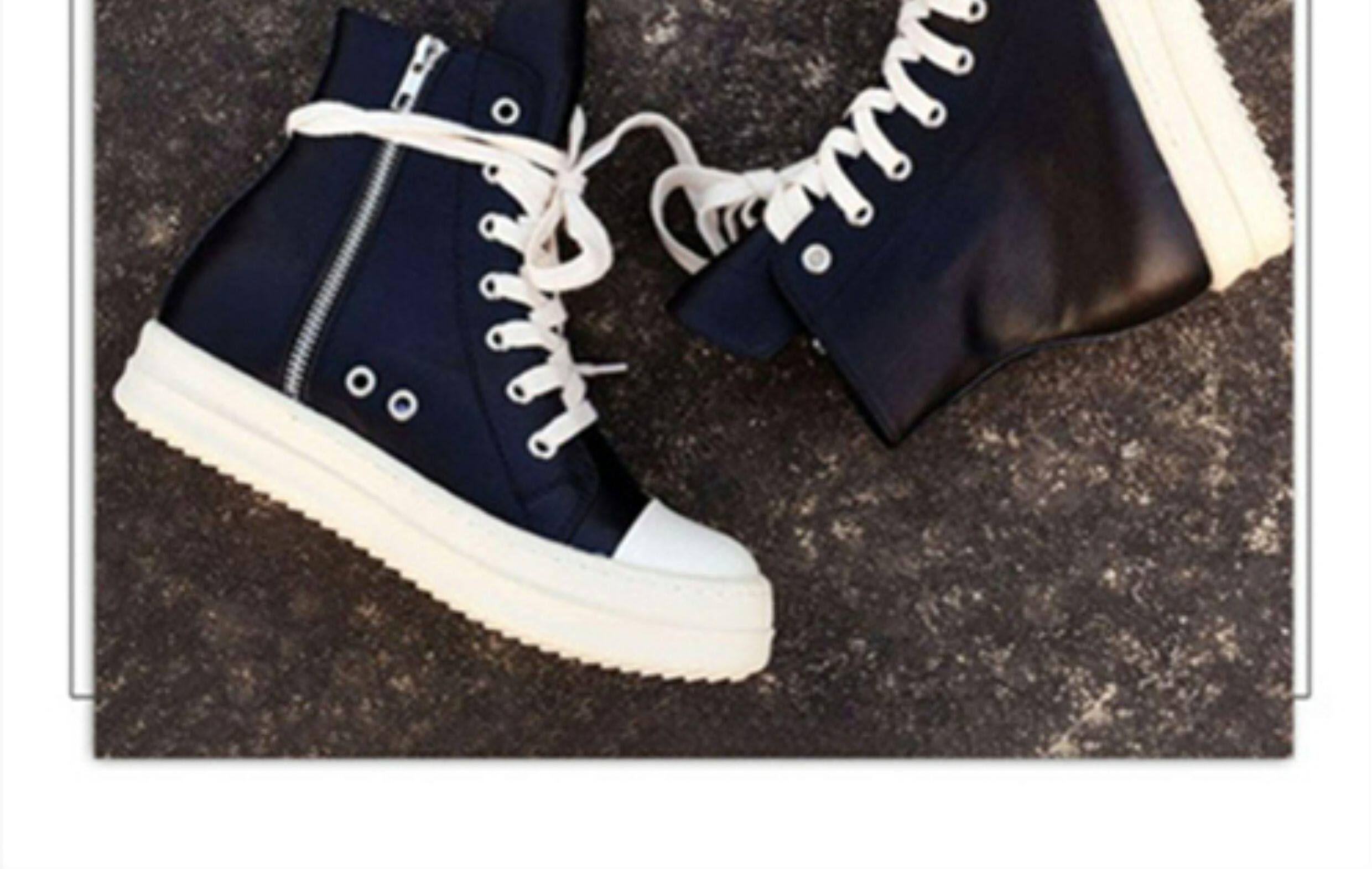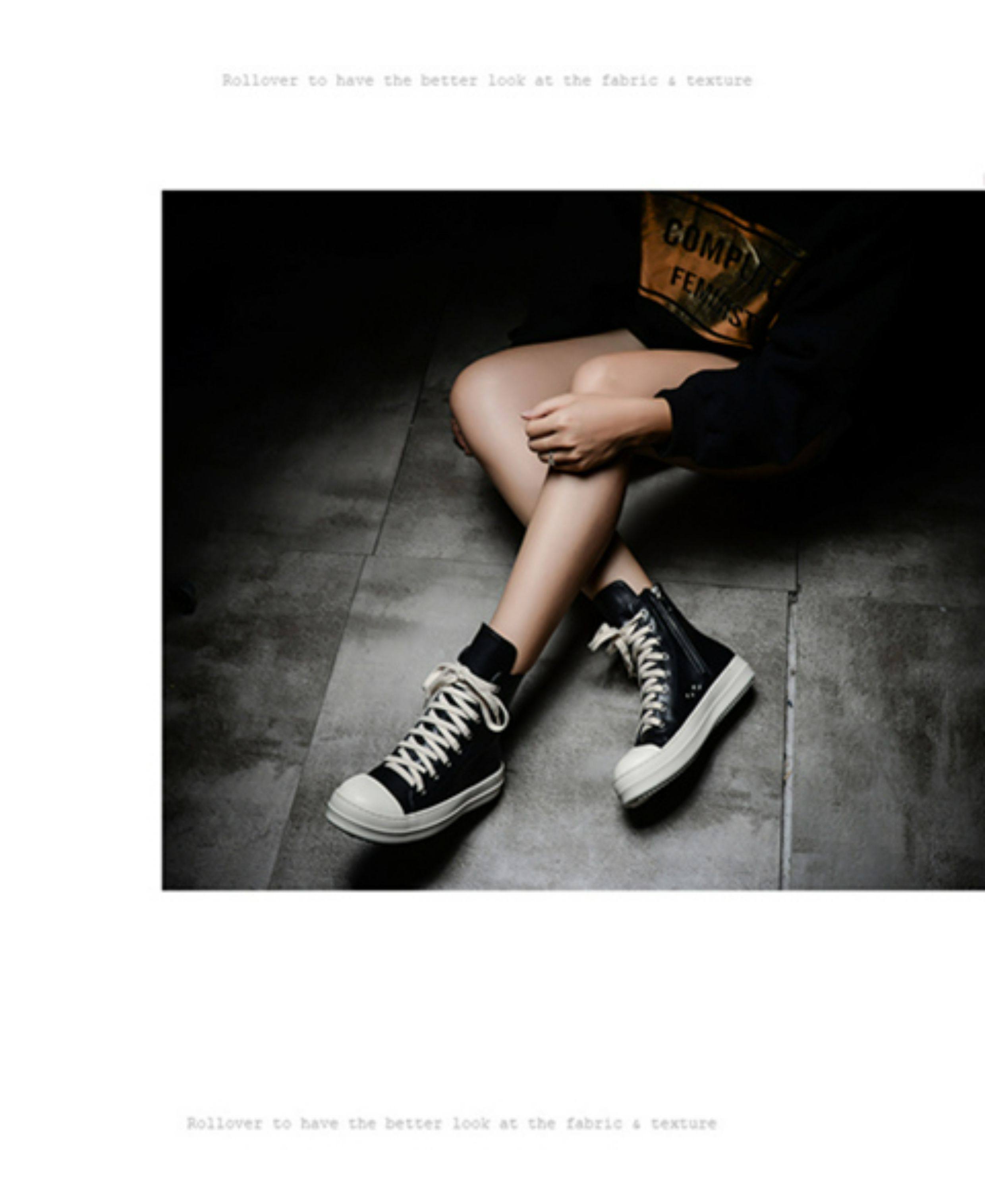 ins Super Popular Ro High-Top Shoes for Women, Autumn Canvas Thick-Soled Lace-Up Genuine Leather Versatile Couple's Sports Sneakers, Dad Shoes