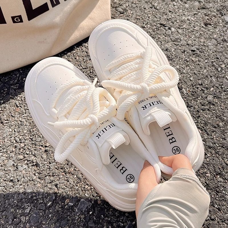 Thick-Soled White Sneakers for Women, 2025 New Autumn and Winter Korean Style Versatile Shoes to Match Skirts, Sneakers, and Skate Shoes