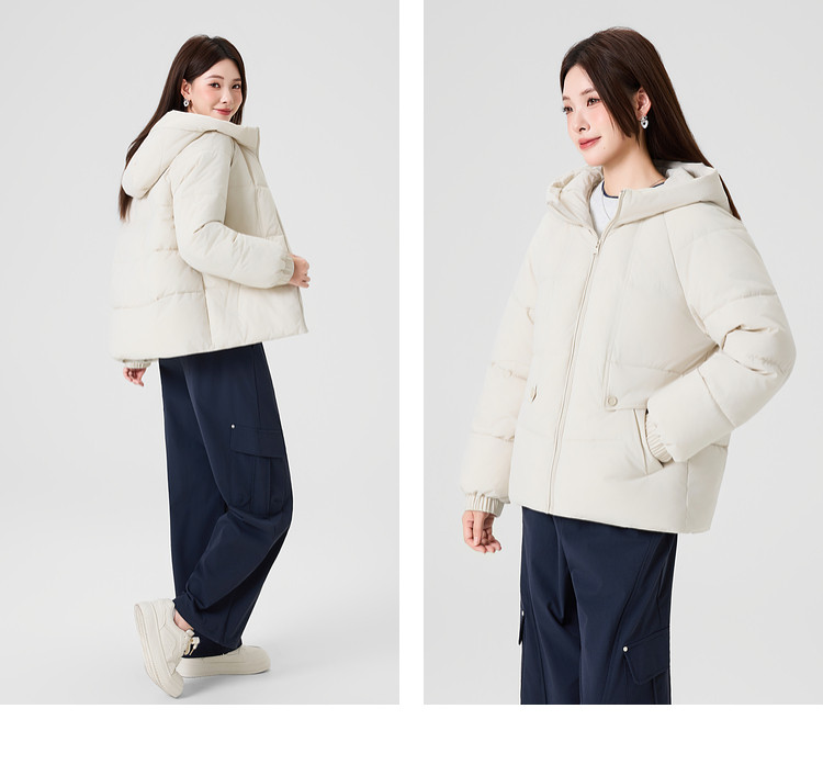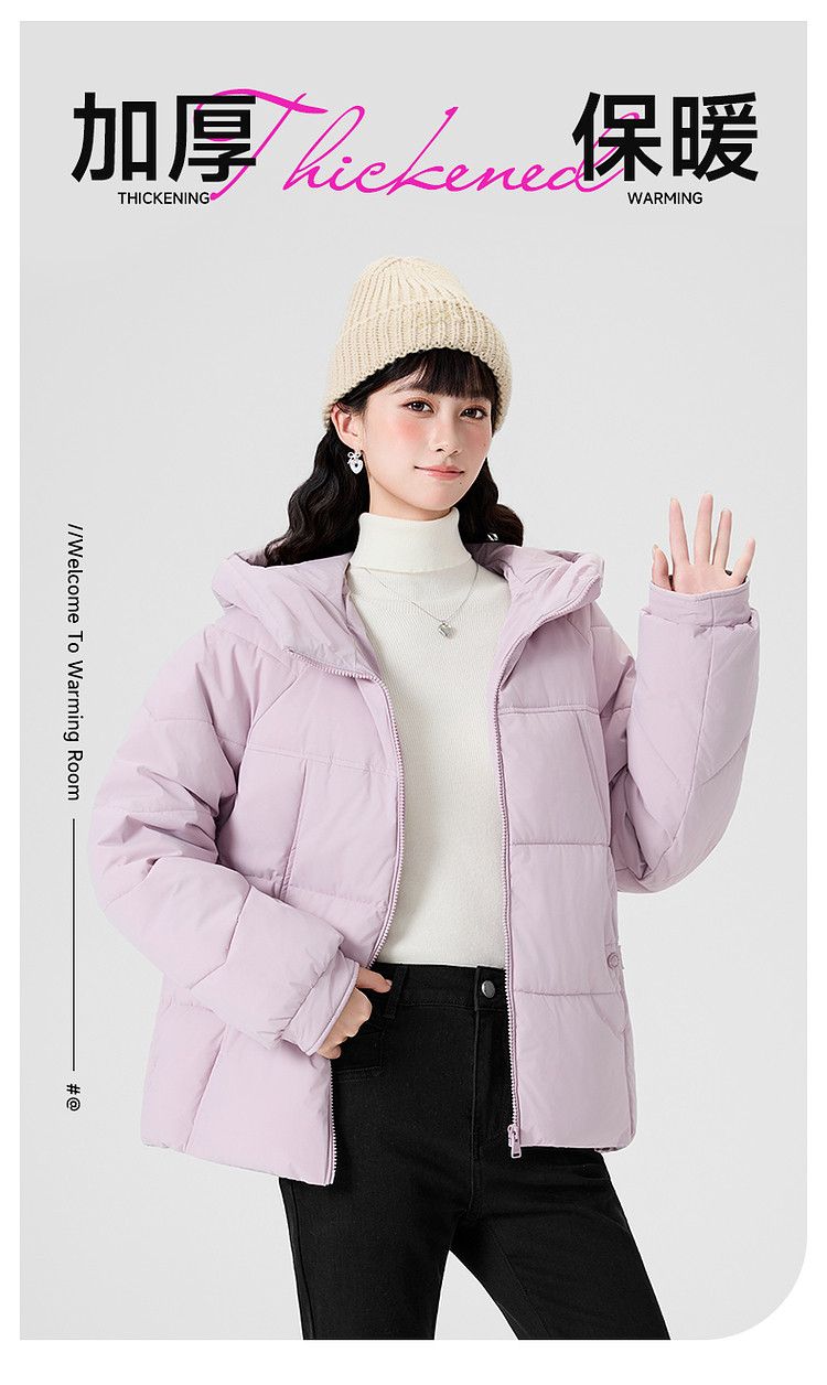 Kuaiyu Women's Cotton Jacket 2025 Winter New Style Slightly Loose Solid Color Hooded Coat Cold-Proof Warm Thickened Small Cotton-Padded Jacket