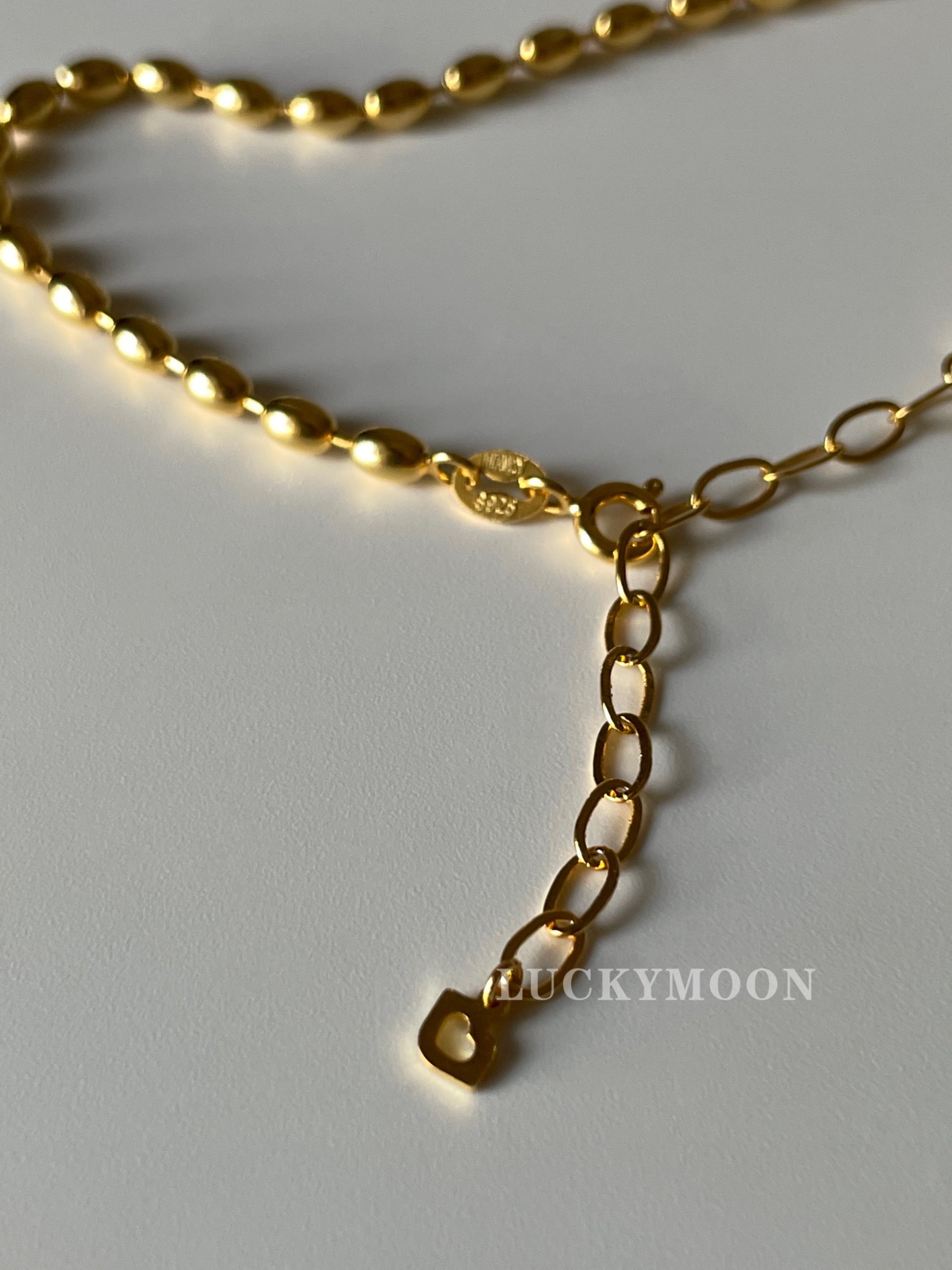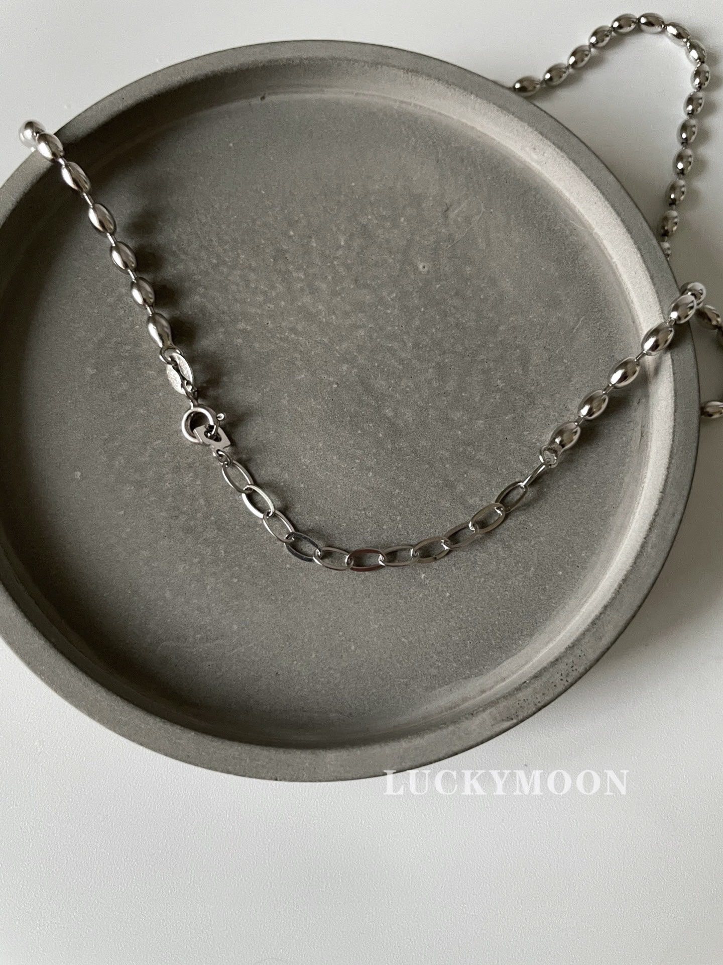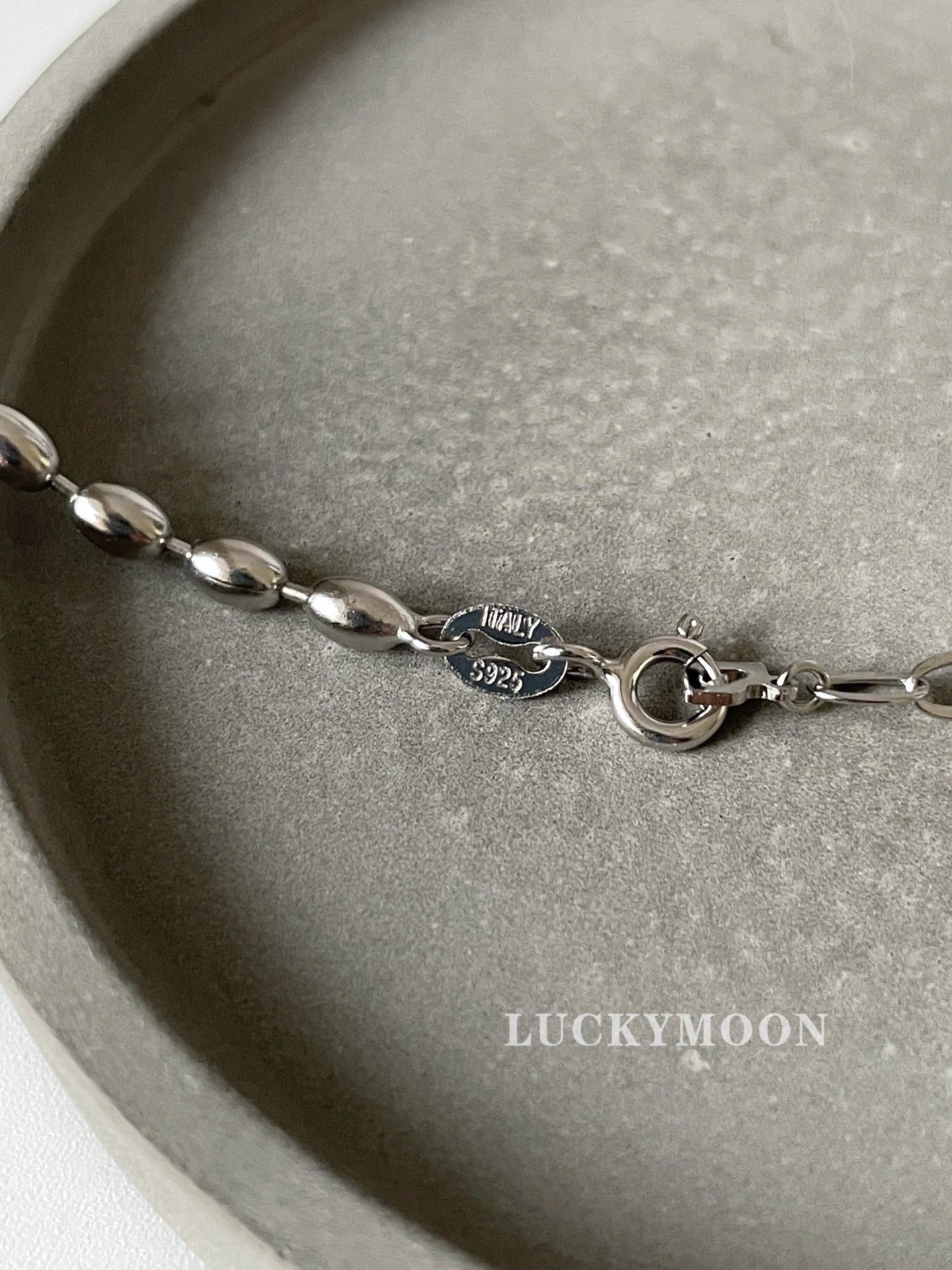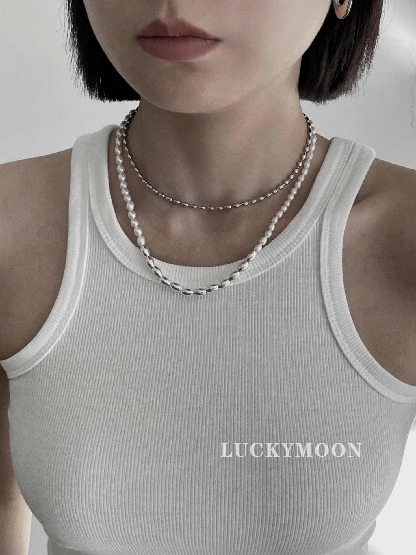 Luckymoon Same Style Rice Bead Necklace S925 All-Over Sterling Silver N001