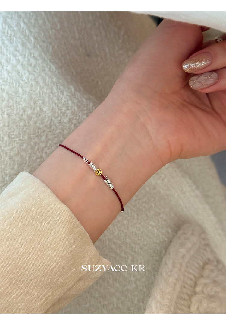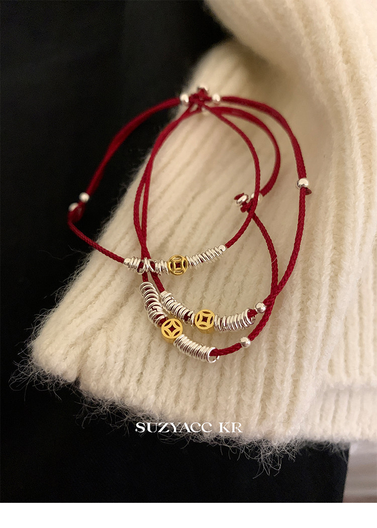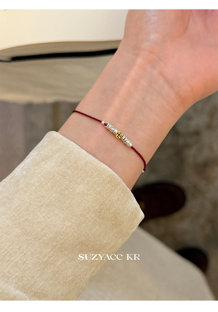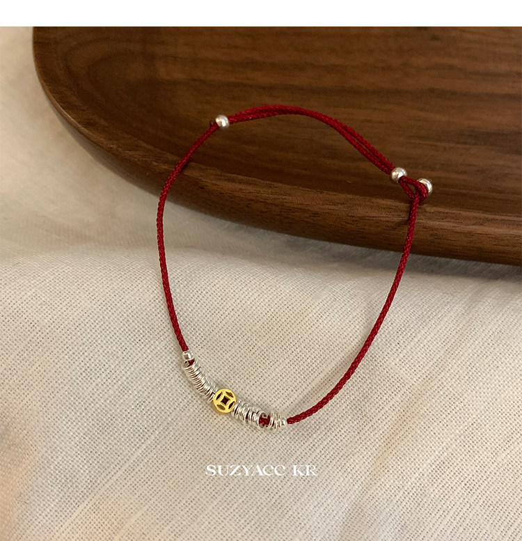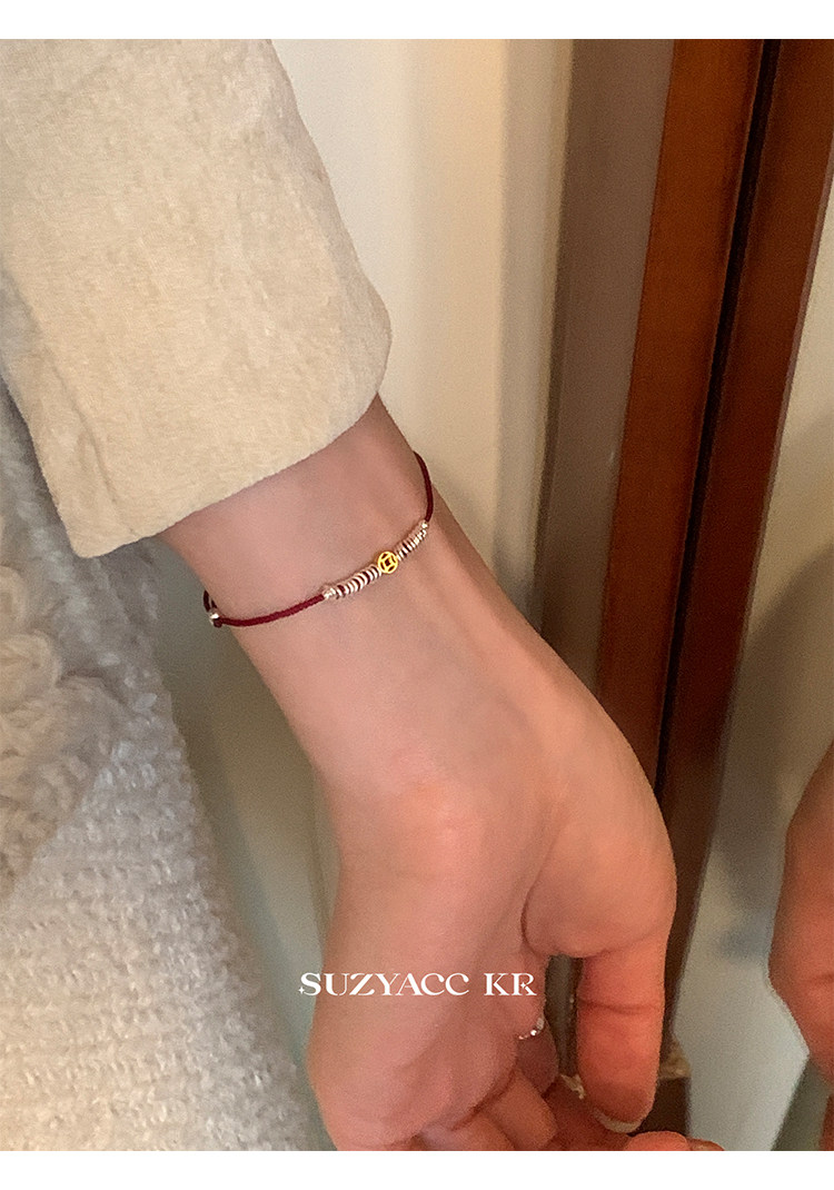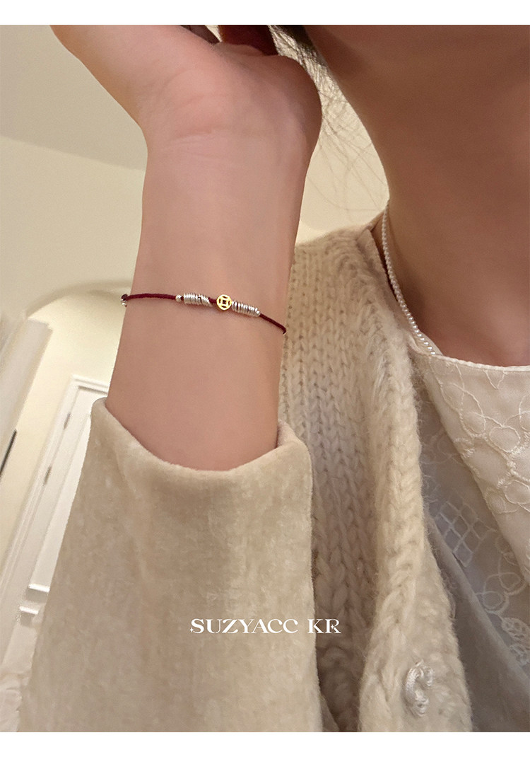 Suzyacc Kr Coin Silver Red String Bracelet for Women 2025 New Light Luxury Niche Exquisite Zodiac Year Woven Rope