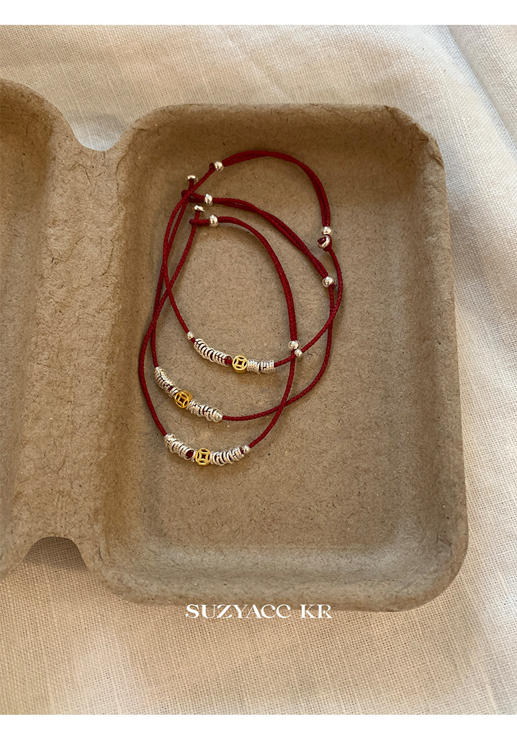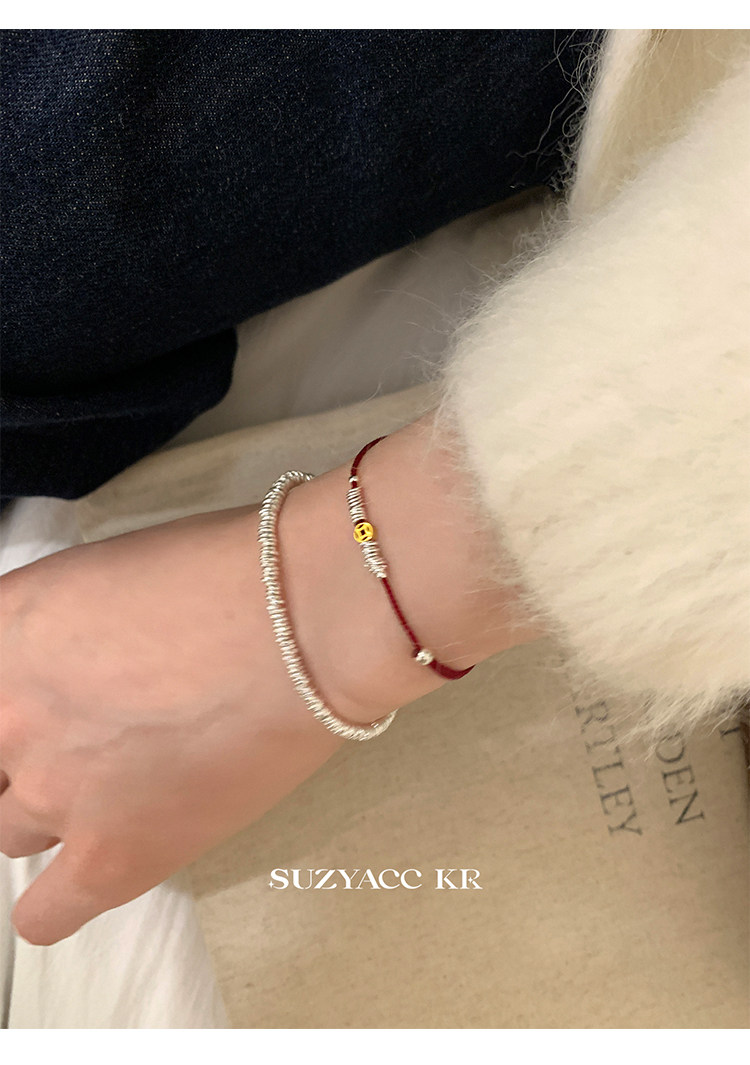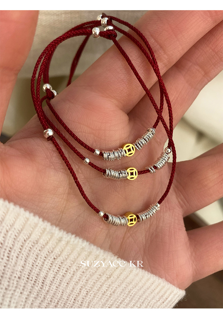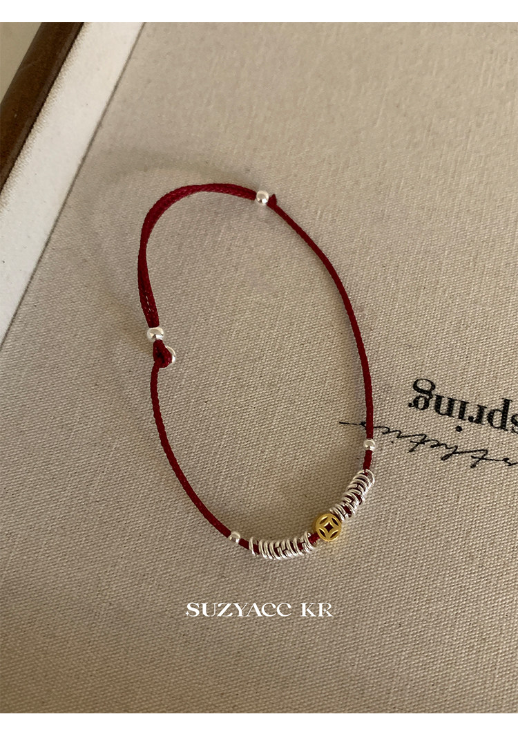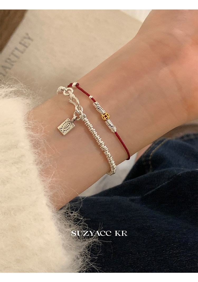Suzyacc Kr Coin Silver Red String Bracelet for Women 2025 New Light Luxury Niche Exquisite Zodiac Year Woven Rope