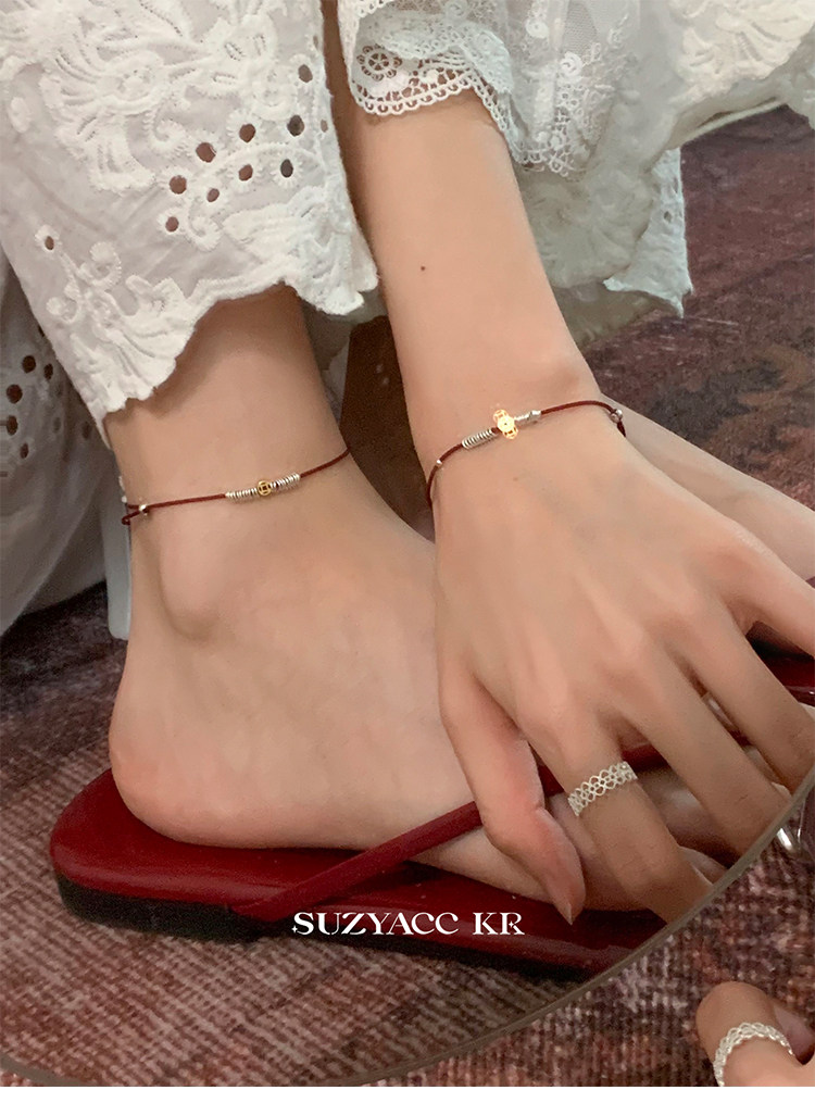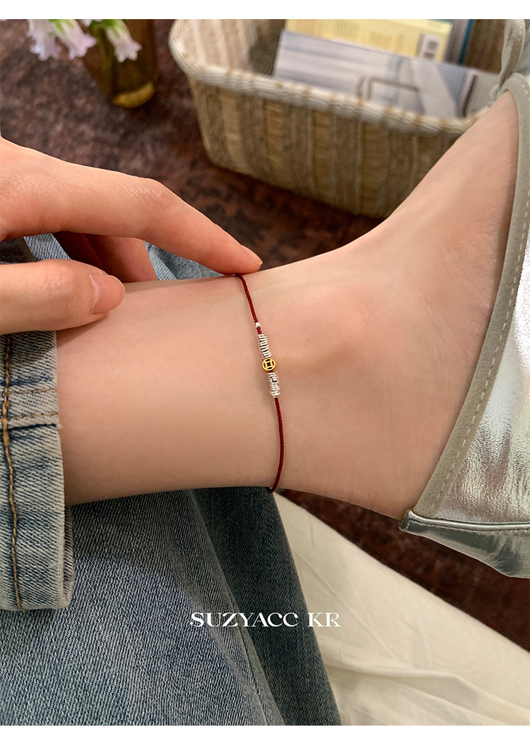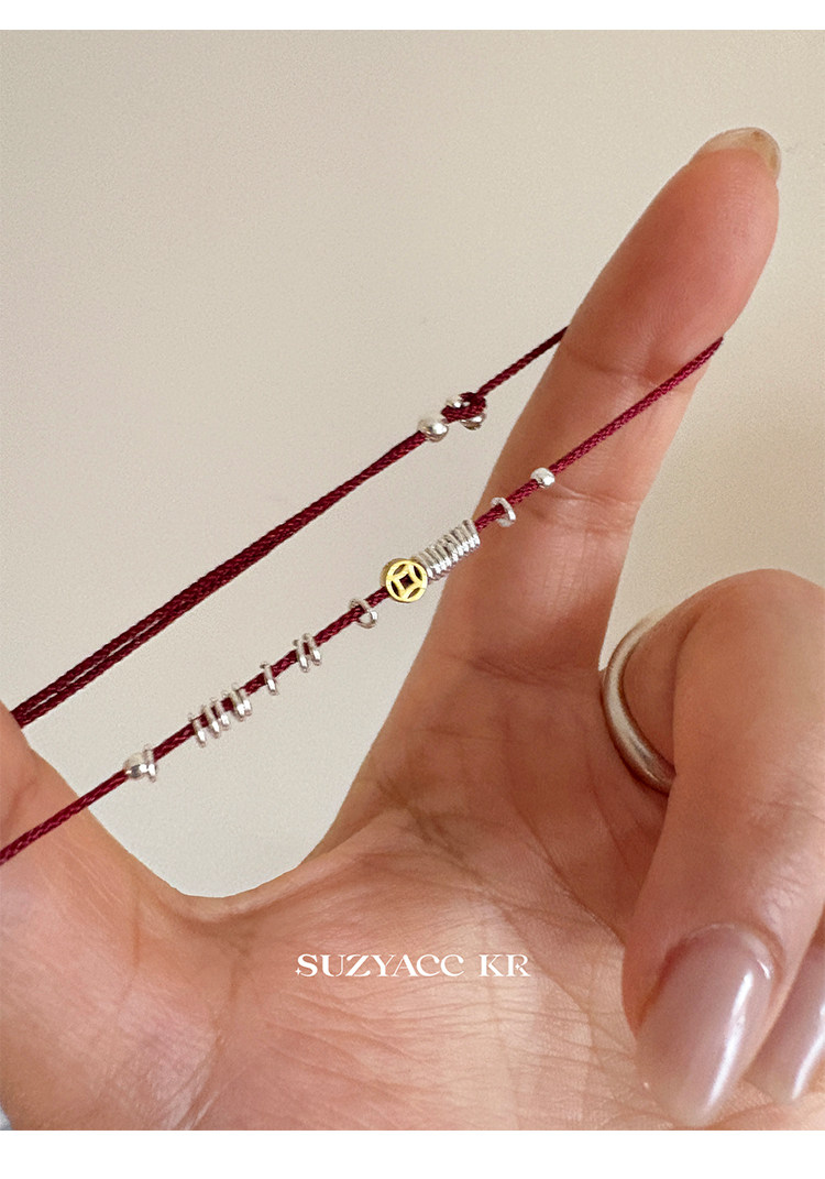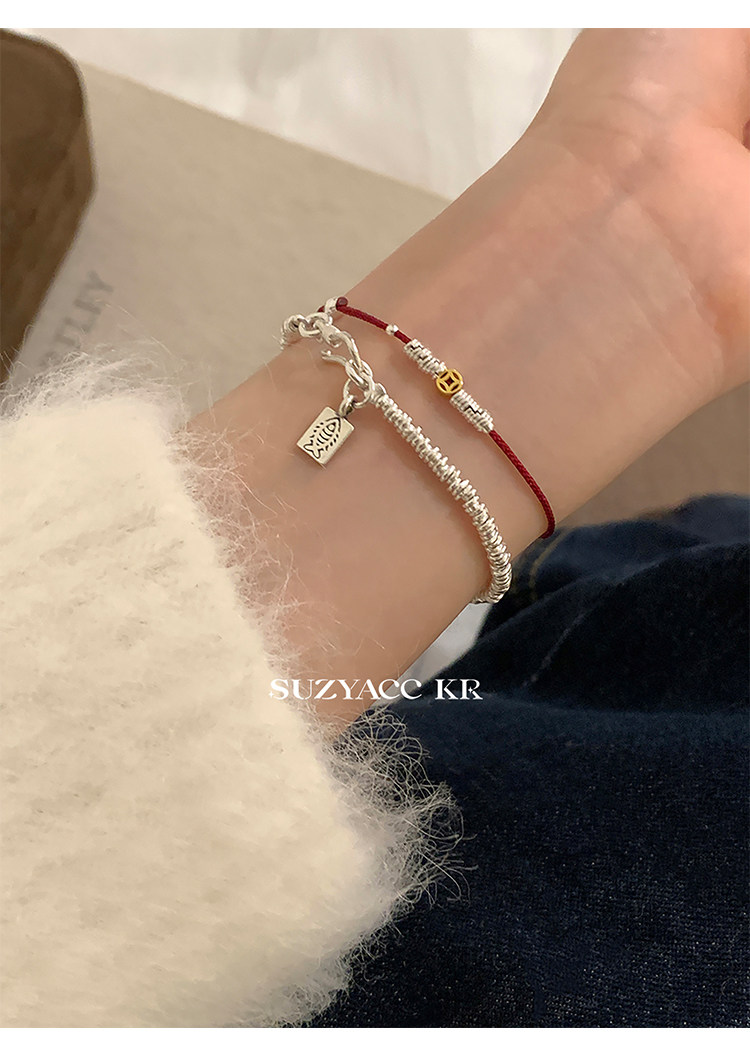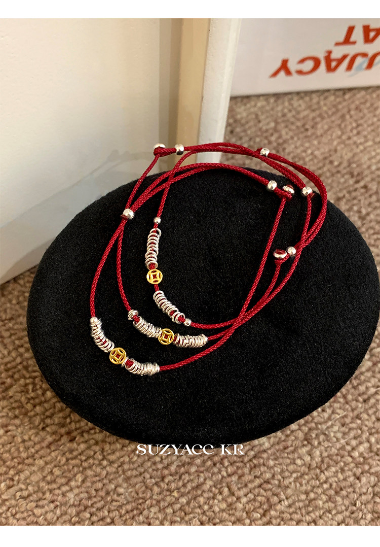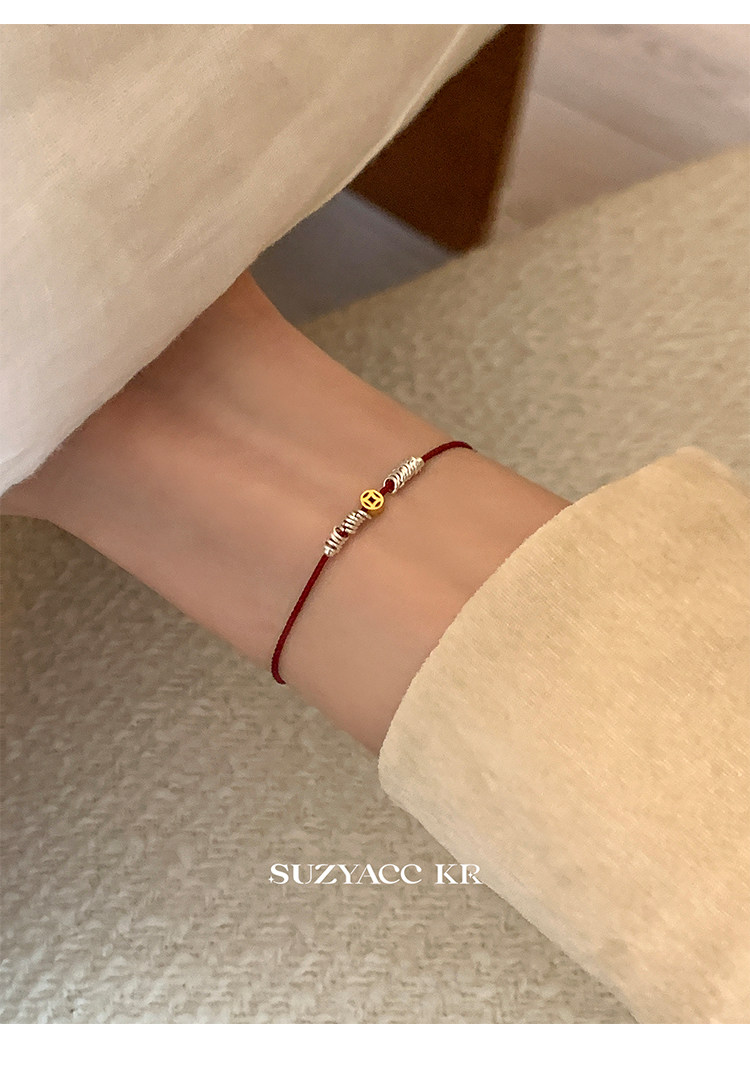 Suzyacc Kr Coin Silver Red String Bracelet for Women 2025 New Light Luxury Niche Exquisite Zodiac Year Woven Rope