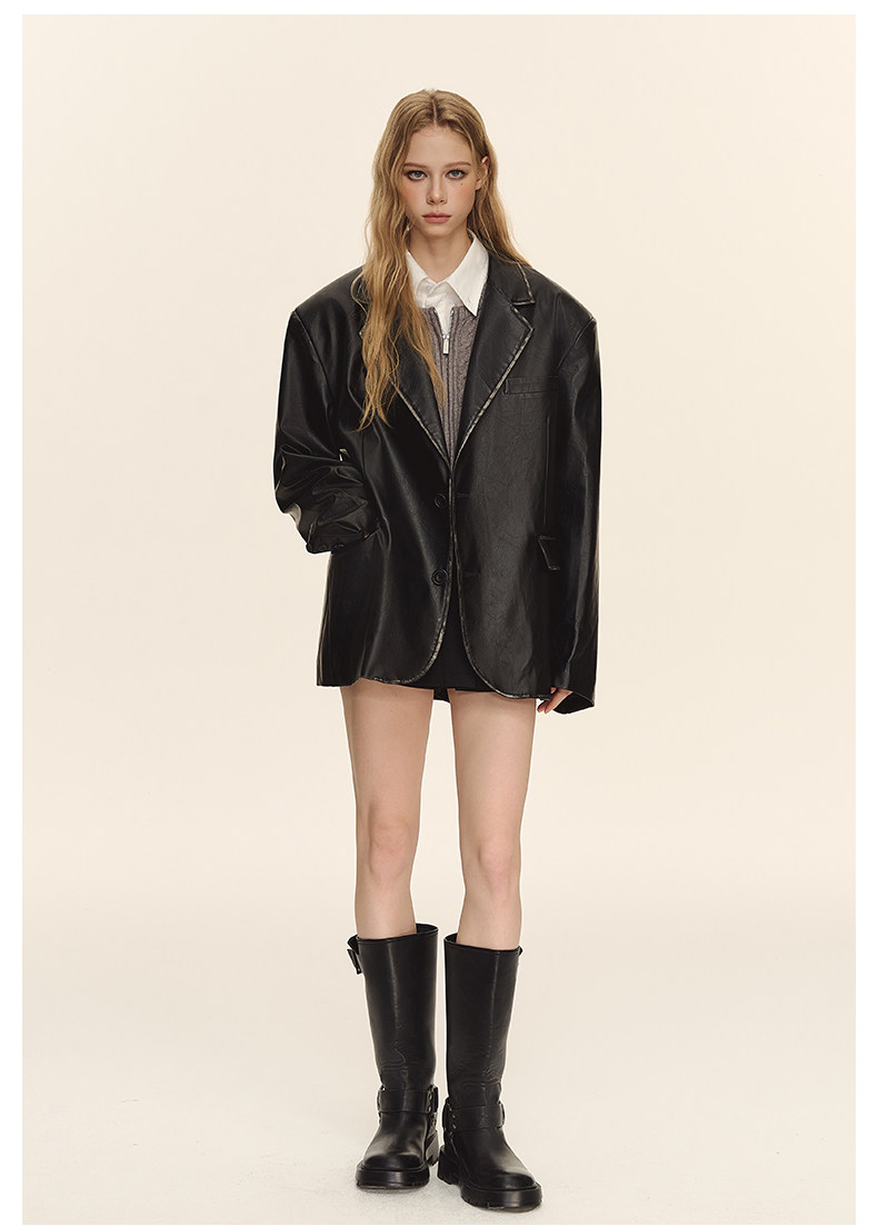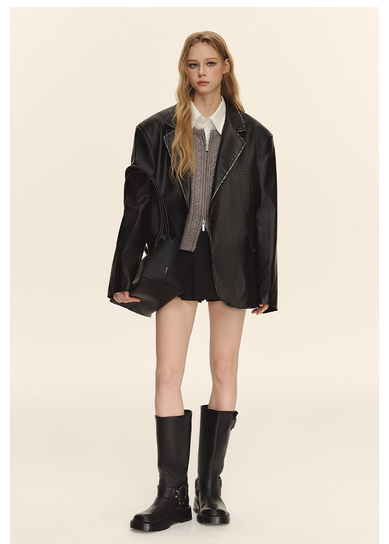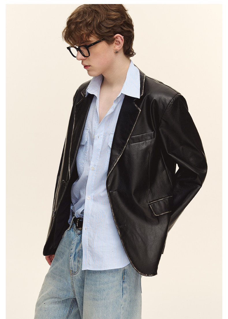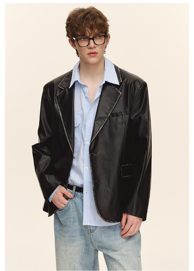 Climax Vision Distressed Color-Washed Eco-Friendly Leather Suit Jacket American Retro Unisex Leather Jacket