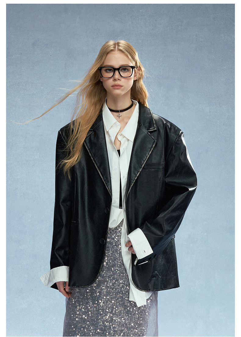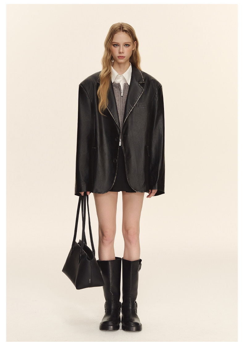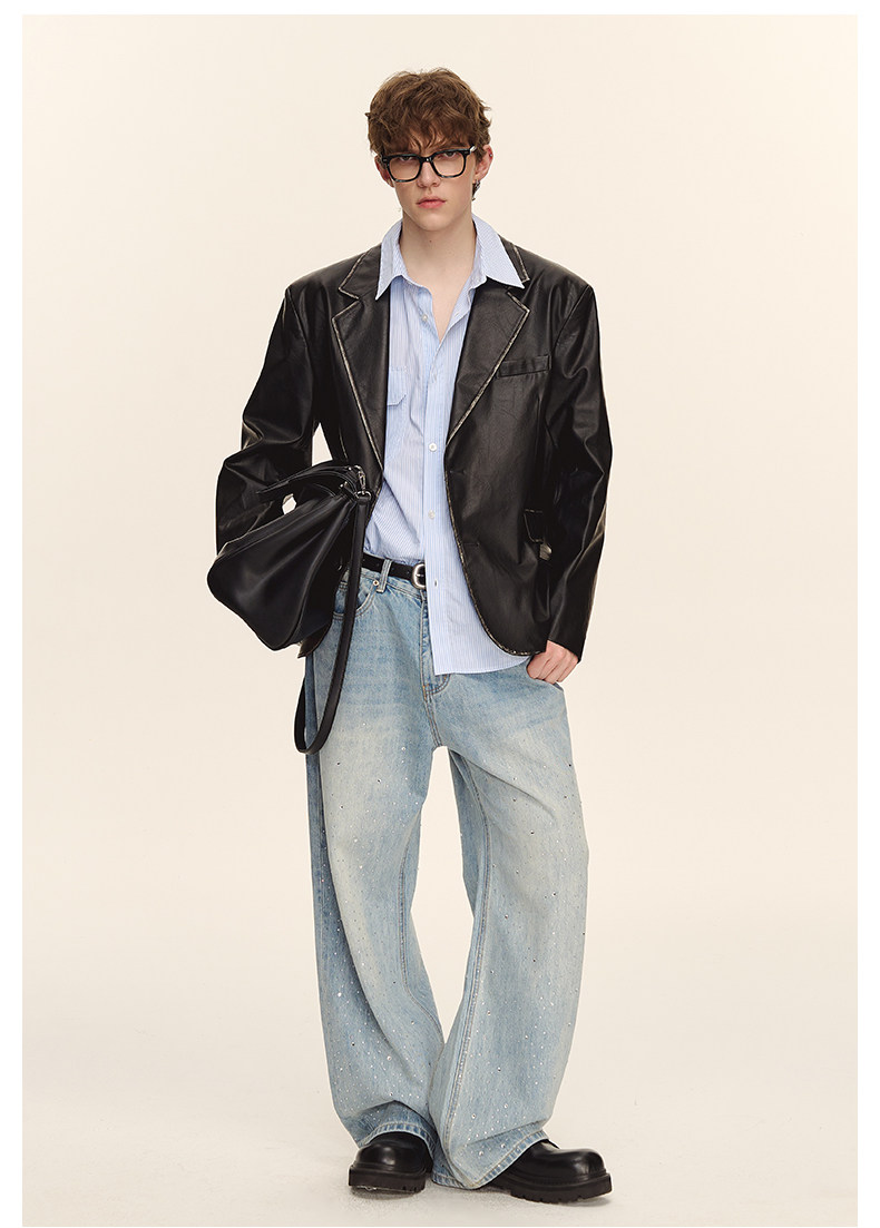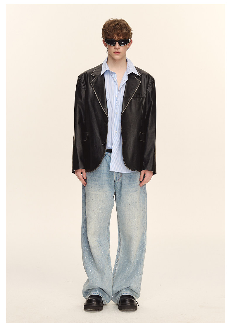 Climax Vision Distressed Color-Washed Eco-Friendly Leather Suit Jacket American Retro Unisex Leather Jacket