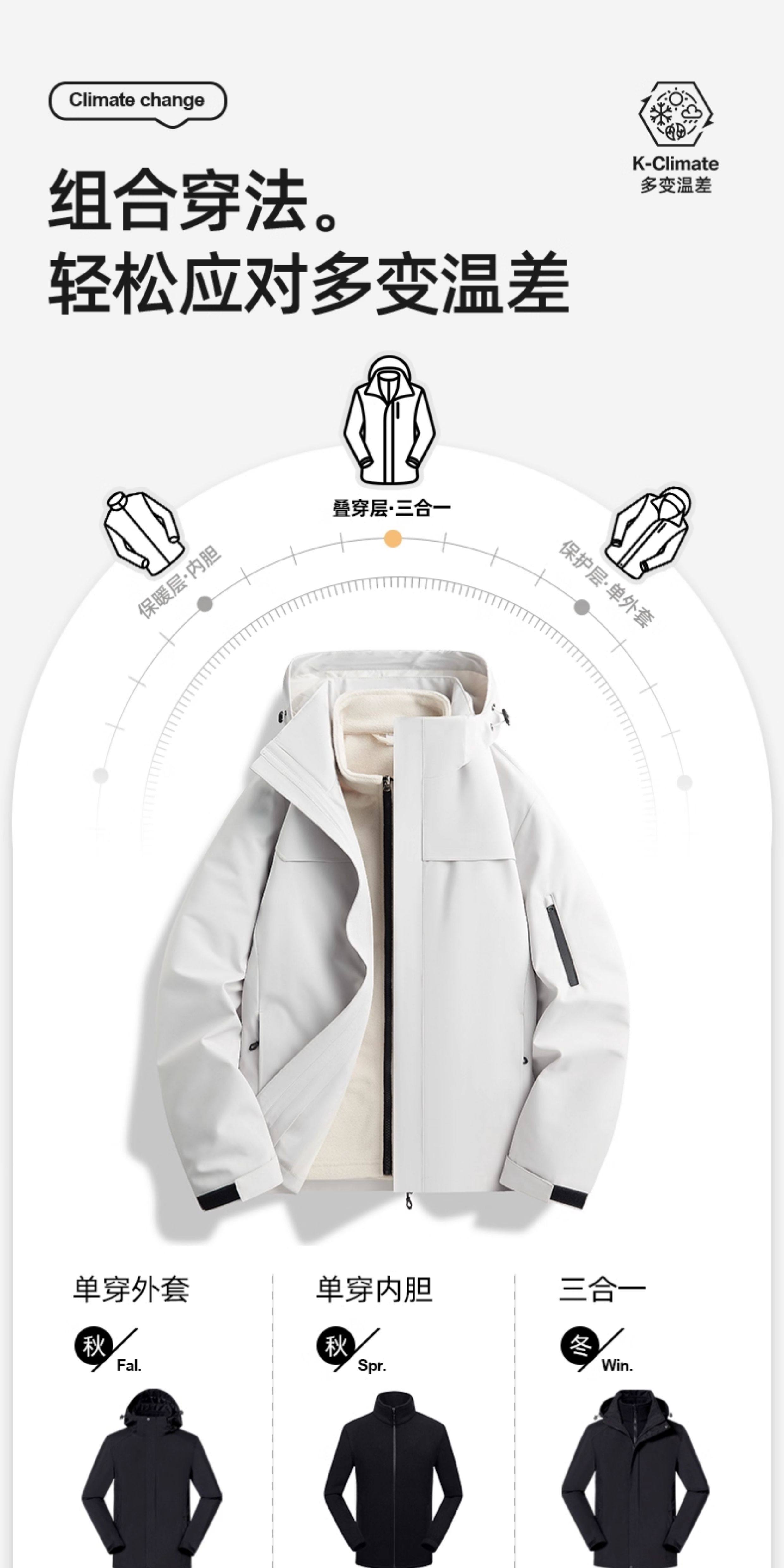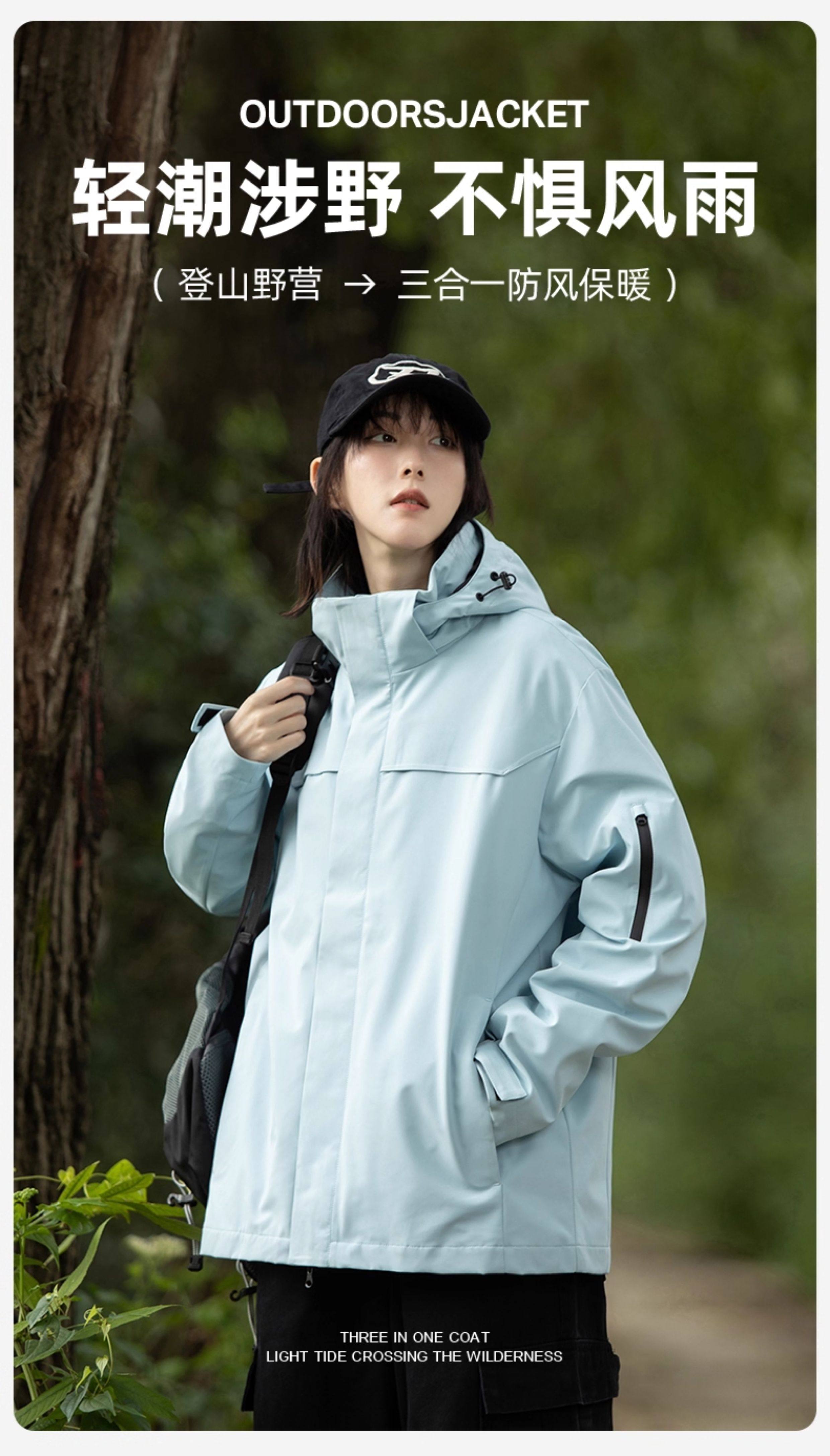 Woodpecker Brand Women's 3-in-1 Jacket 2025 New Spring and Autumn Petite Windproof Waterproof Hiking Jacket for Men