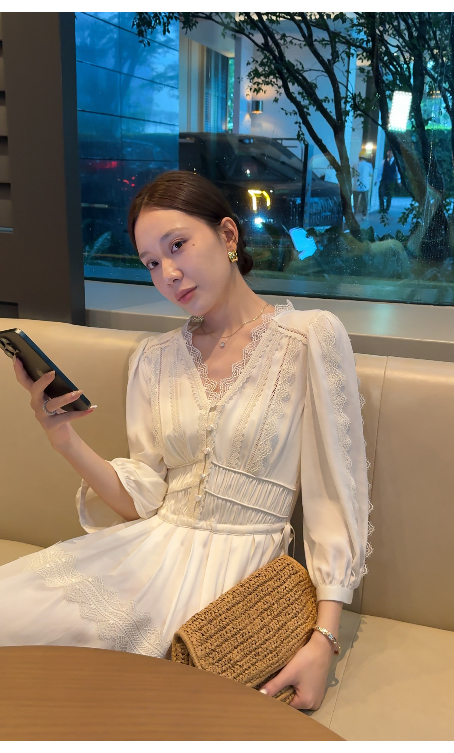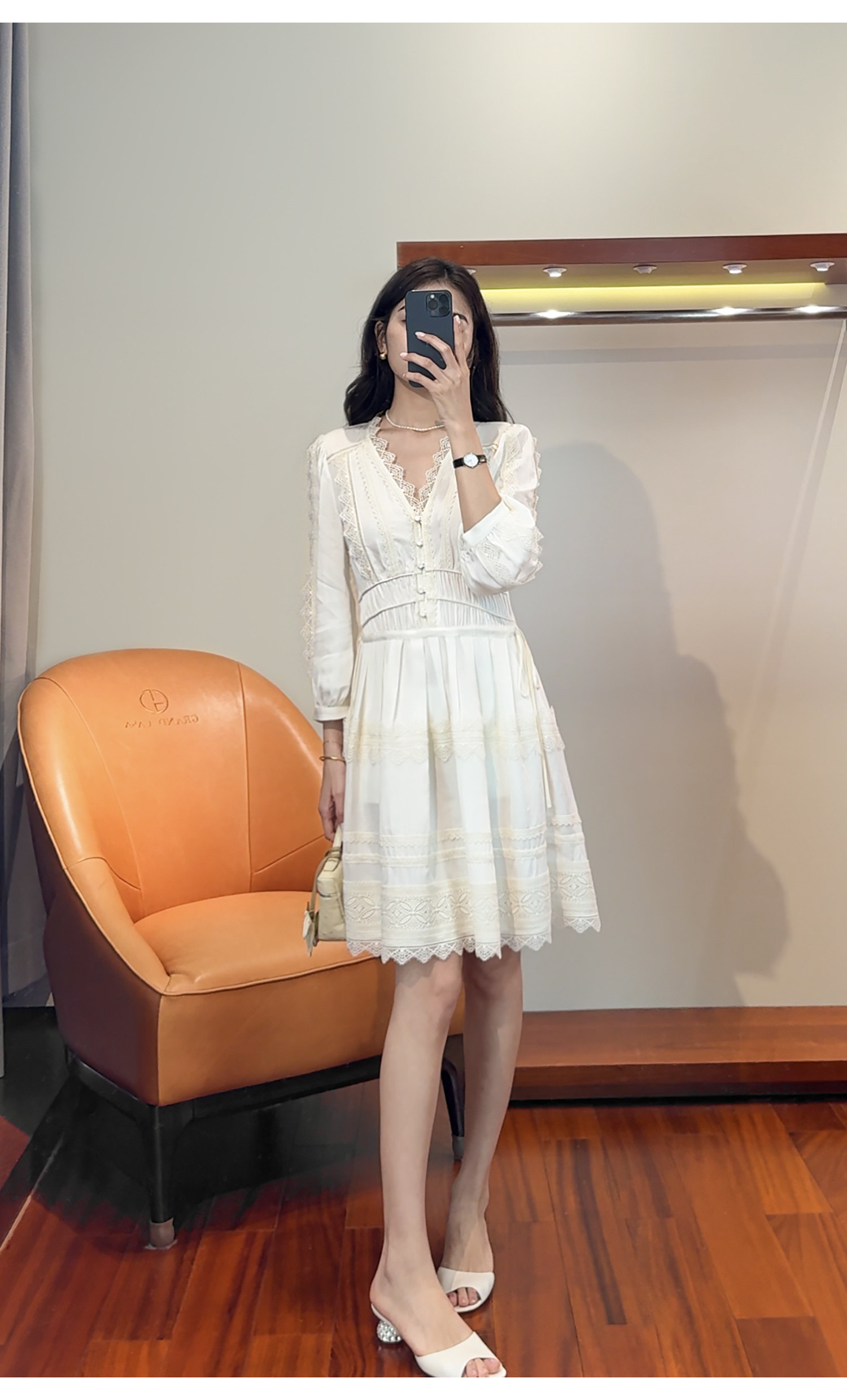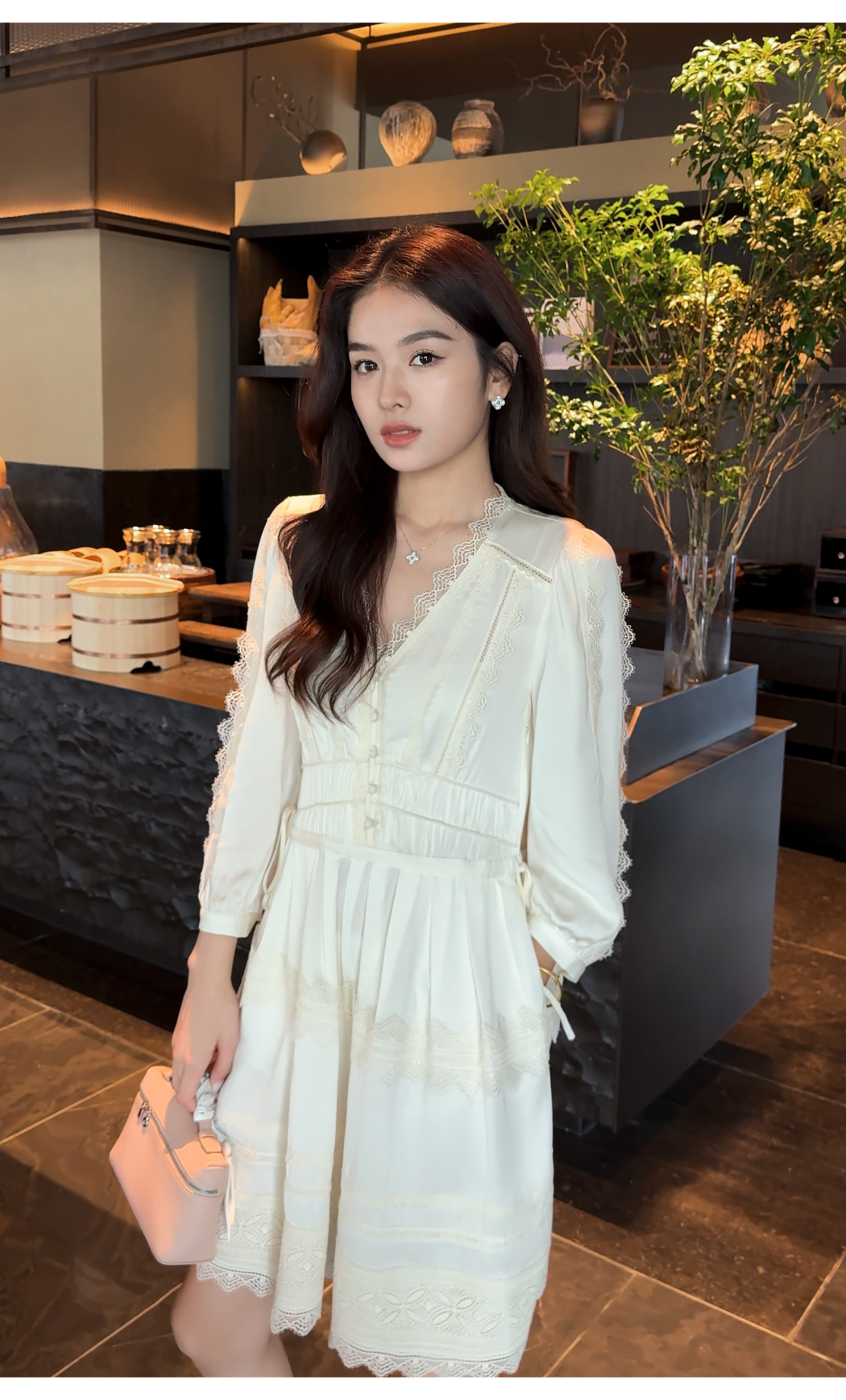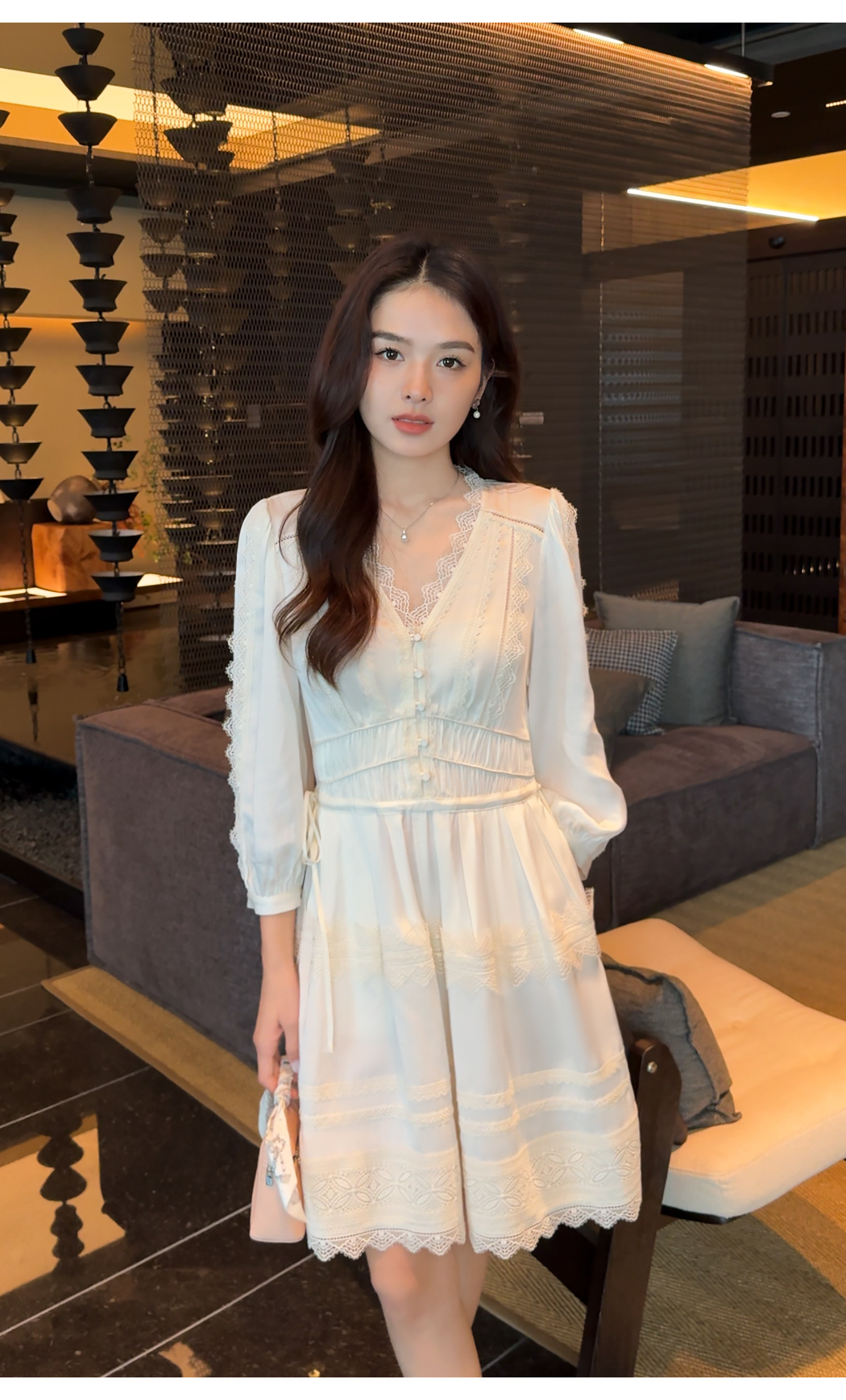 Shoe Magic Founder's "Urban Romance" S*P Lace Elegant Vacation V-Neck Waist-Cinching Short/Long Dress