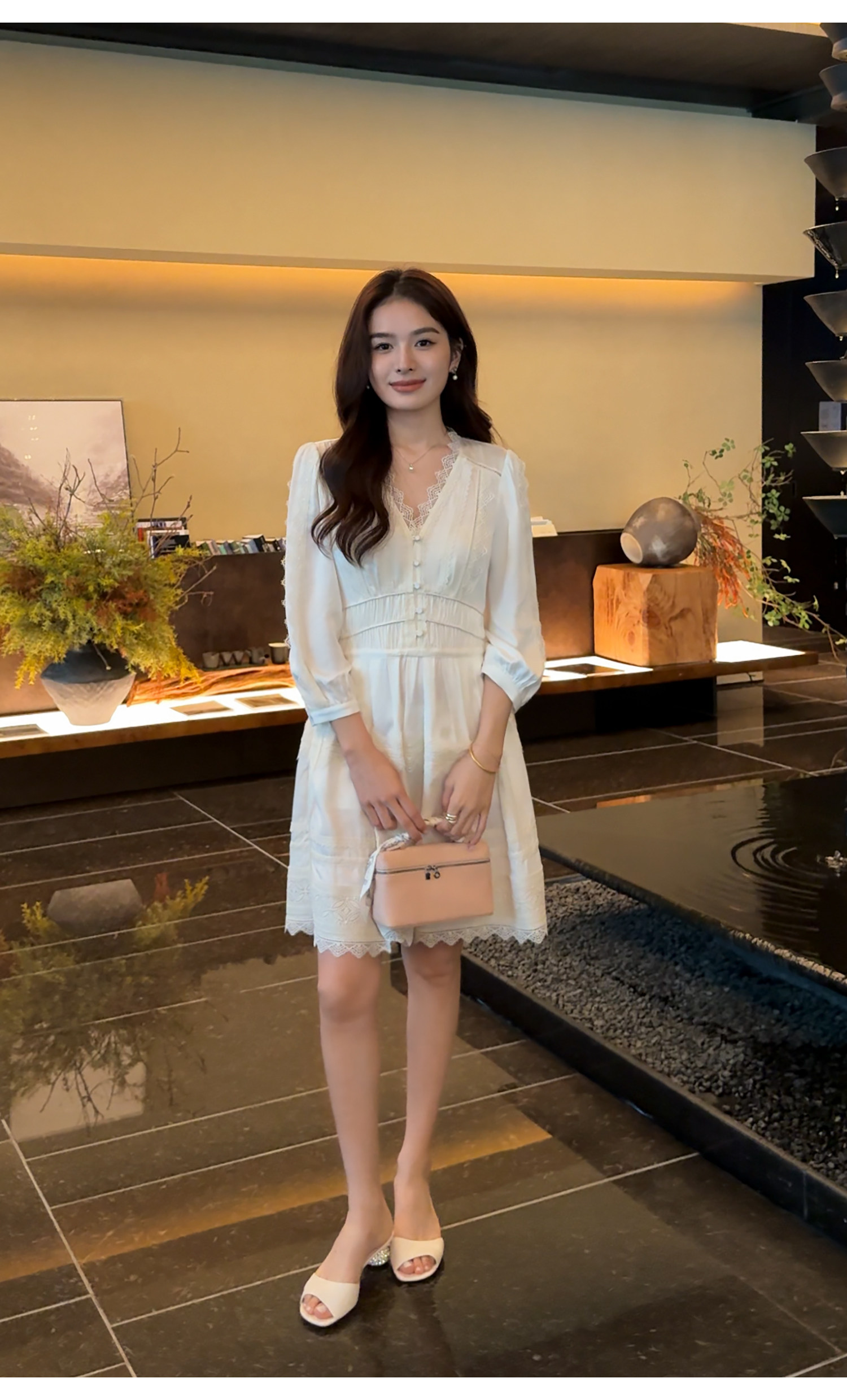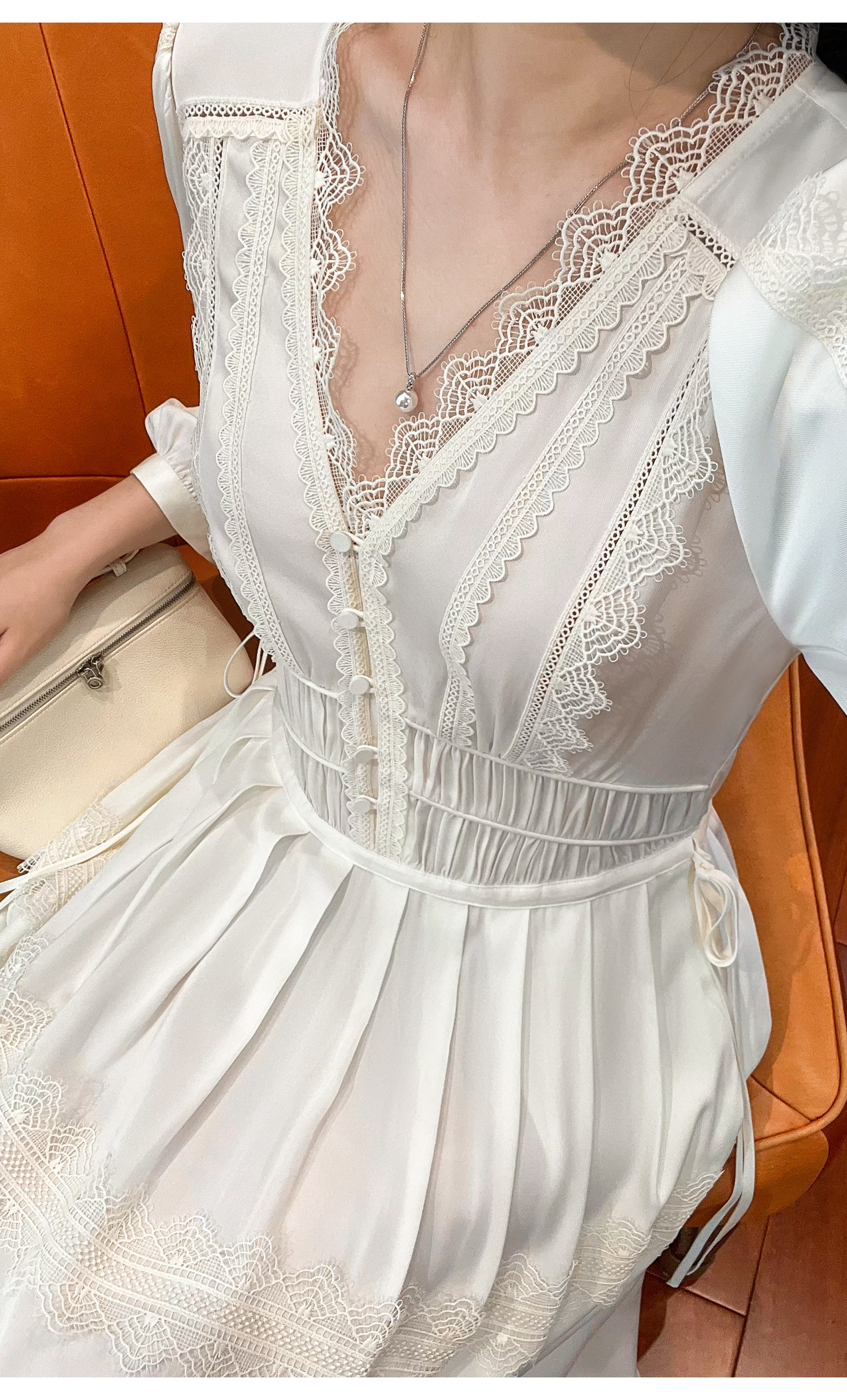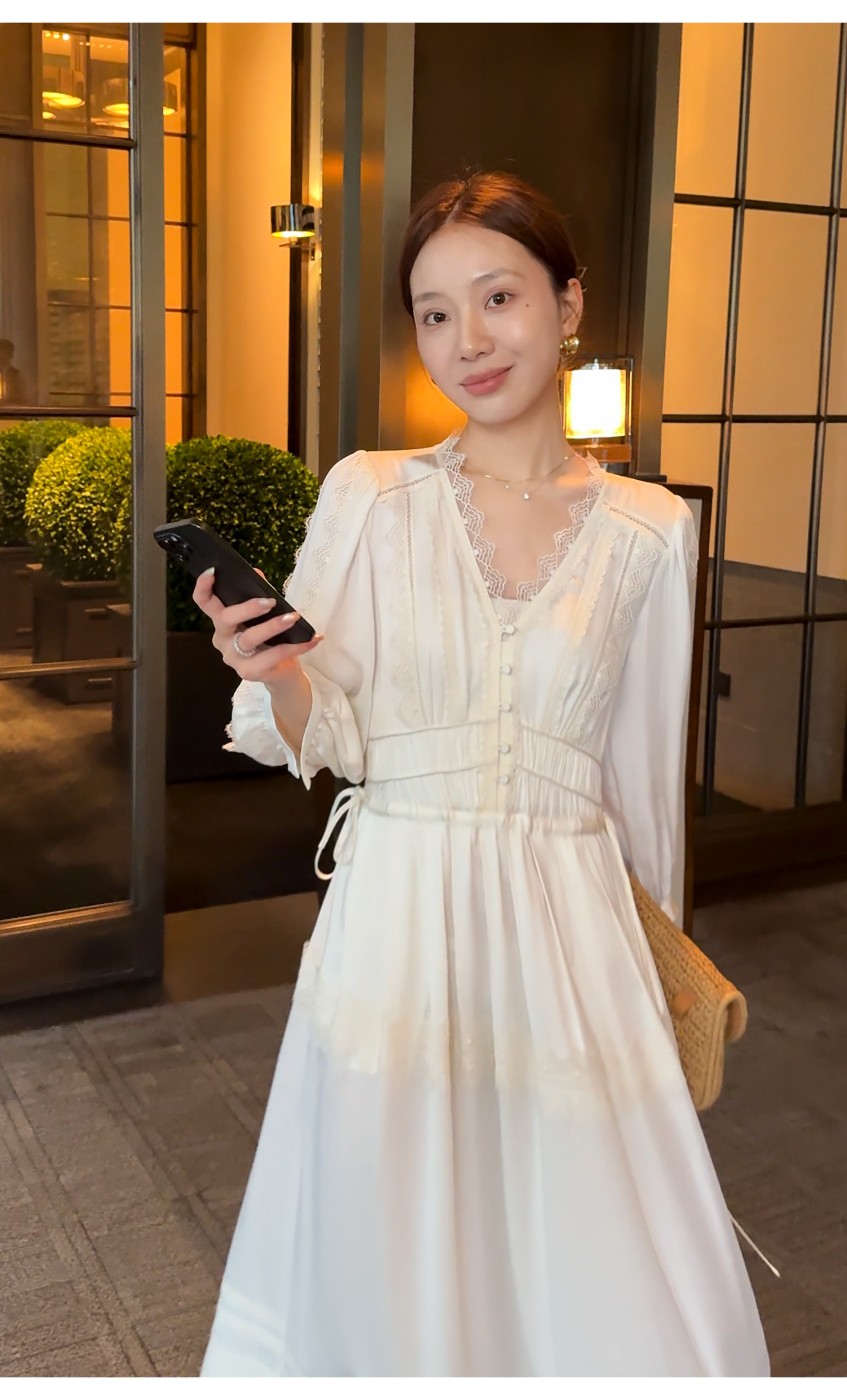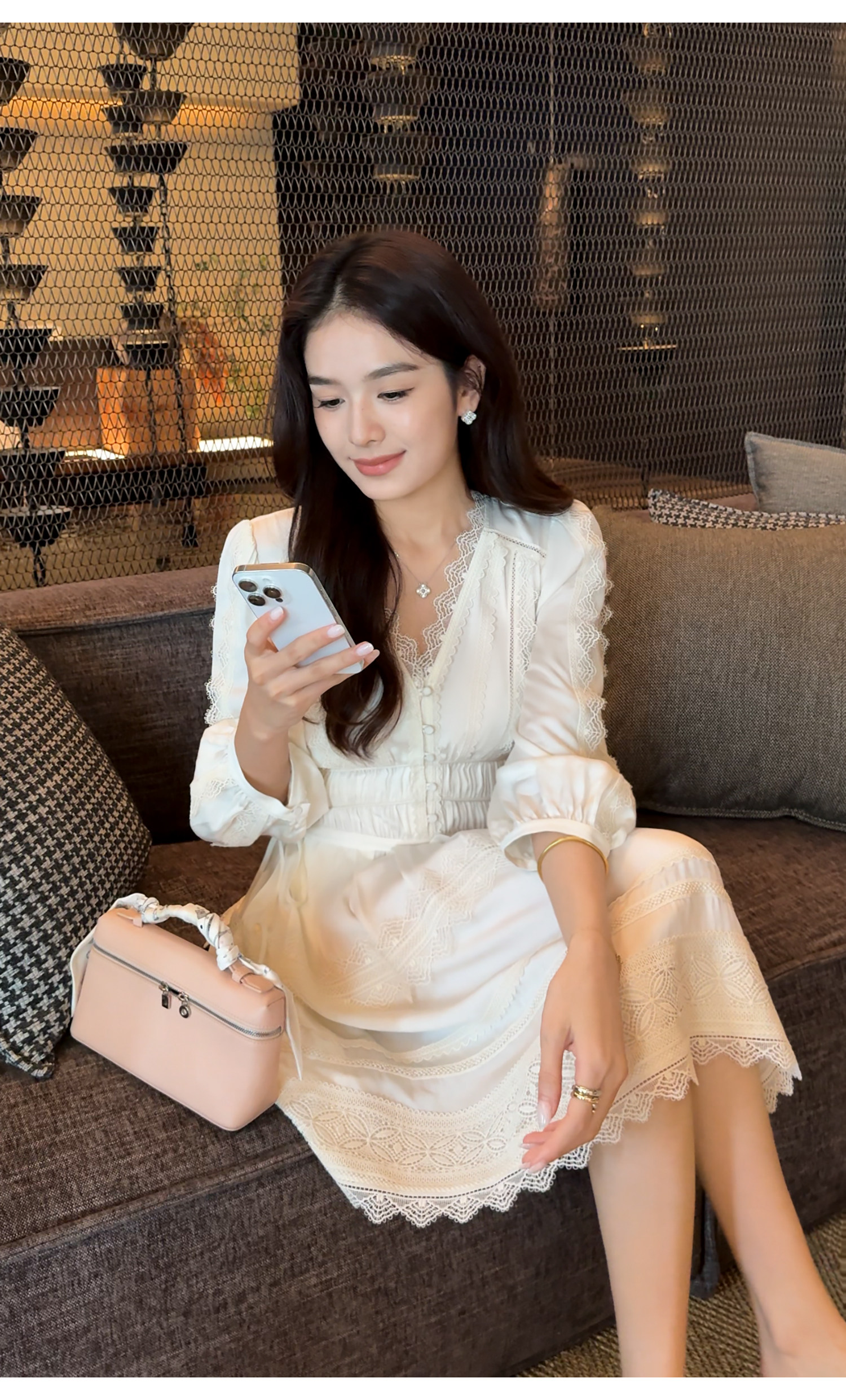 Shoe Magic Founder's "Urban Romance" S*P Lace Elegant Vacation V-Neck Waist-Cinching Short/Long Dress