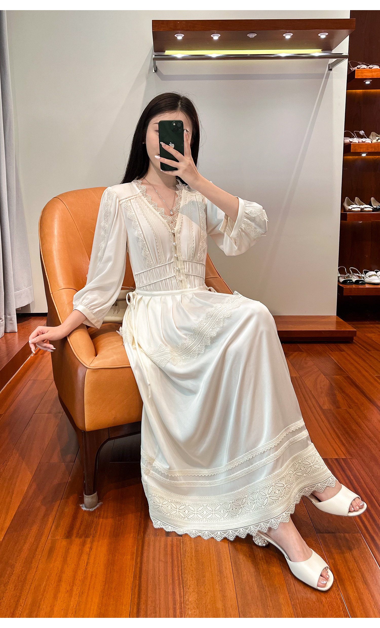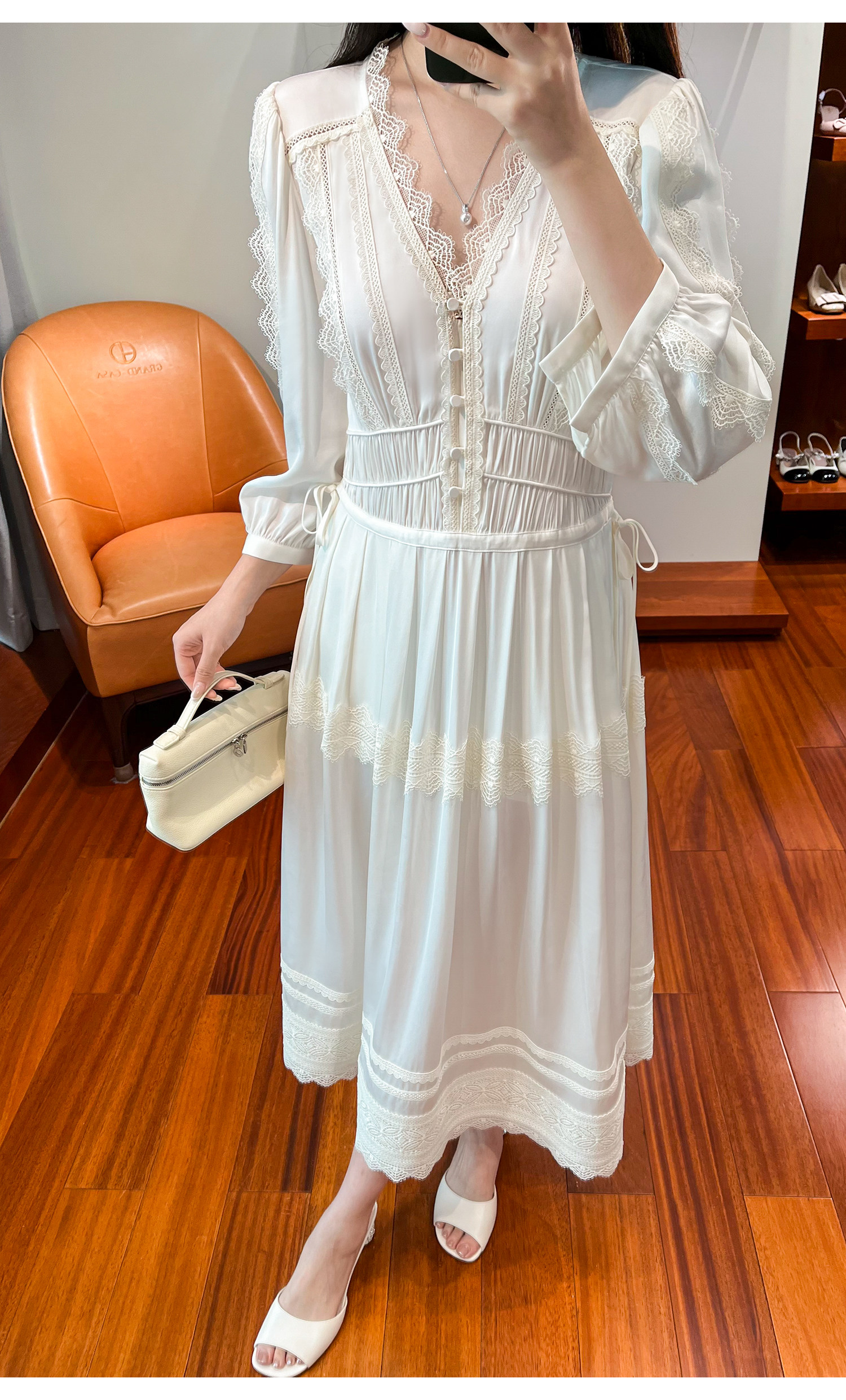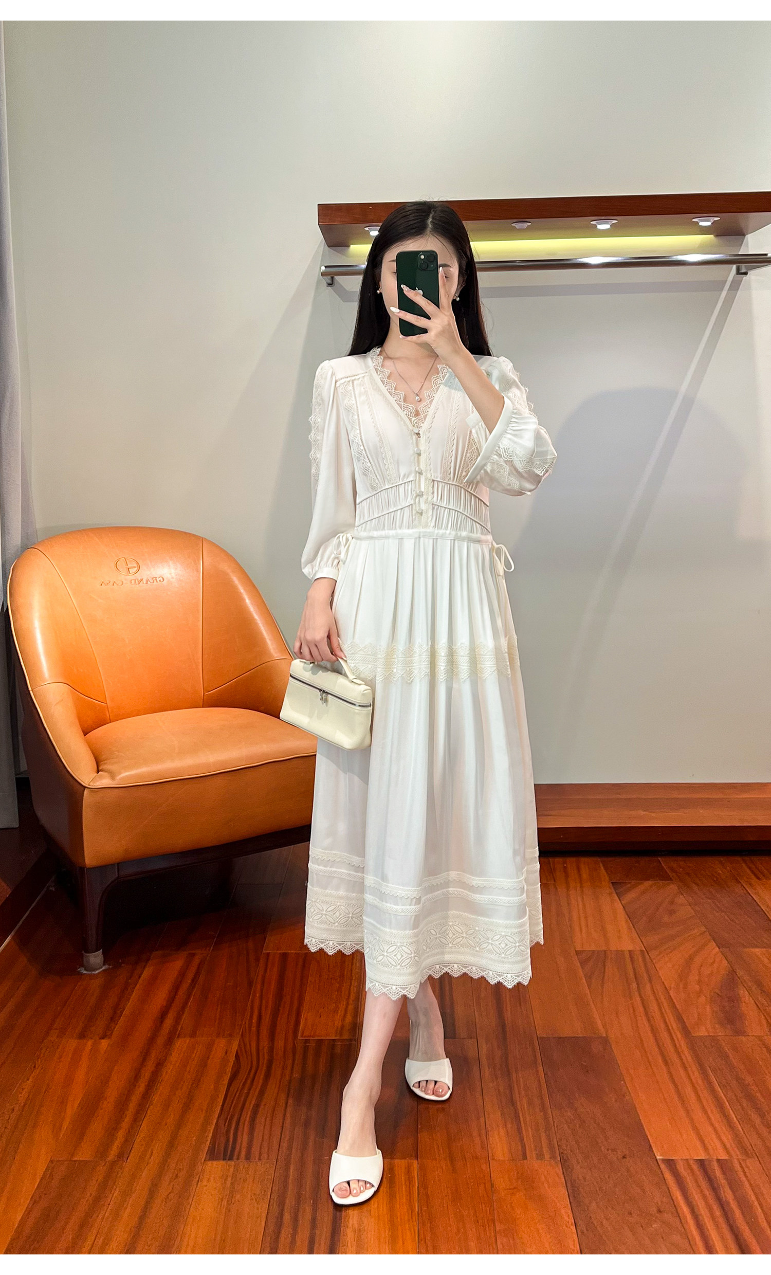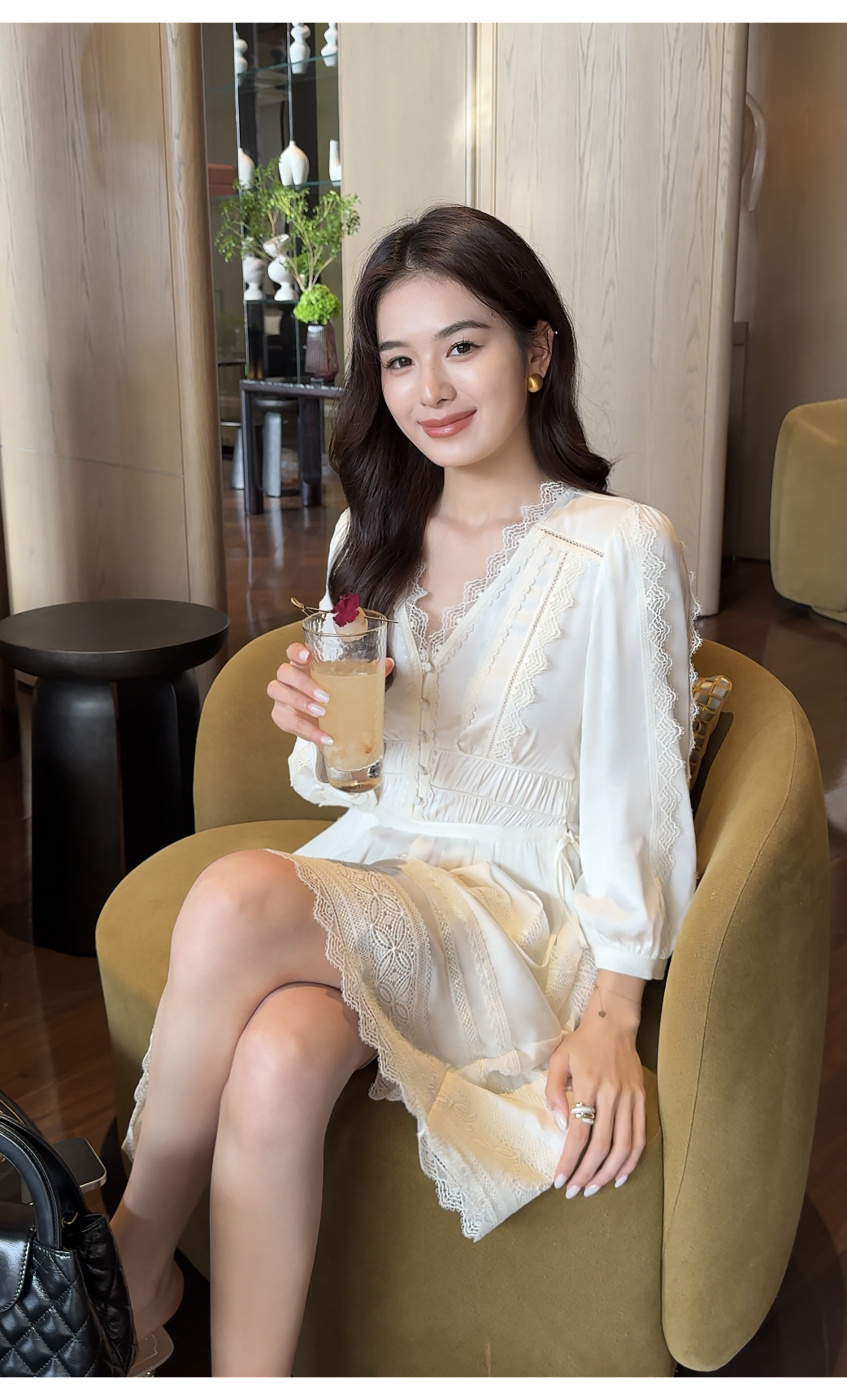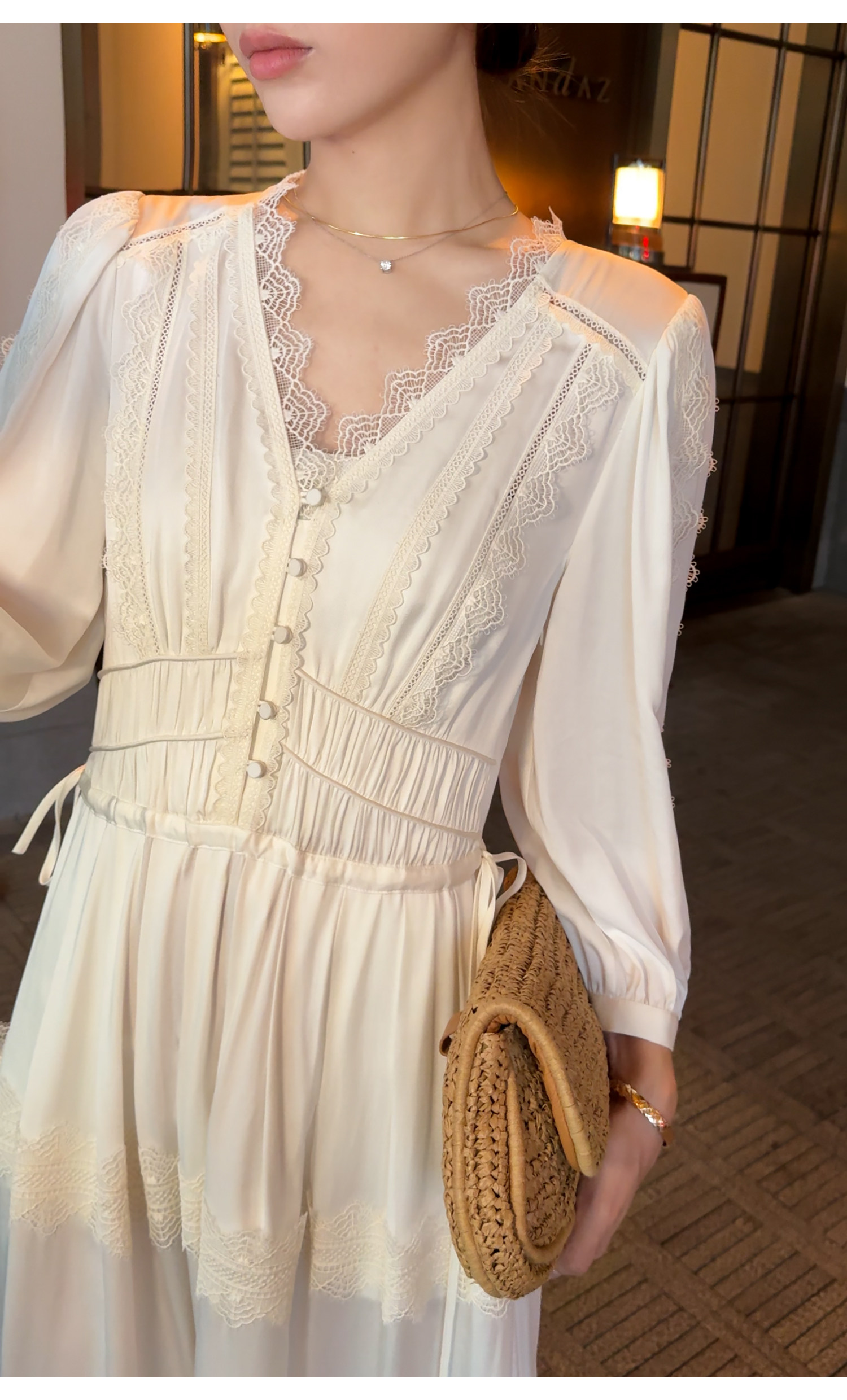 Shoe Magic Founder's "Urban Romance" S*P Lace Elegant Vacation V-Neck Waist-Cinching Short/Long Dress