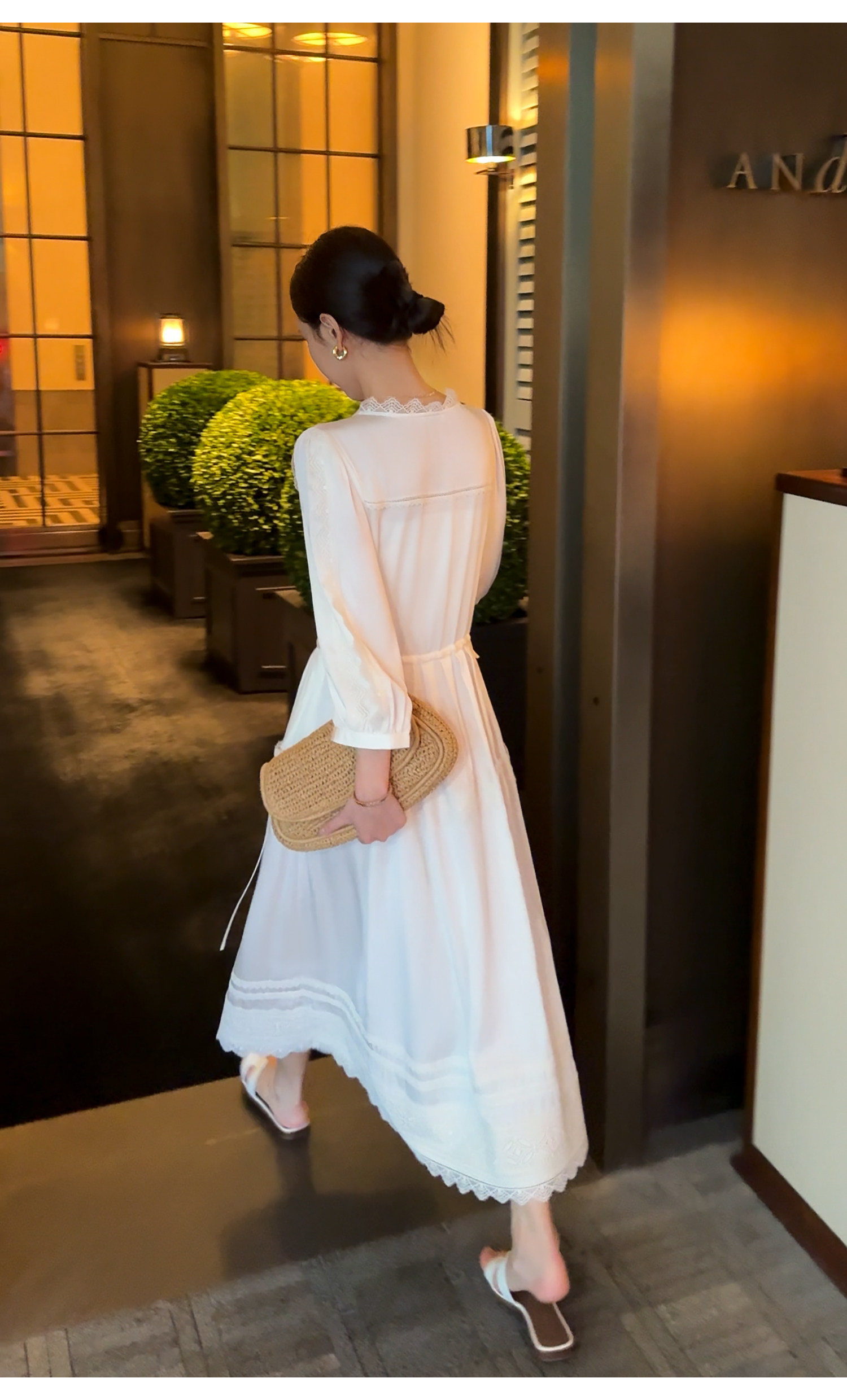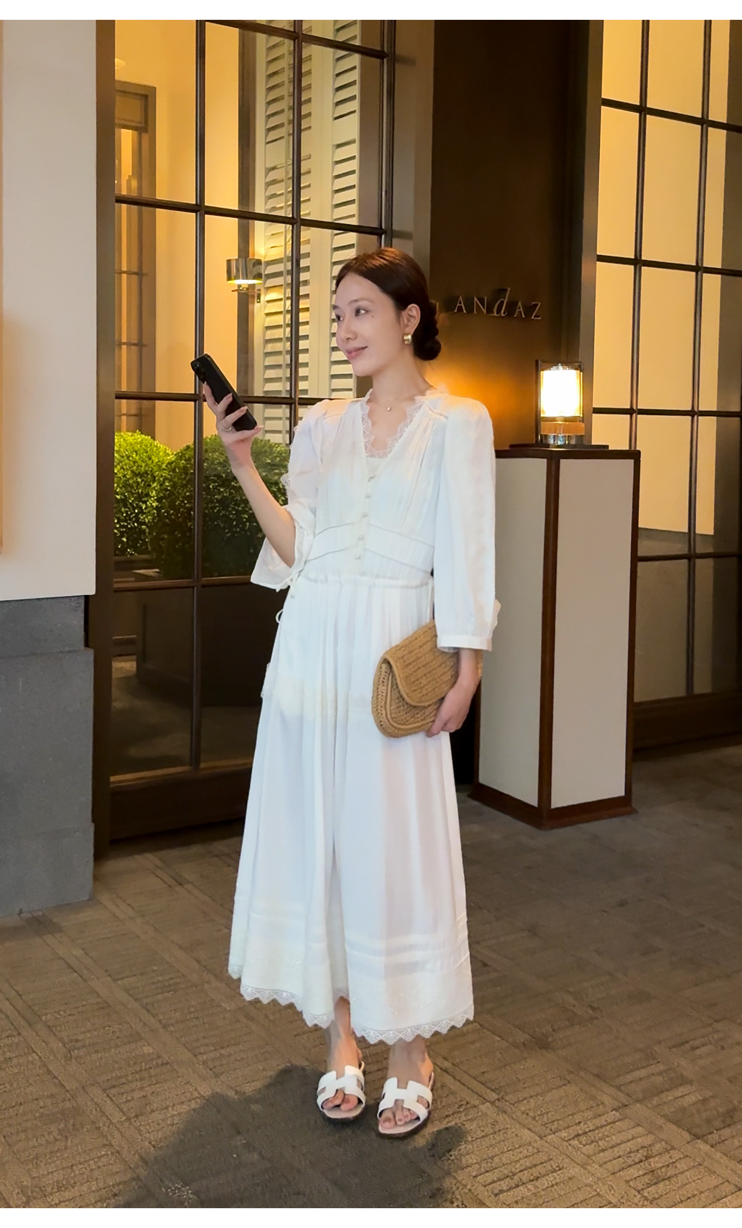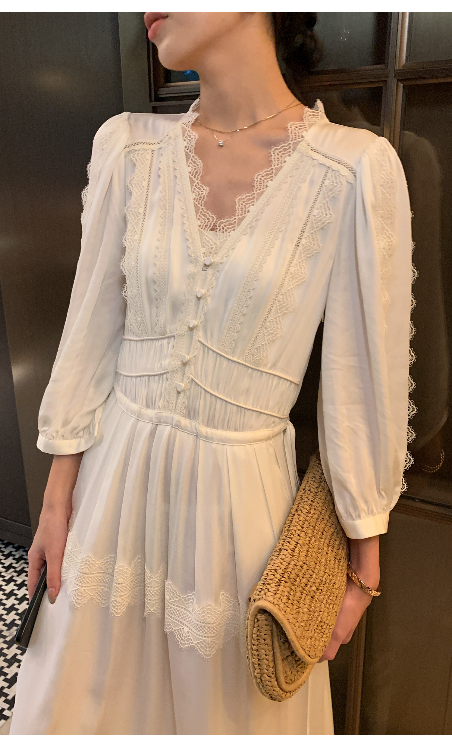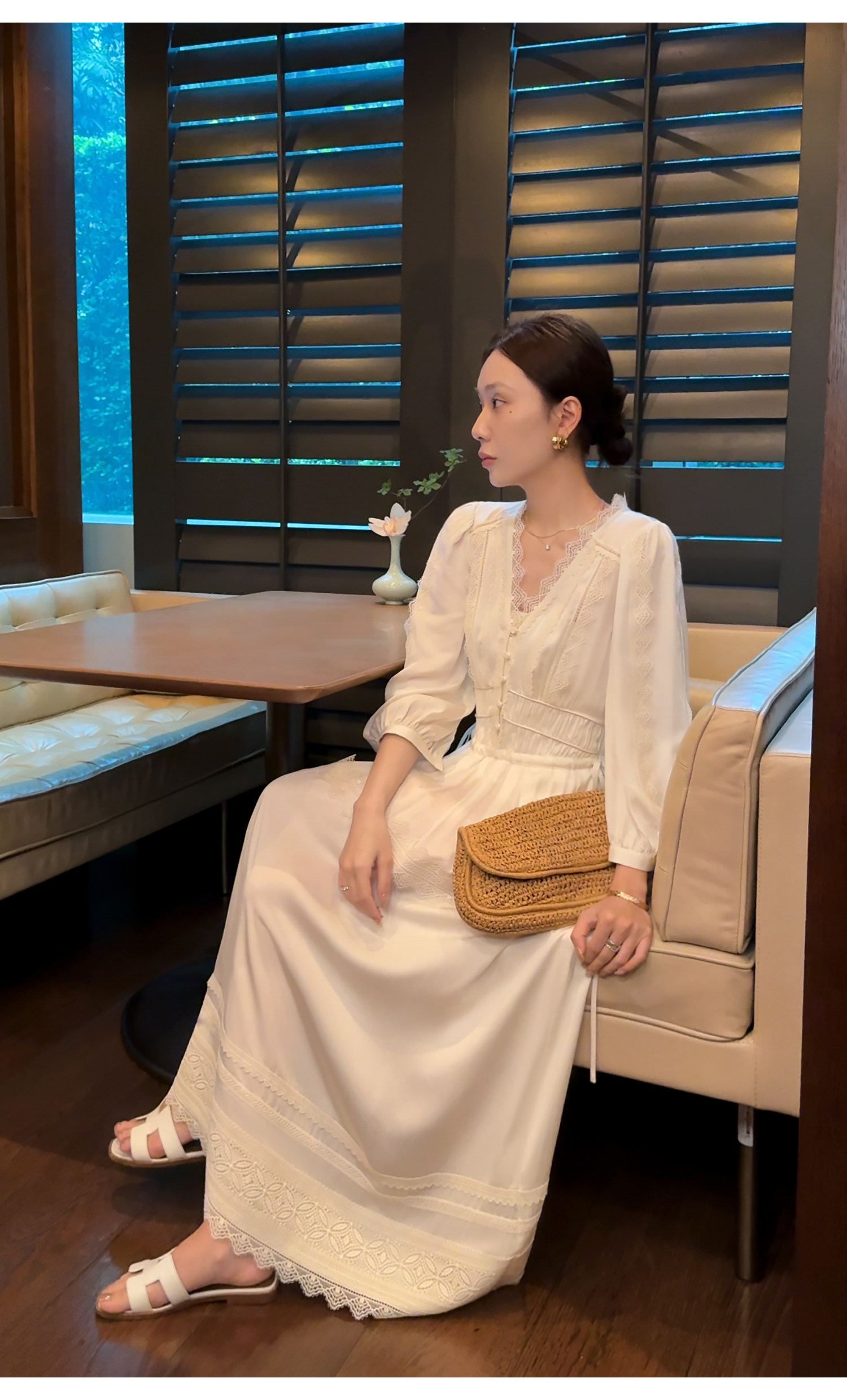 Shoe Magic Founder's "Urban Romance" S*P Lace Elegant Vacation V-Neck Waist-Cinching Short/Long Dress